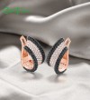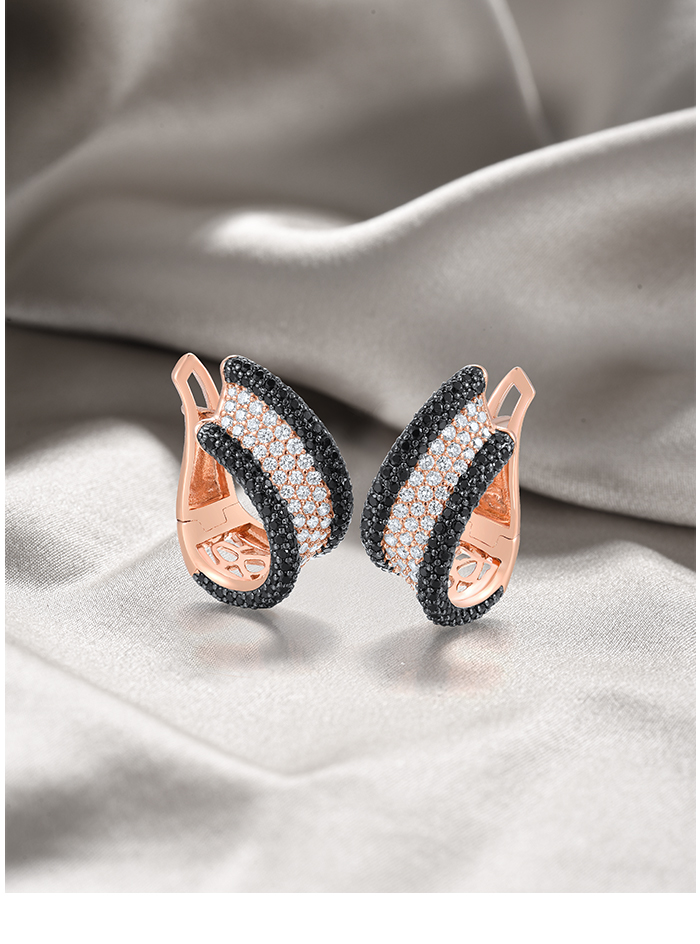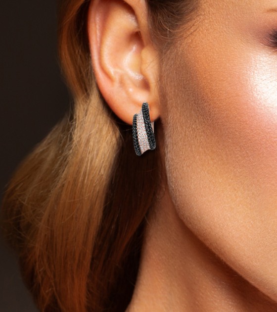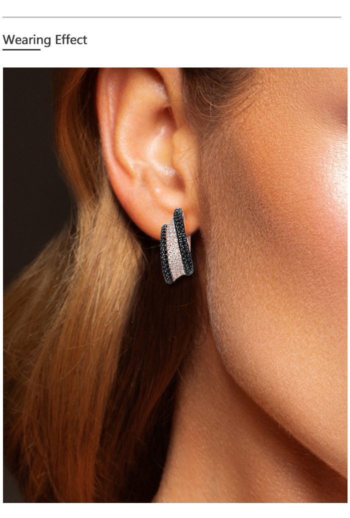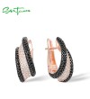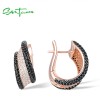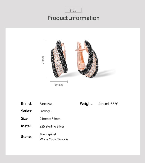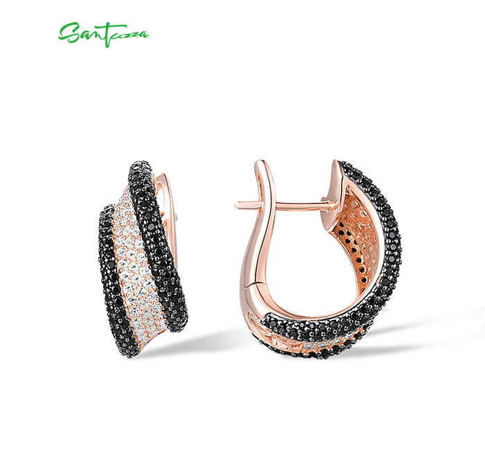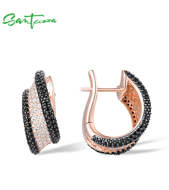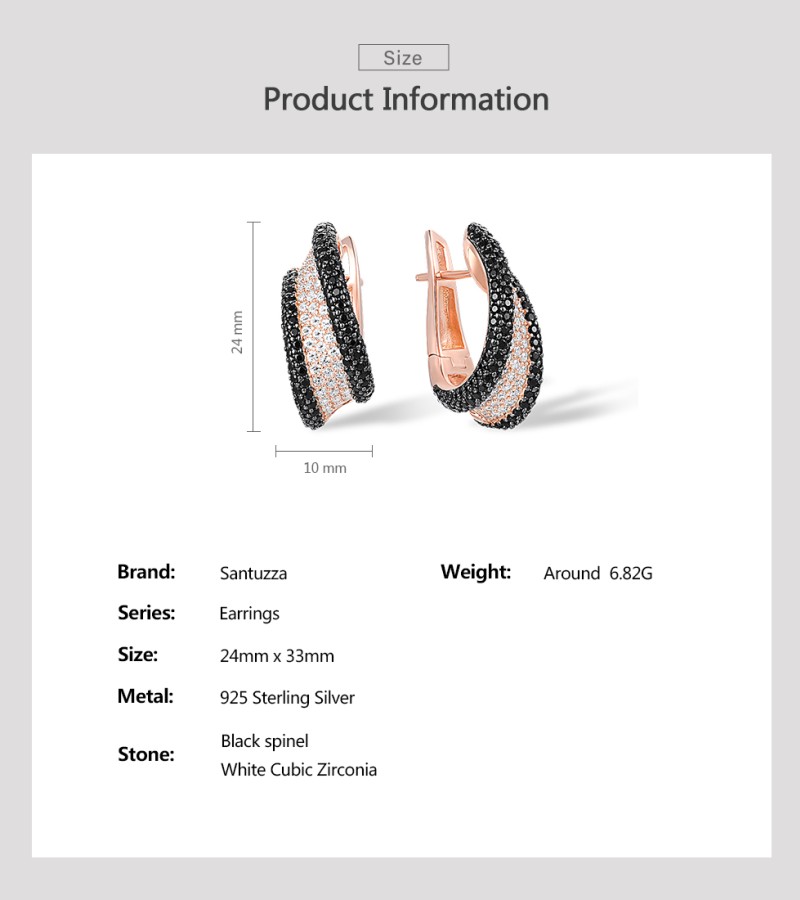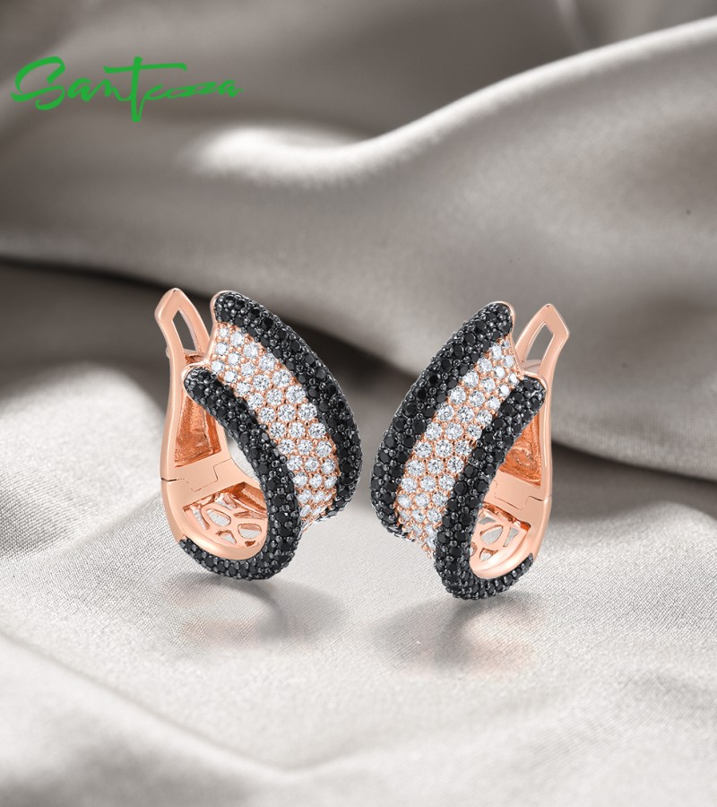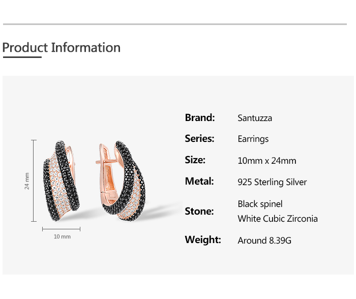 SANTUZZA 925 Sterling Curve Silver Earrings Sparkling Black Spinel White CZ Jewelry