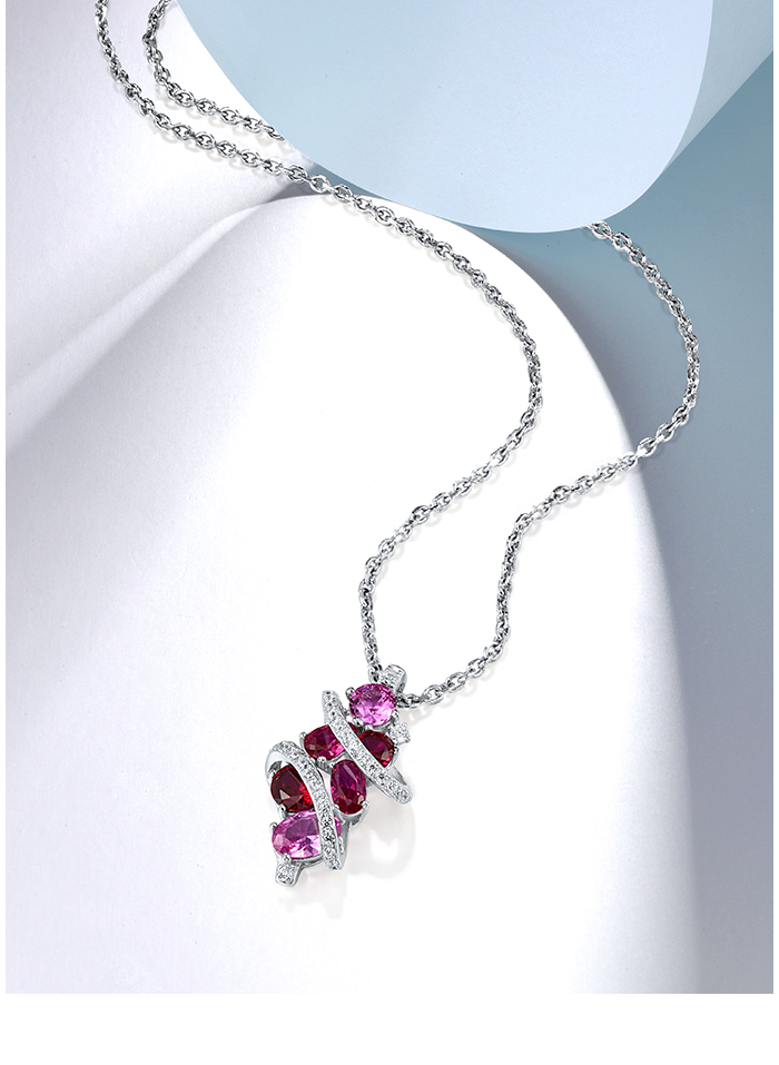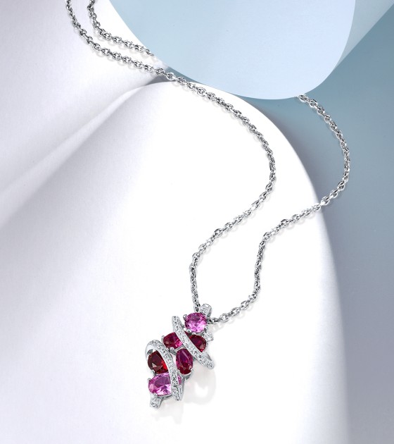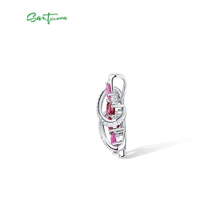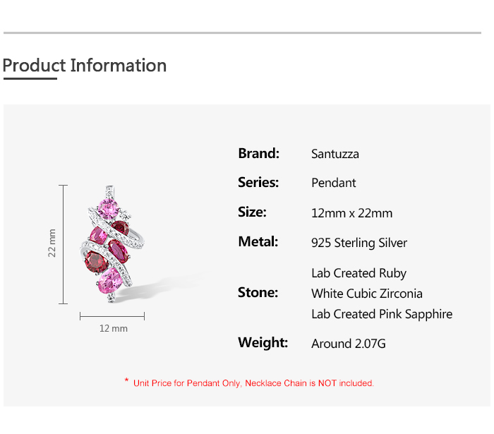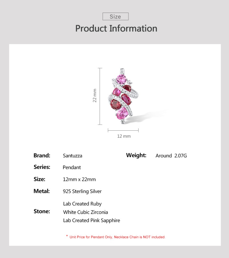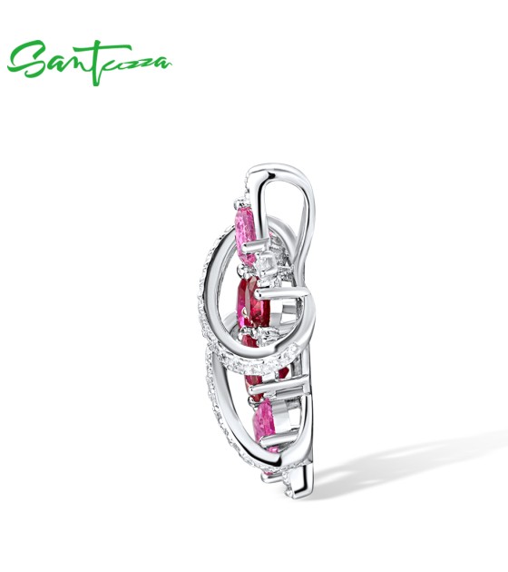 SANTUZZA 925 Sterling Silver Pendant Lab Created Pink Sapphire Ruby CZ Fine Jewelry