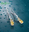 SANTUZZA 925 Sterling Silver Earrings Yellow CZ Yellow Nano CZ White CZ Dangling Jewelry