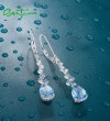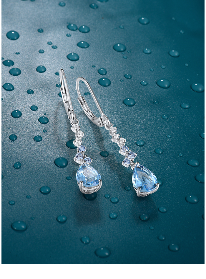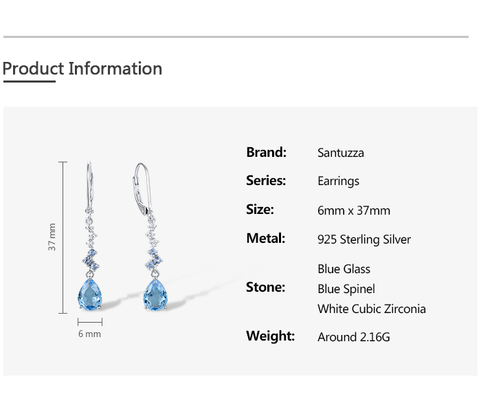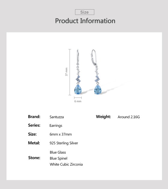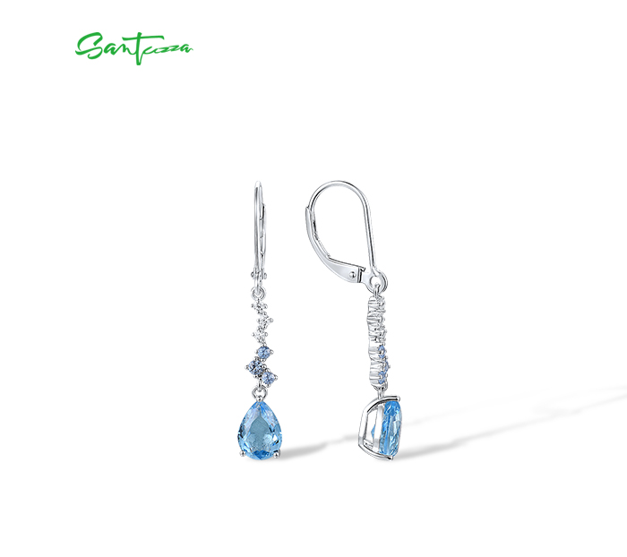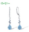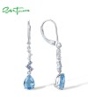 SANTUZZA 925 Sterling Silver Dangling Earrings Sparkling Blue Spinel White Cubic Zirconia Jewelry