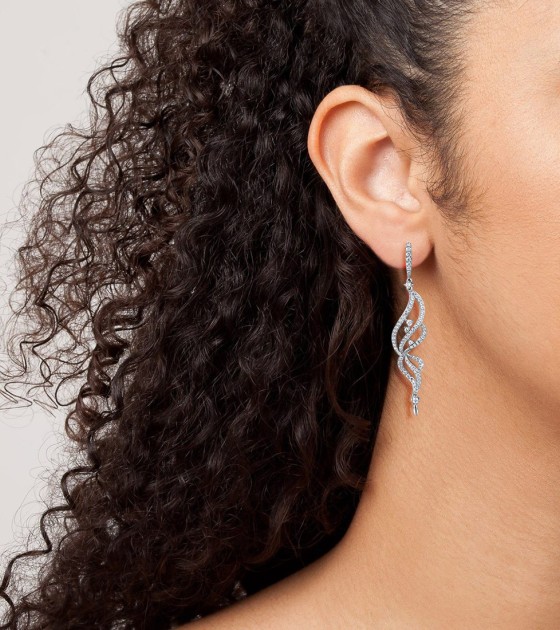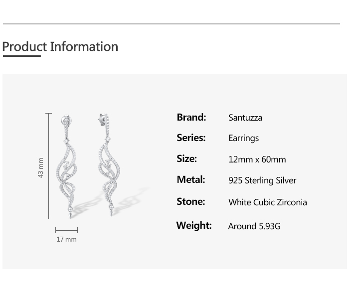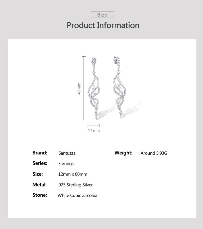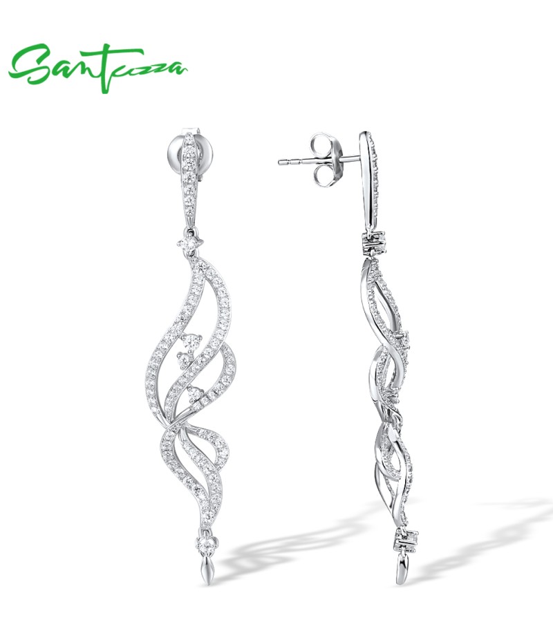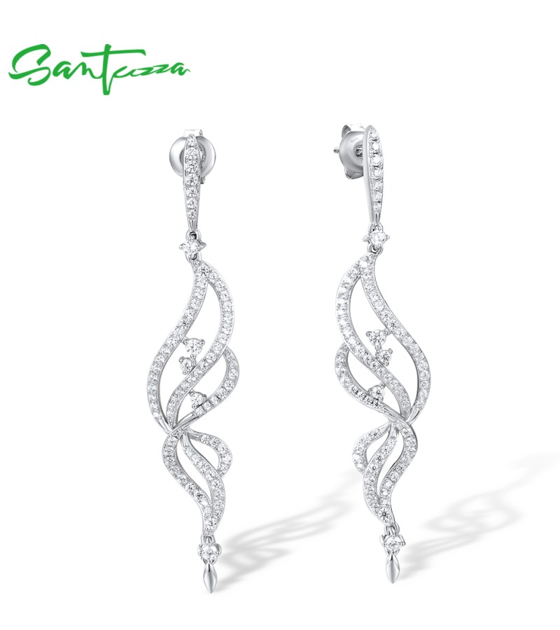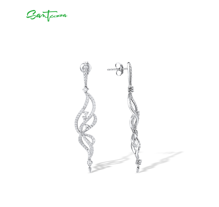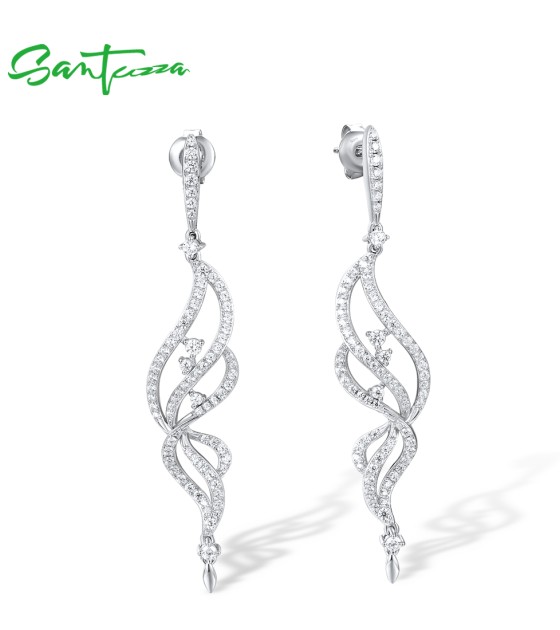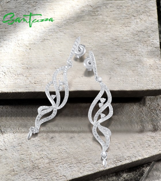 SANTUZZA 925 Sterling Silver Earrings White Cubic Zirconia Butterfly Dangling Earrings Fine Jewelry