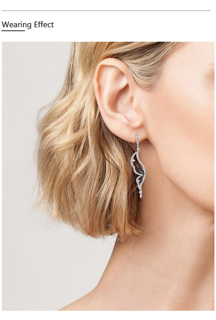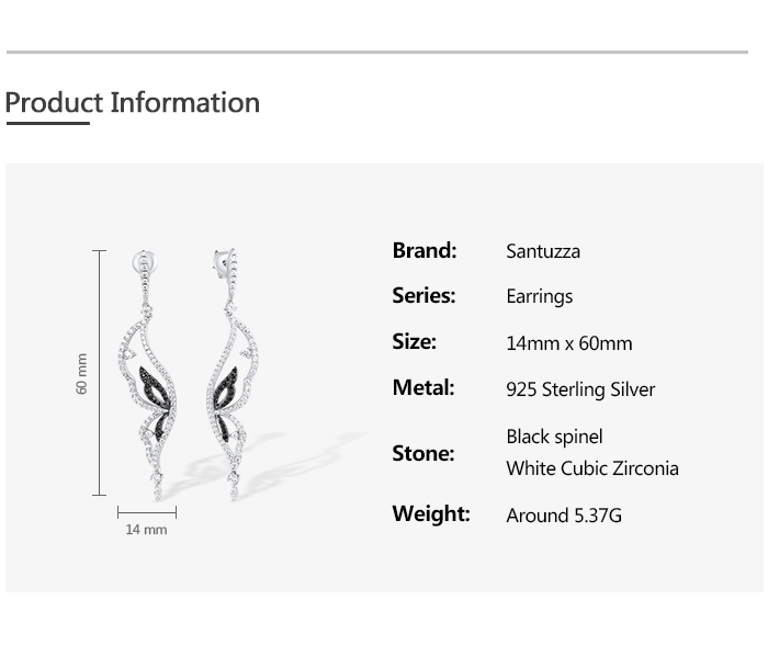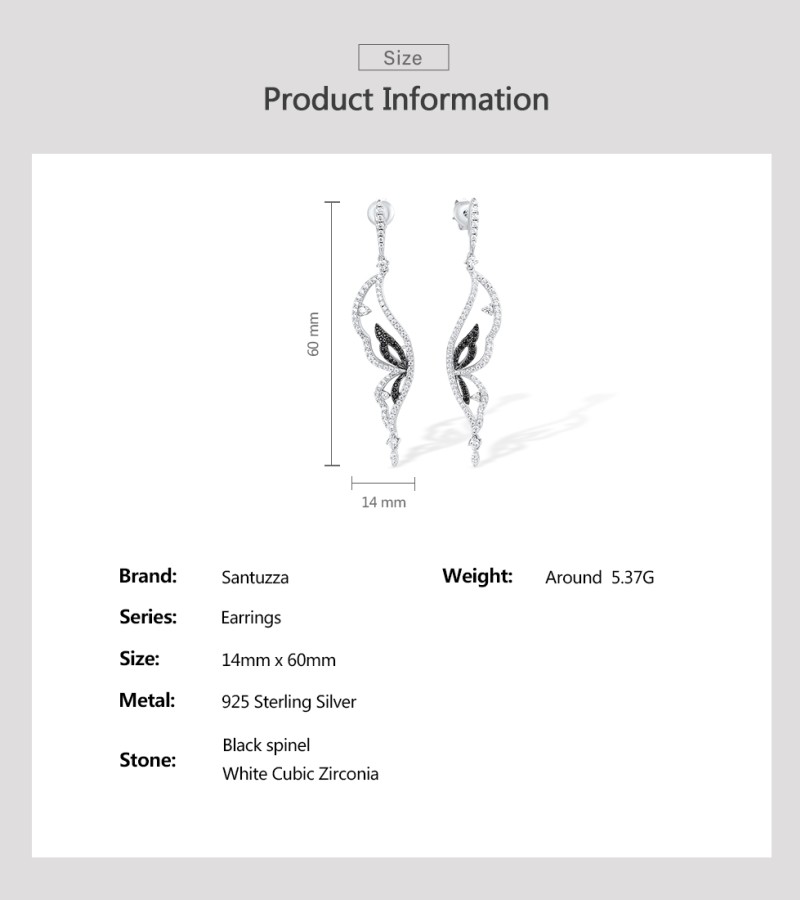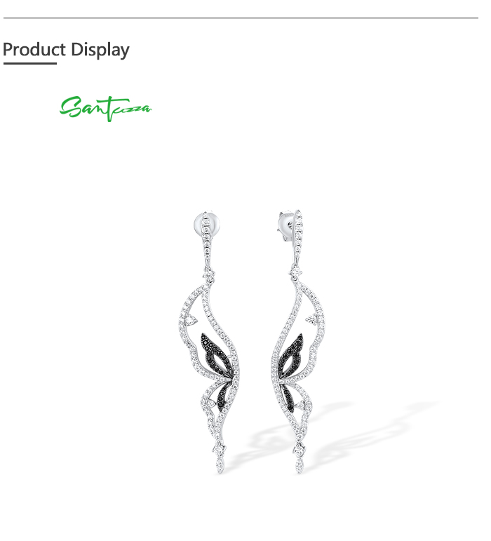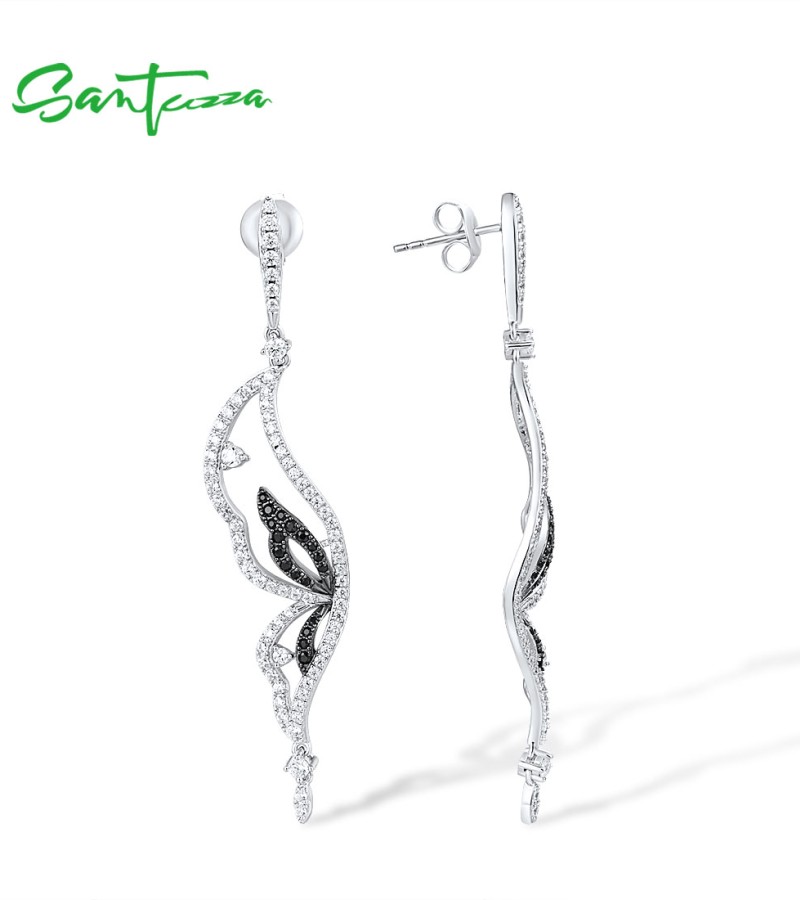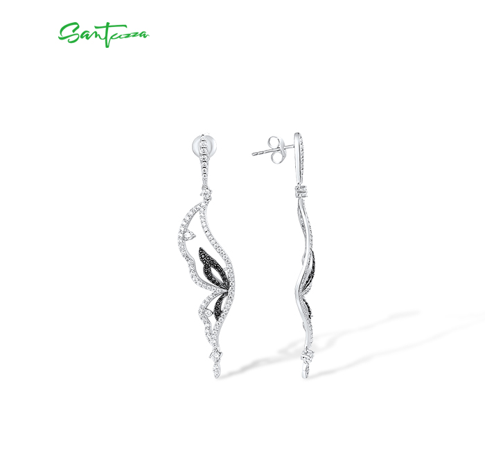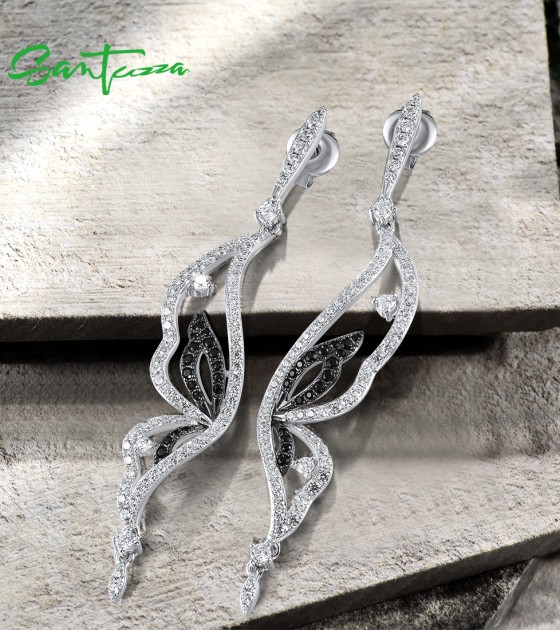 SANTUZZA 925 Sterling Silver Earrings Black Spinel White CZ Butterfly Dangling Earrings Fine Jewelry