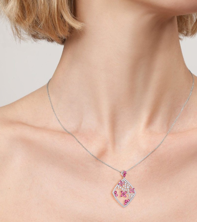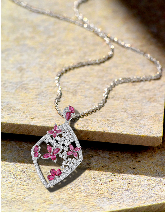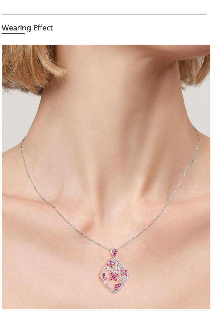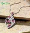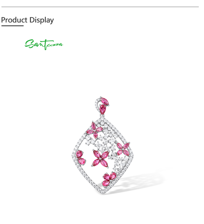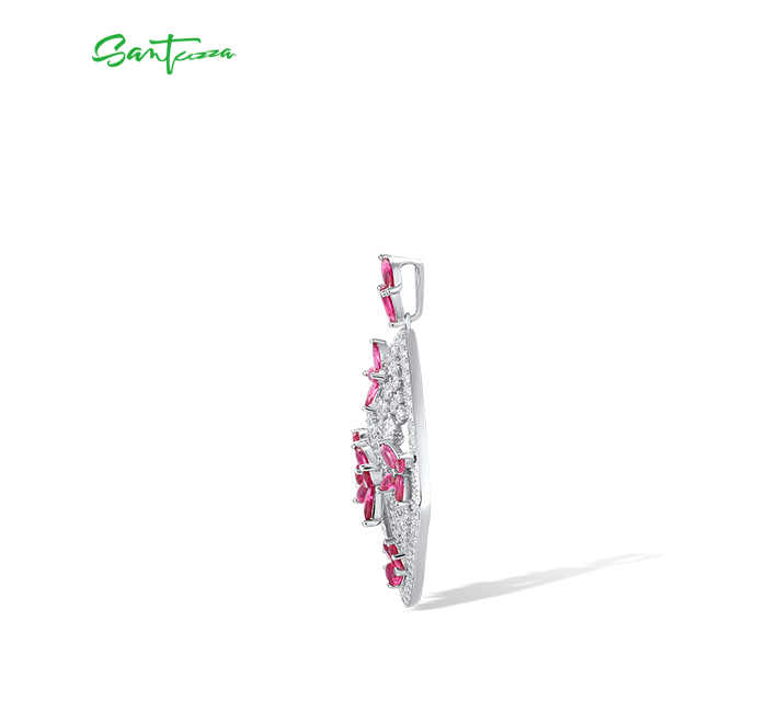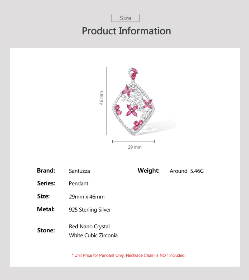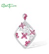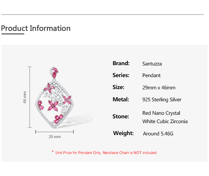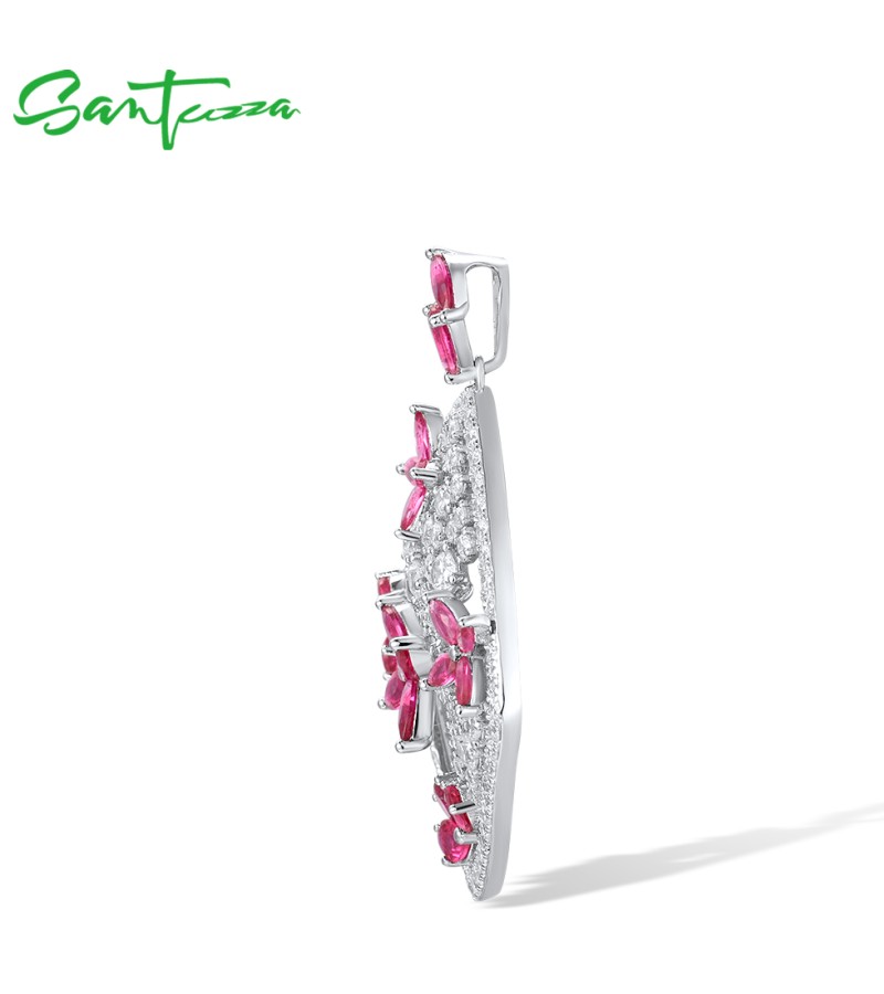 SANTUZZA 925 Sterling Silver Pendant Red Nano Crystal White CZ Flower Pendant Fine Jewelry