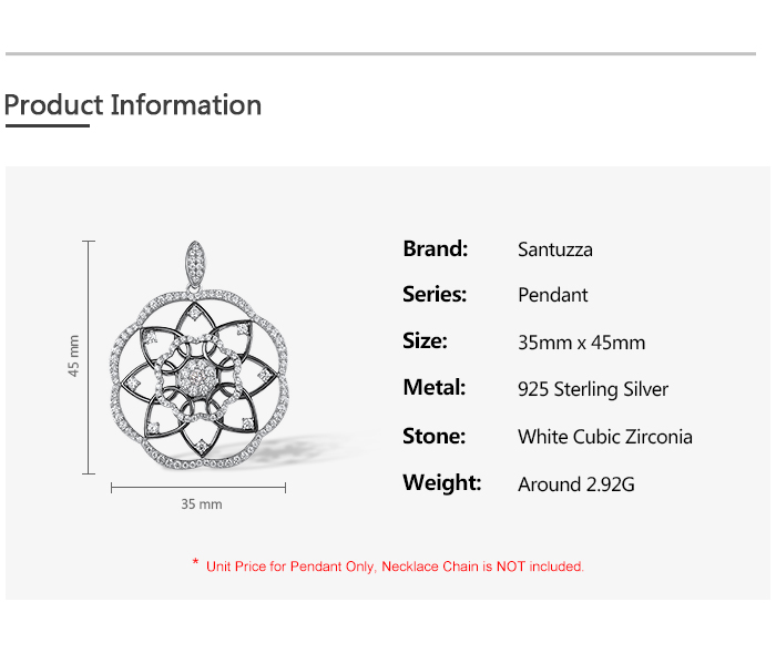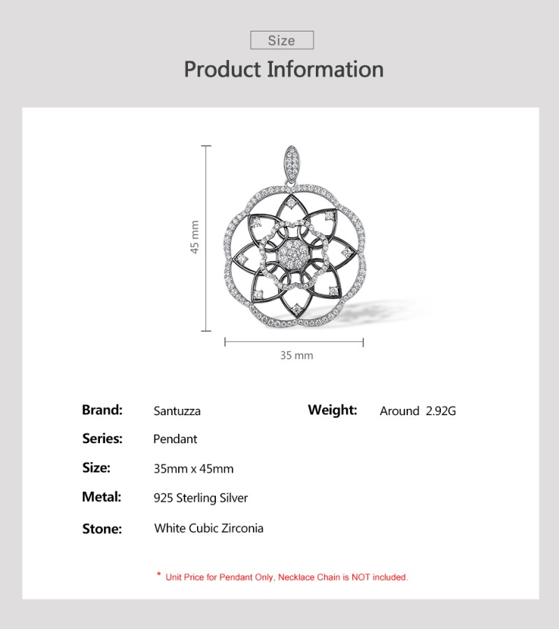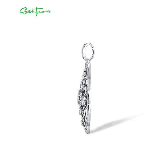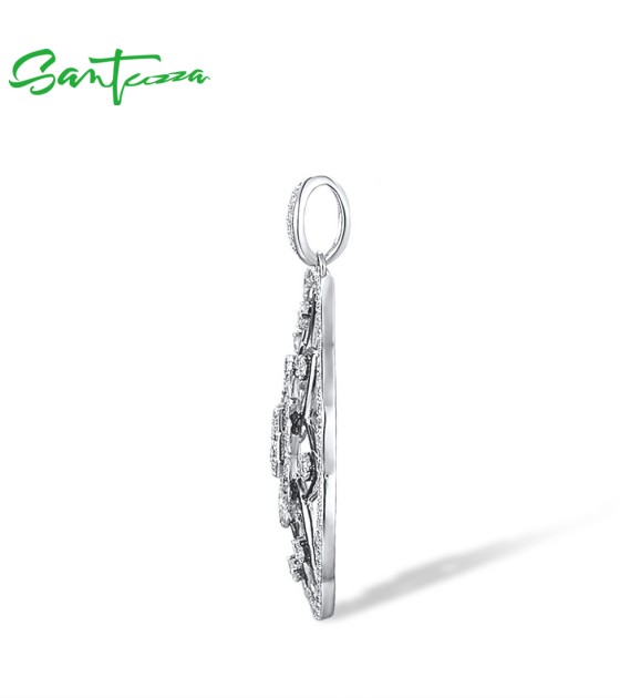SANTUZZA 925 Sterling Silver Pendant White Cubic Zirconia Kaleidoscope Pendant Fine Jewelry