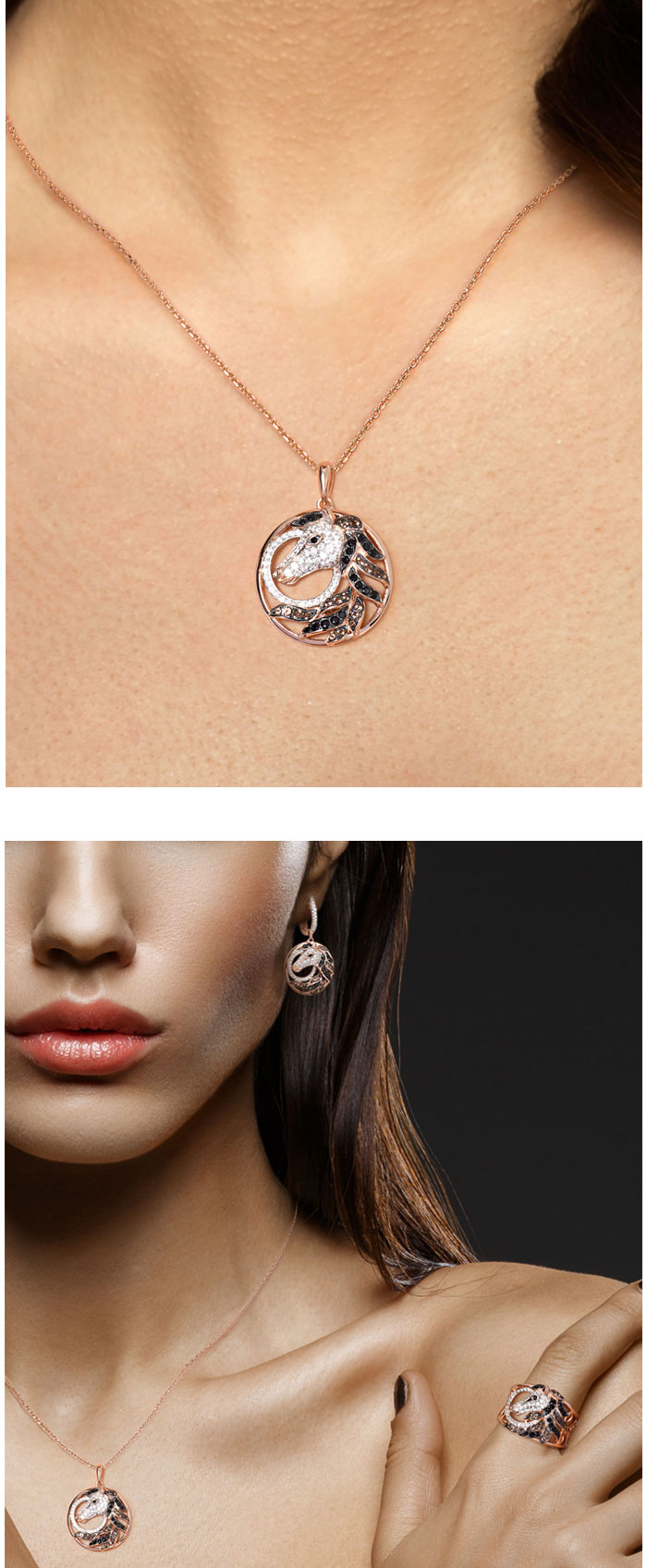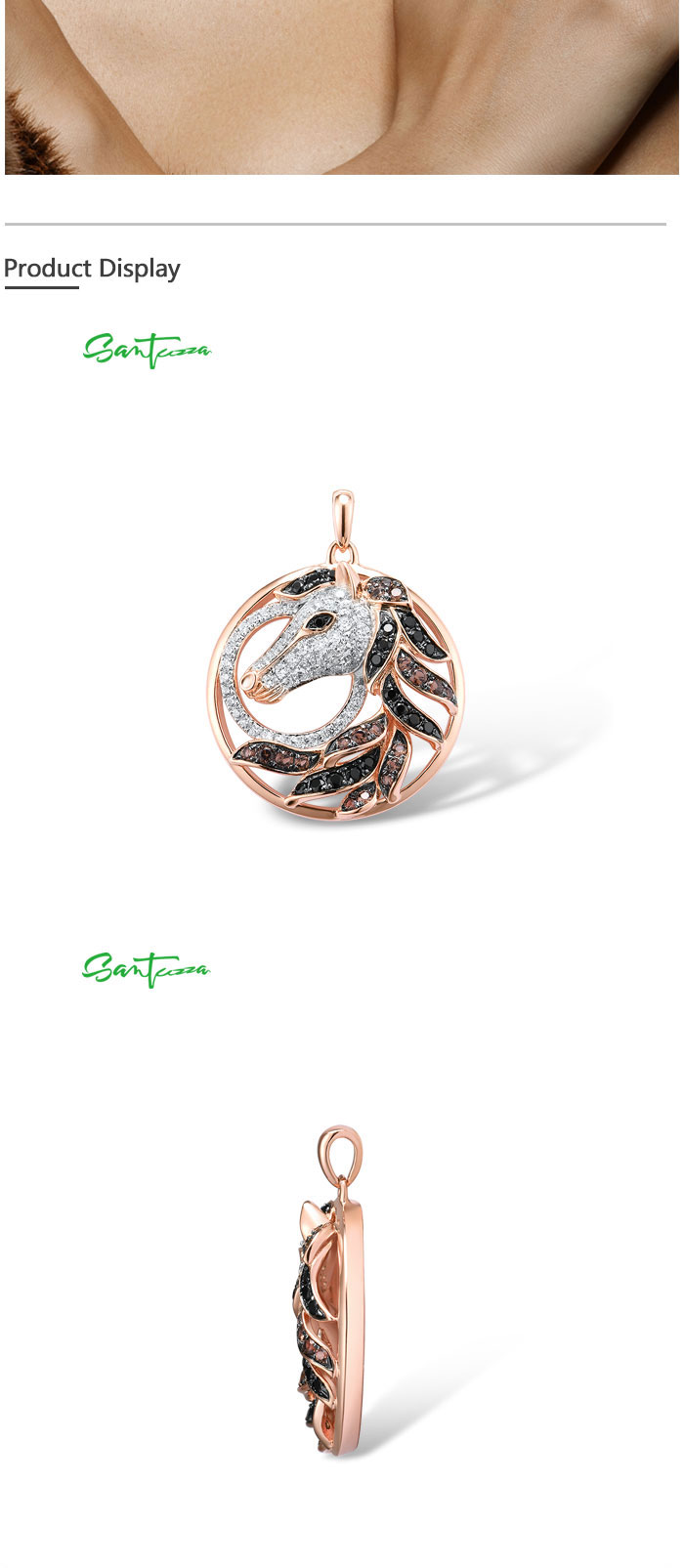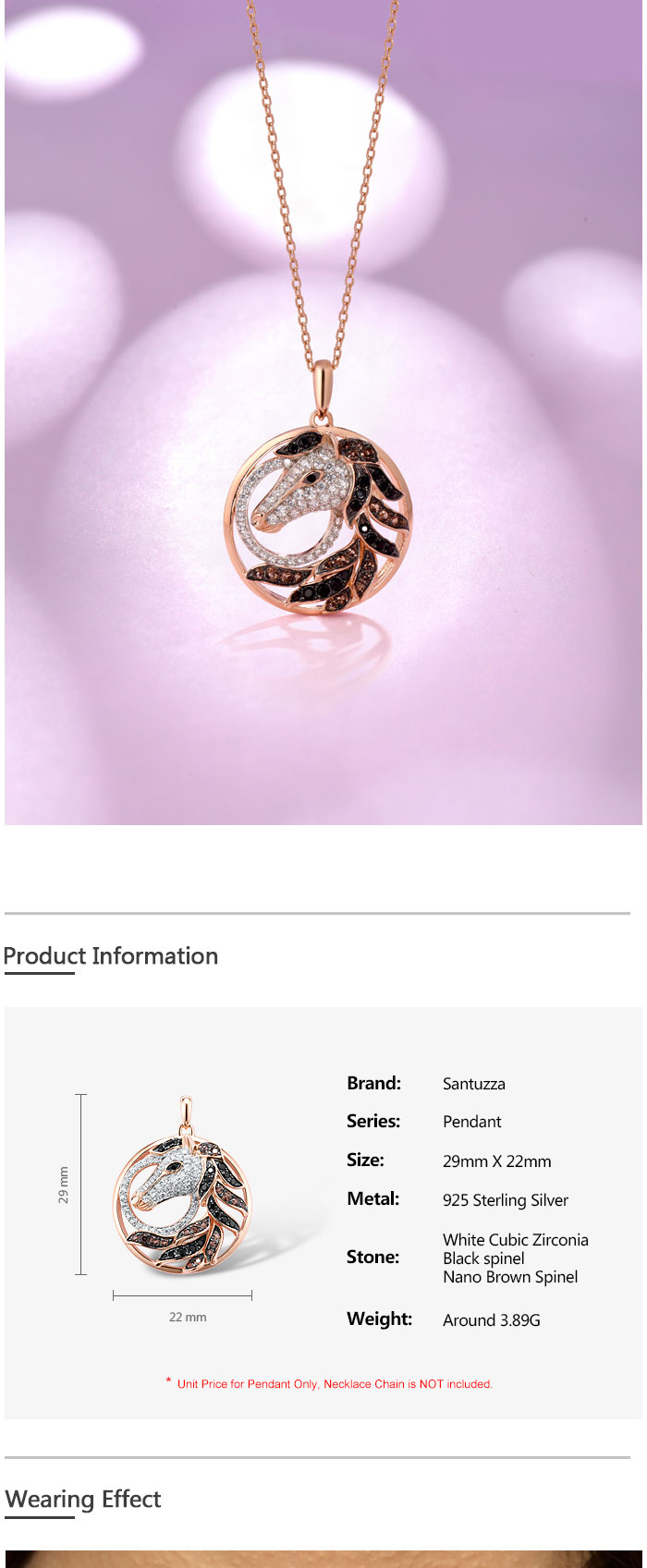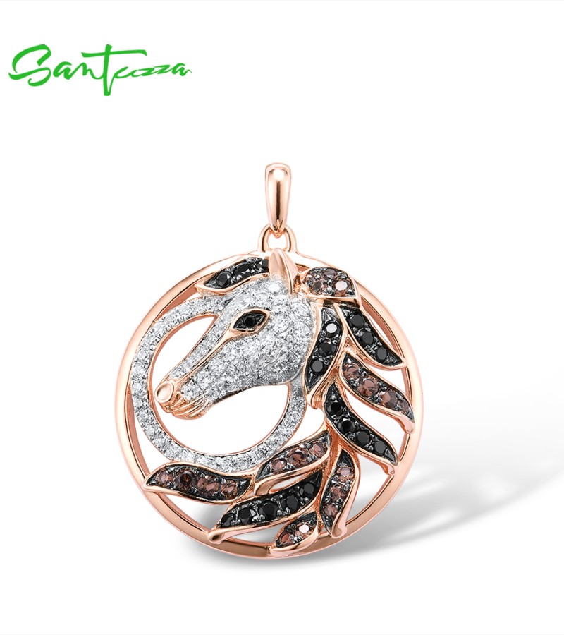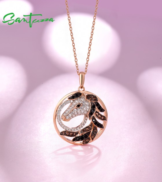 SANTUZZA Pendant 925 Sterling Silver Rose Gold Color Black Brown Horse Fine Jewelry