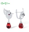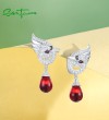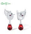 SANTUZZA 925 Sterling Silver Swan Earrings White CZ Red Glass Created Ruby Dangling Jewelry