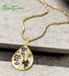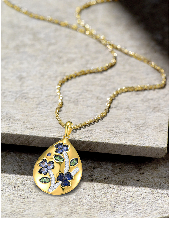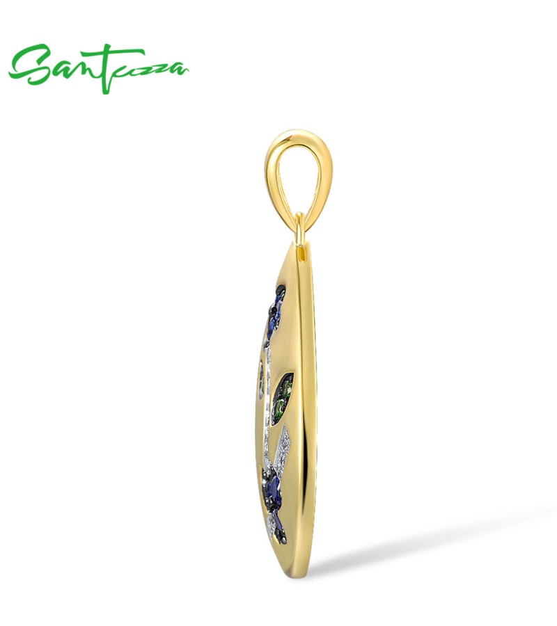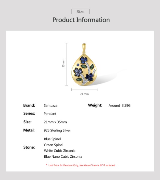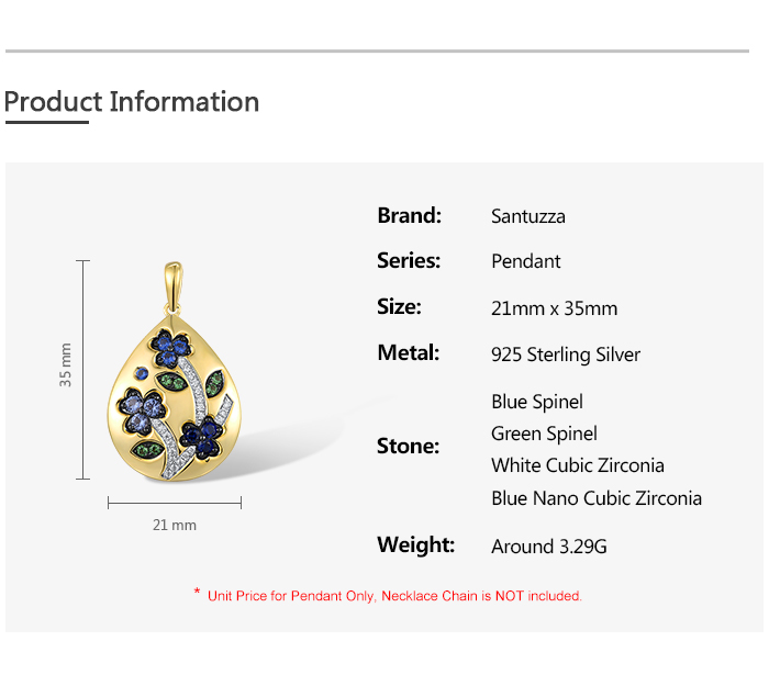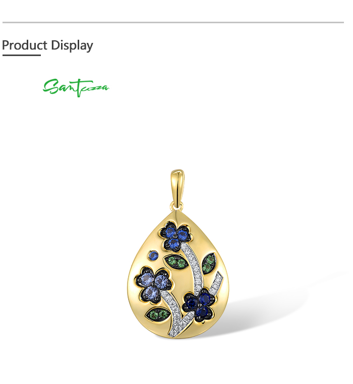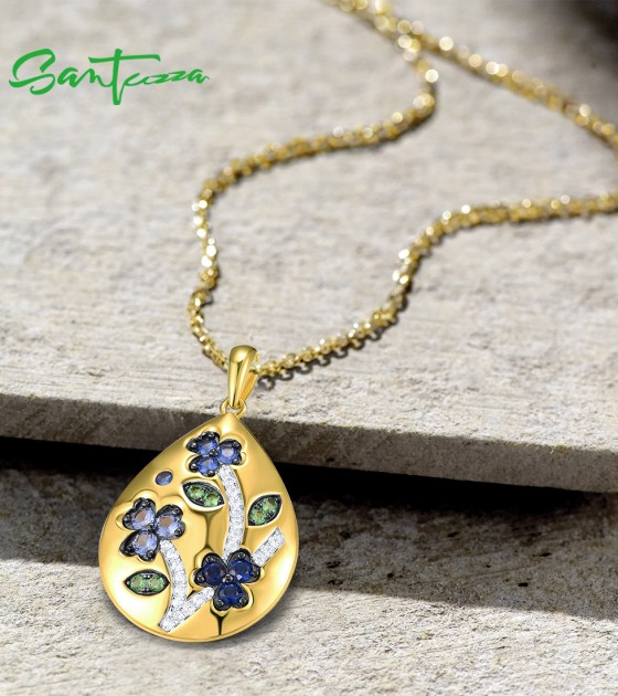 SANTUZZA 925 Sterling Silver Blue Flower Pendant Blue/Green Spinel Blue Nano Cubic Zirconia Drop Jewelry