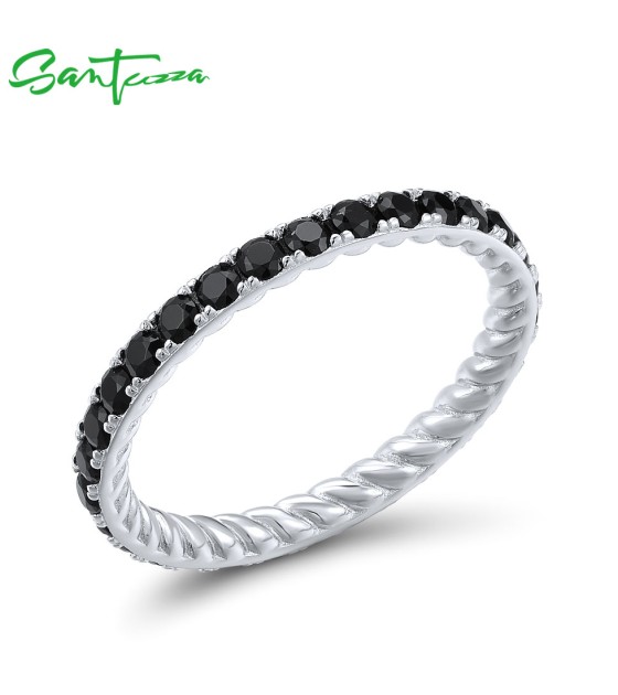 SANTUZZA 925 Sterling Silver Rings Black Spinel Stackable Ring Fine Jewelry
