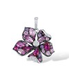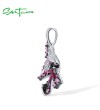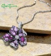 SANTUZZA 925 Sterling Silver Pendant Pink Red Stones Blooming Lily Flower Jewelry