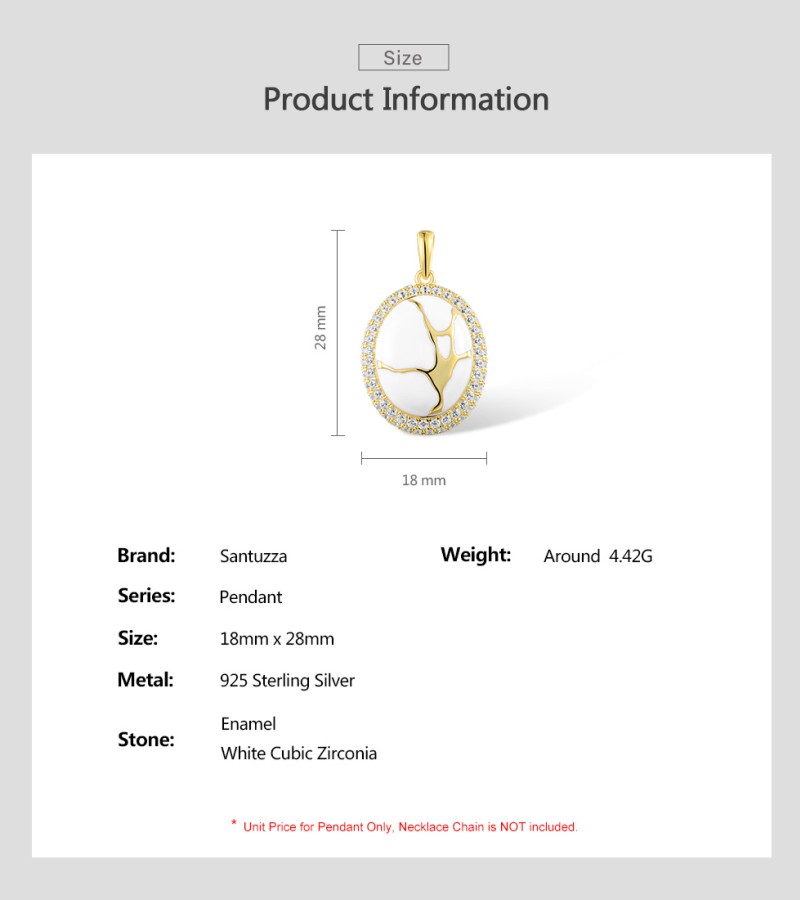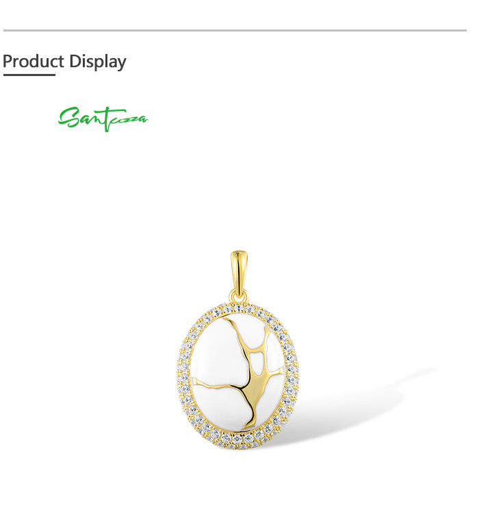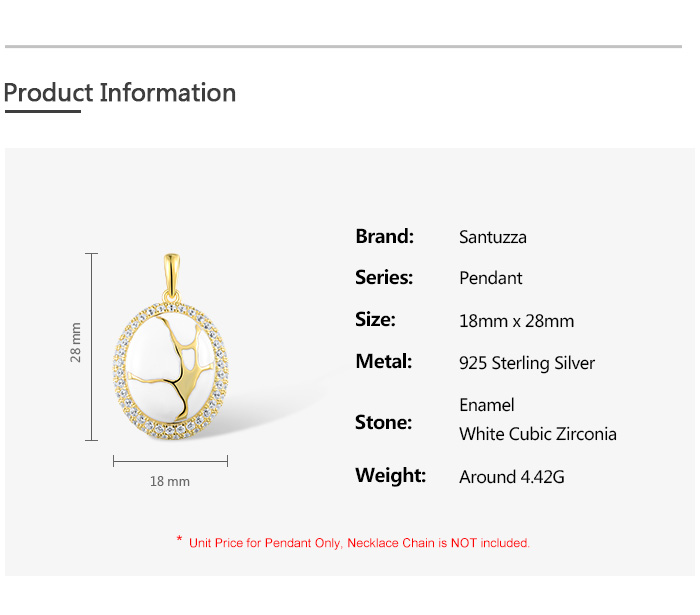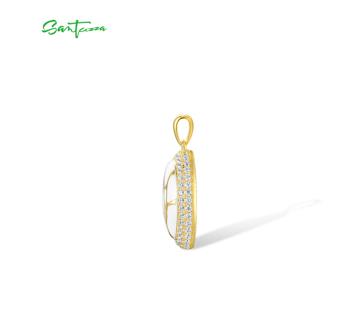 SANTUZZA 925 Sterling Silver Oriental Enamel Pendant White CZ Yellow Plating Fine Jewelry