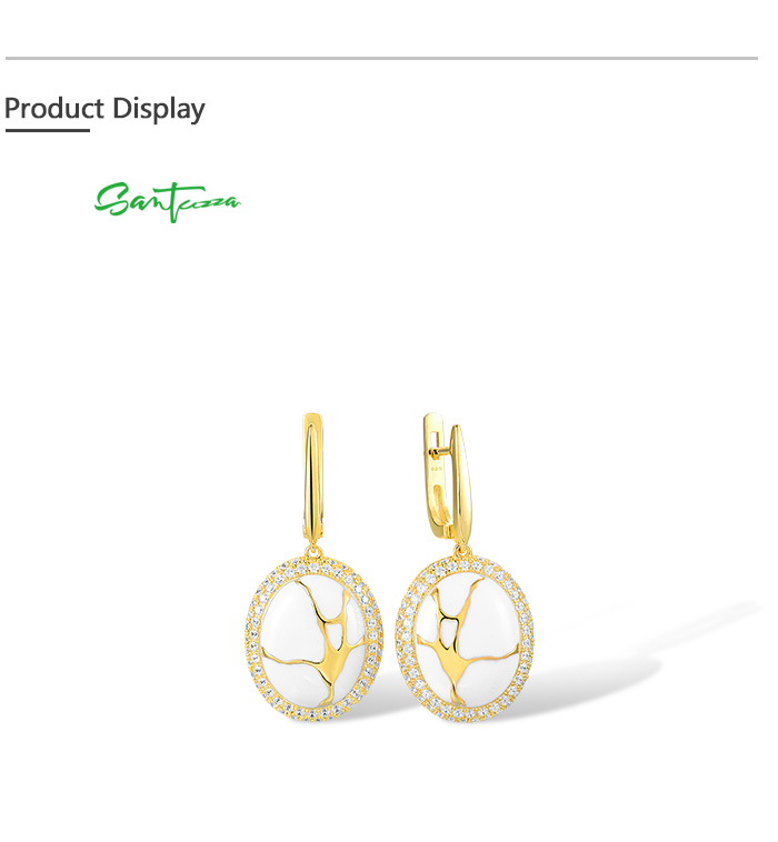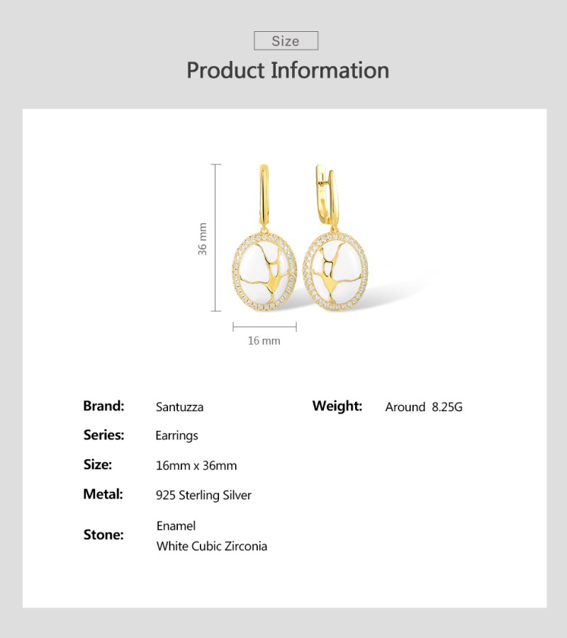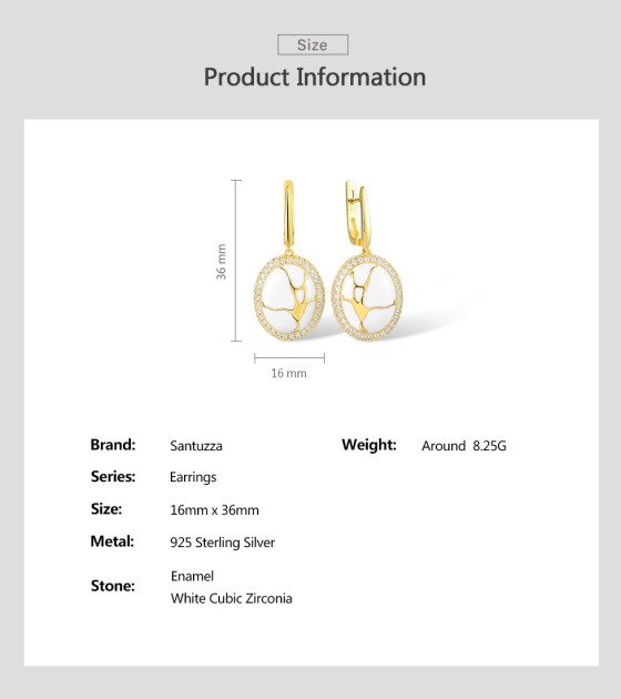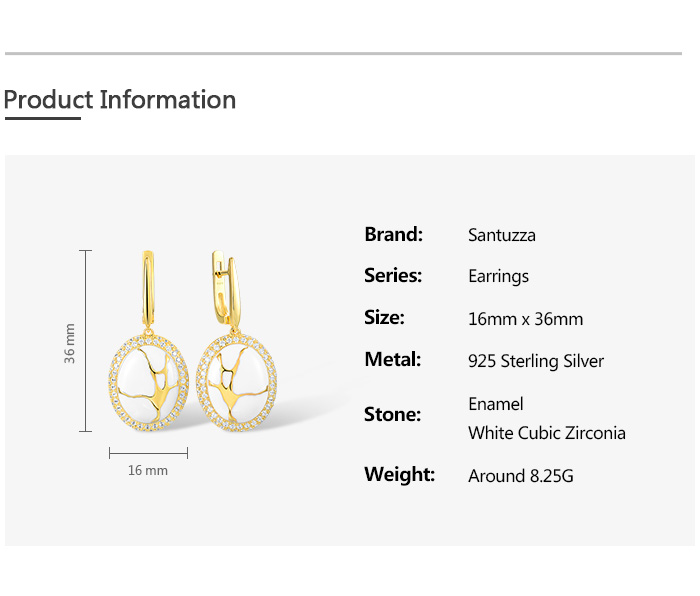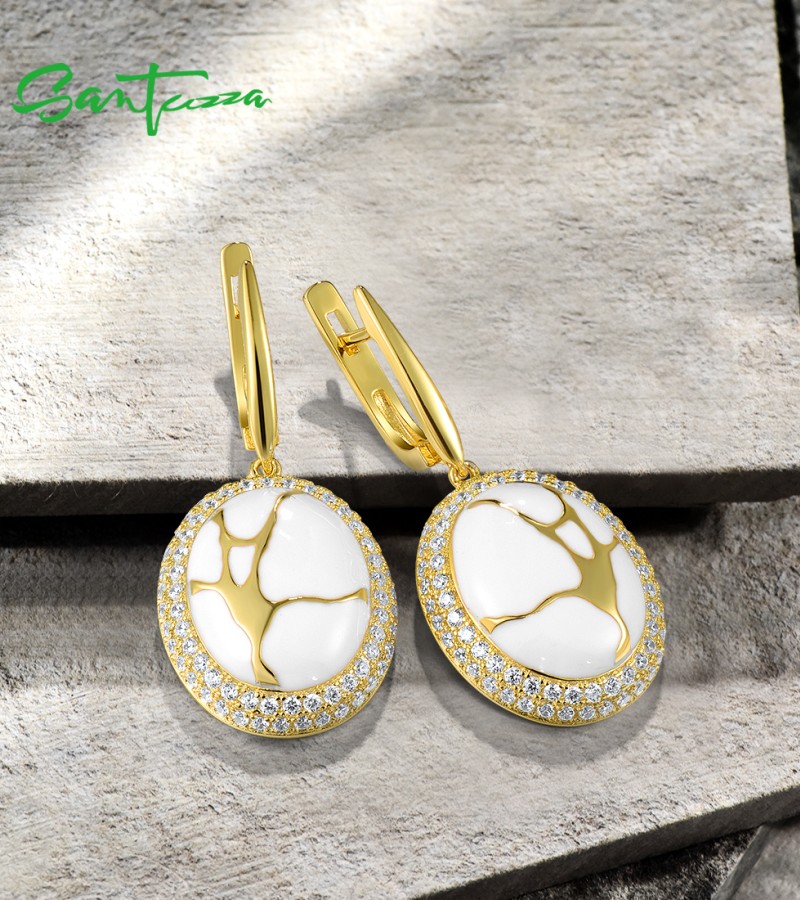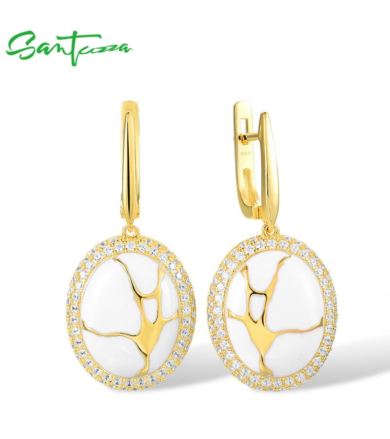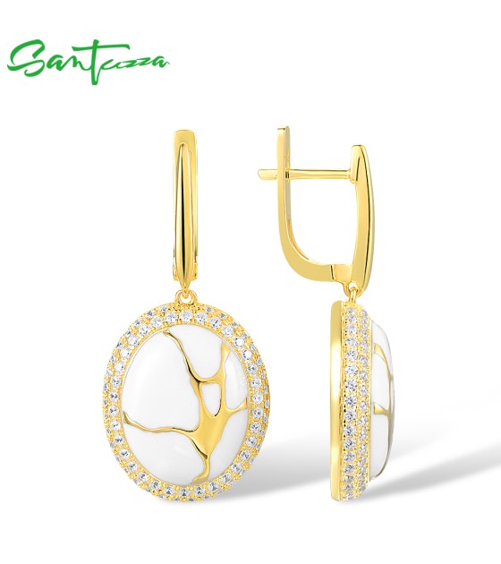 SANTUZZA 925 Silver Dangling Earrings White CZ Yellow Plated Latch Back Oriental Fine Jewelry