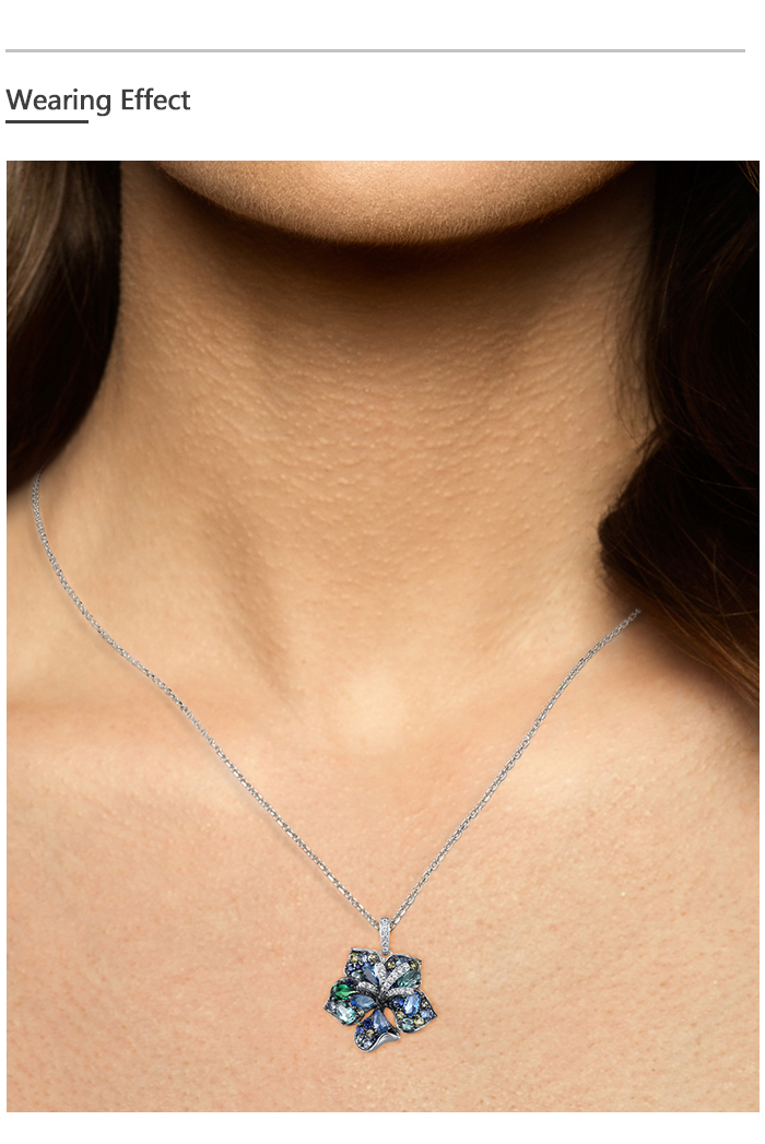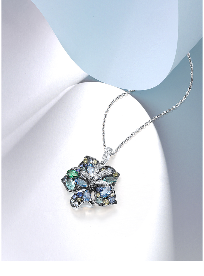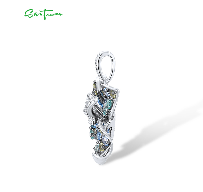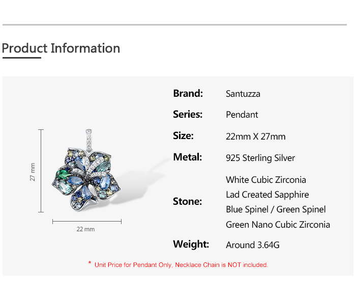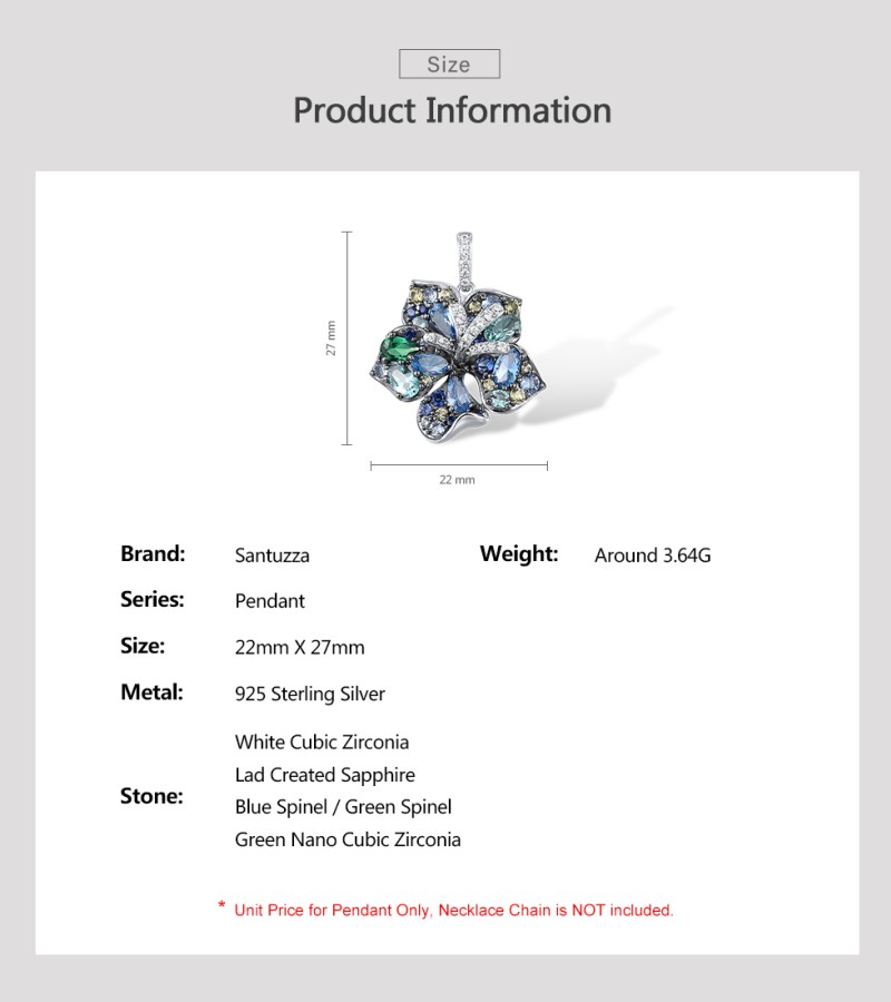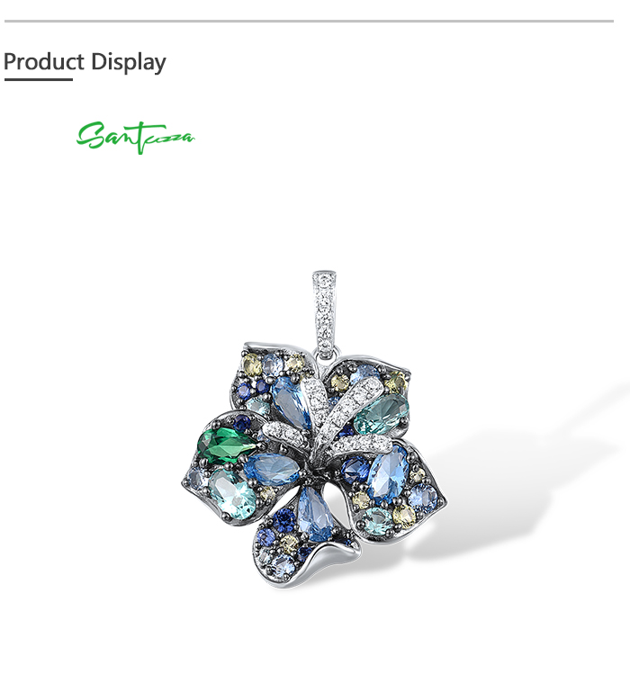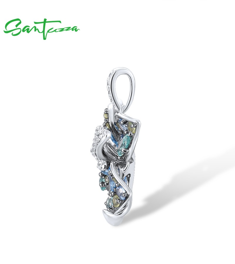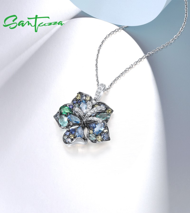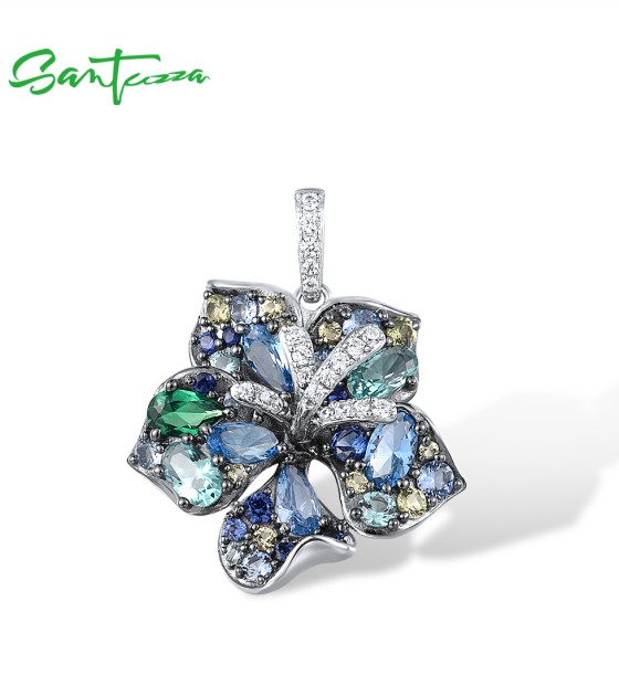 SANTUZZA 925 Sterling Silver Pendant Multi Gems Blue Lily Flower Jewelry