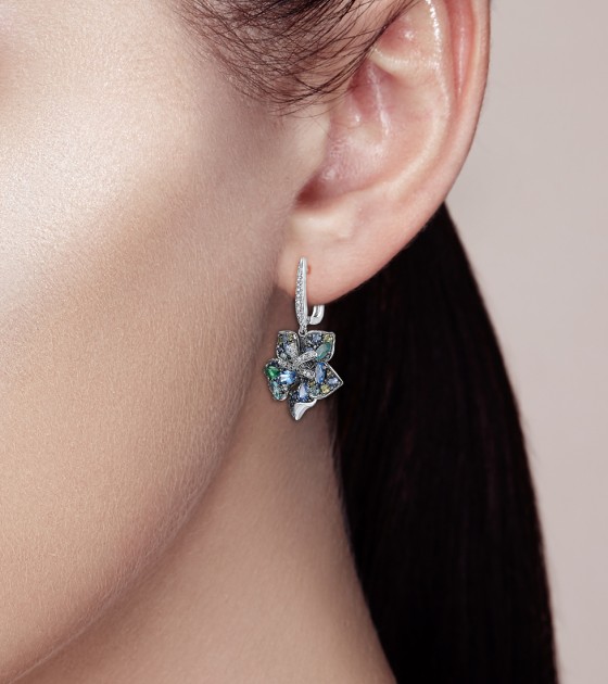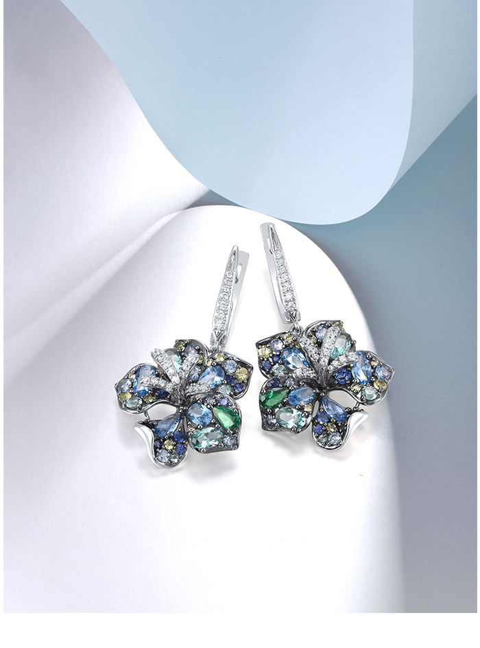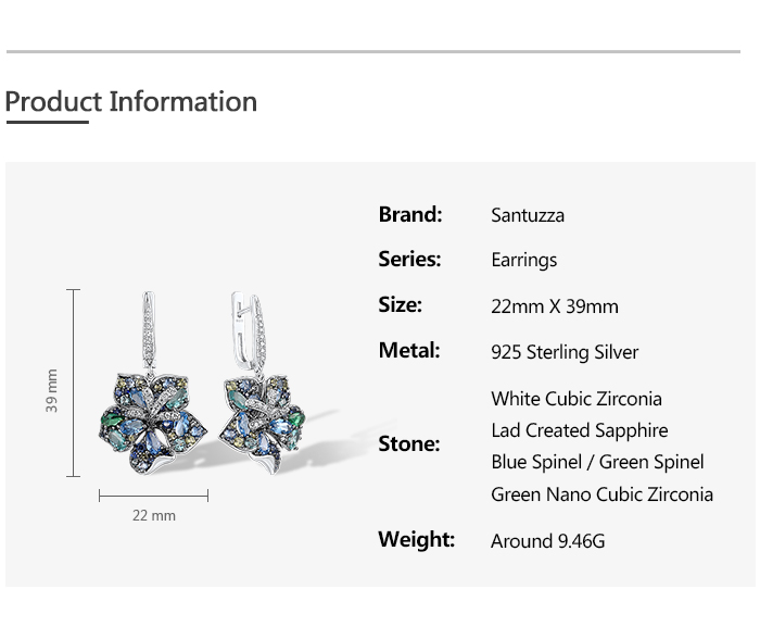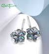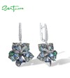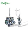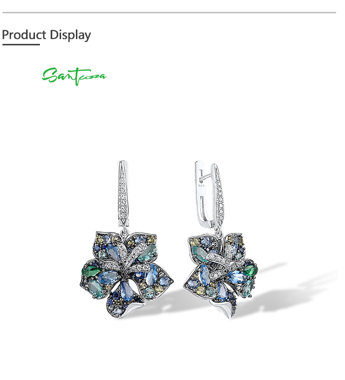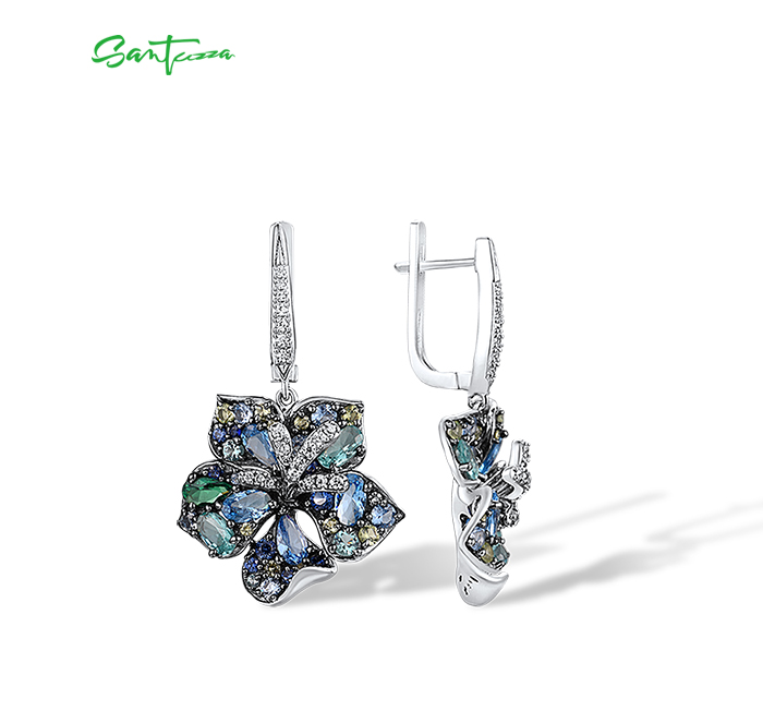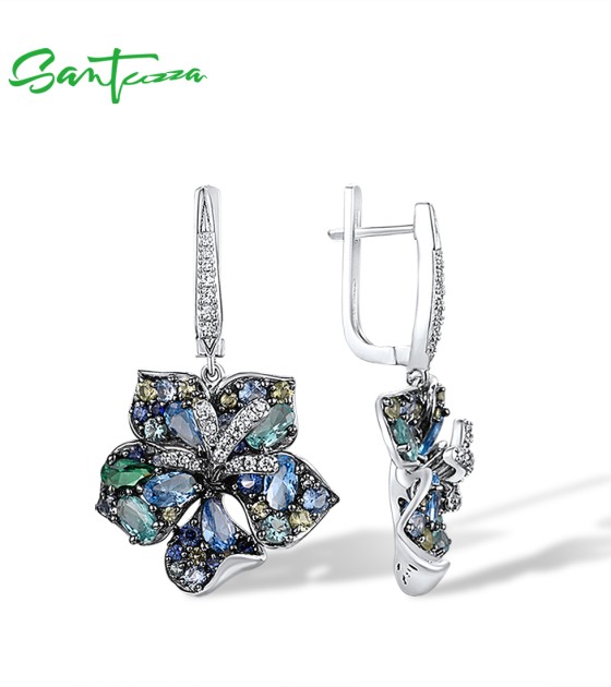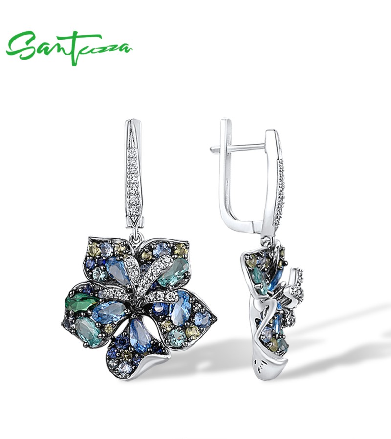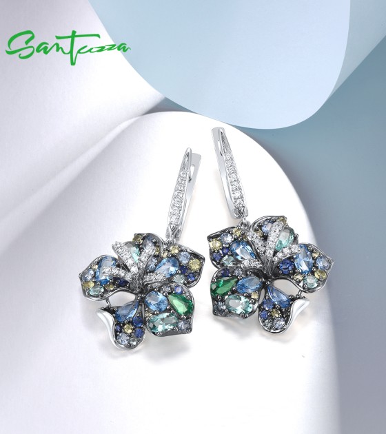 SANTUZZA 925 Sterling Silver Earrings Multi Gems Blue Lily Flower Drop Earrings Jewelry