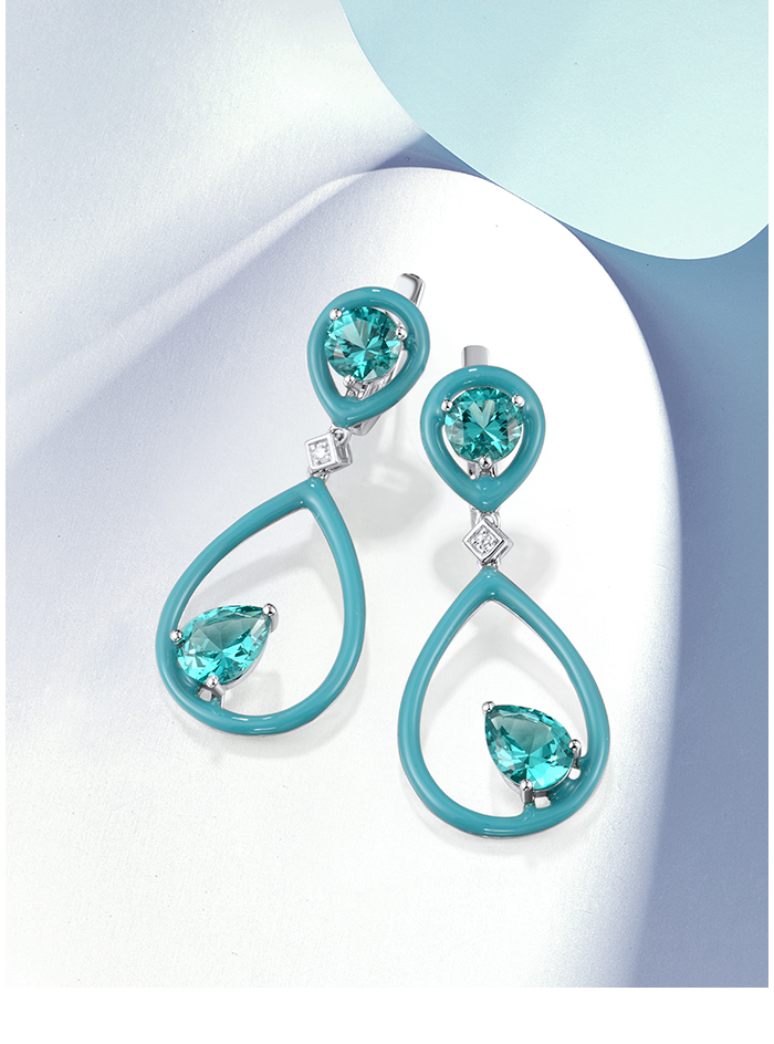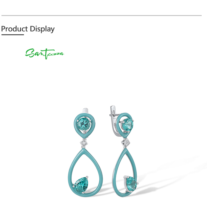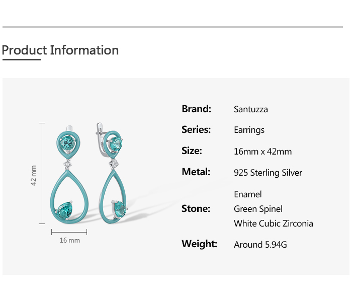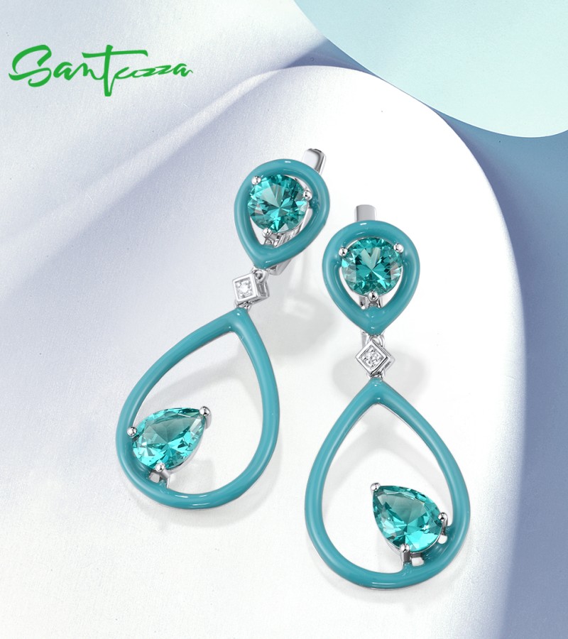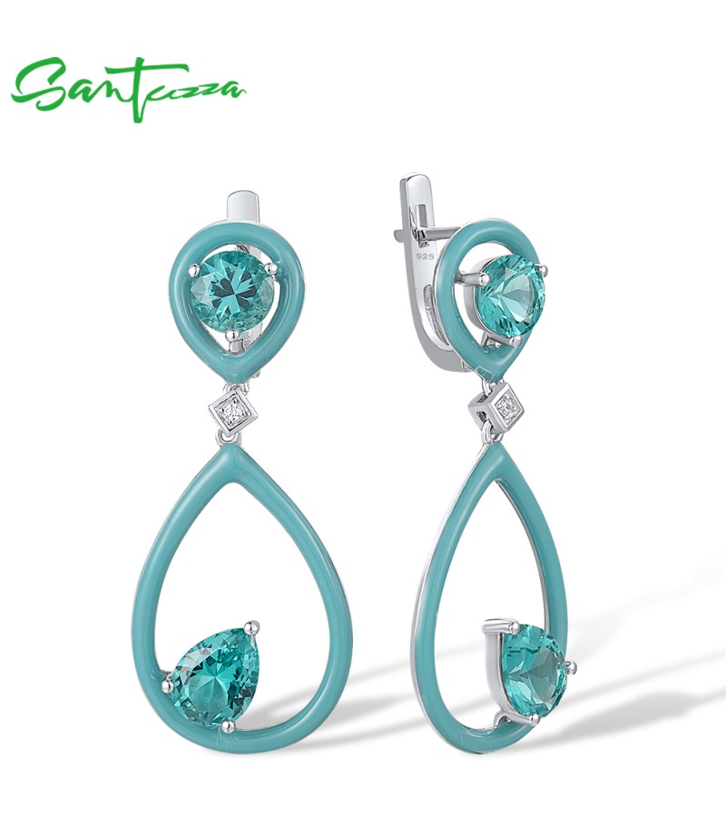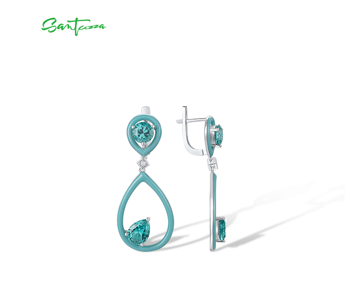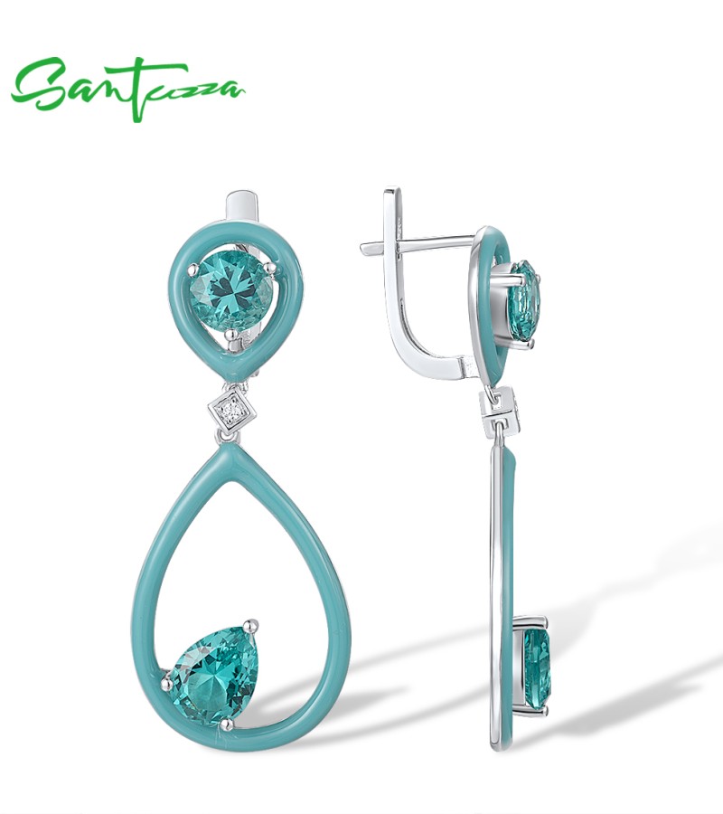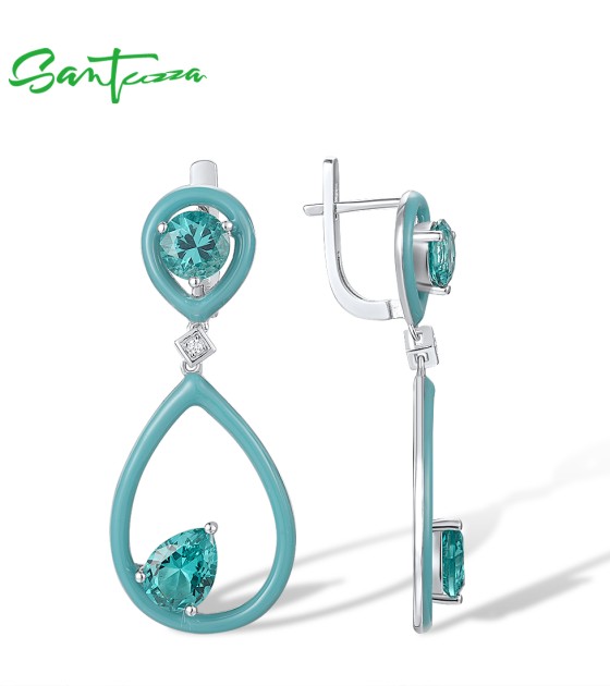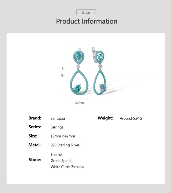SANTUZZA 925 Sterling Silver Enamel Earrings Green Spinel White CZ Dangling Pear Fine Jewelry