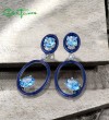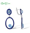 SANTUZZA 925 Sterling Silver Enamel Earrings Blue Spinel White CZ Dangling Oval Fine Jewelry