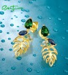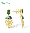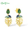 SANTUZZA 925 Sterling Silver Stud Earrings Blue Green Stones Spinel Leaf Dangling Fine Jewelry