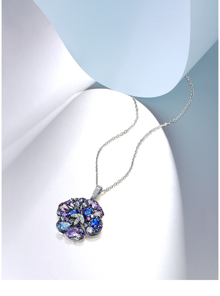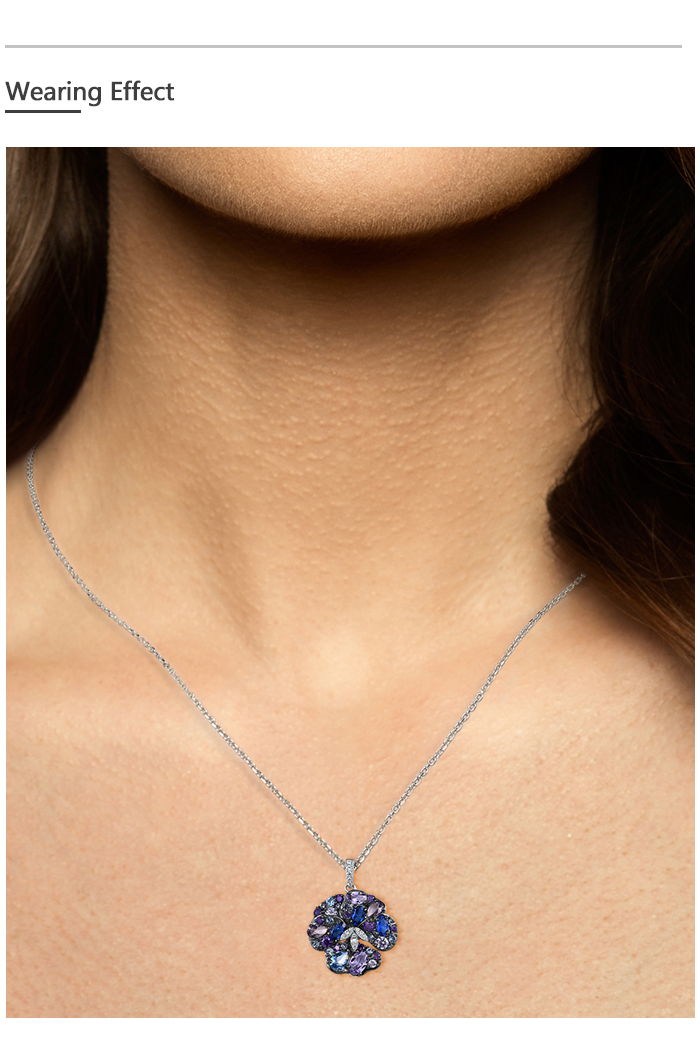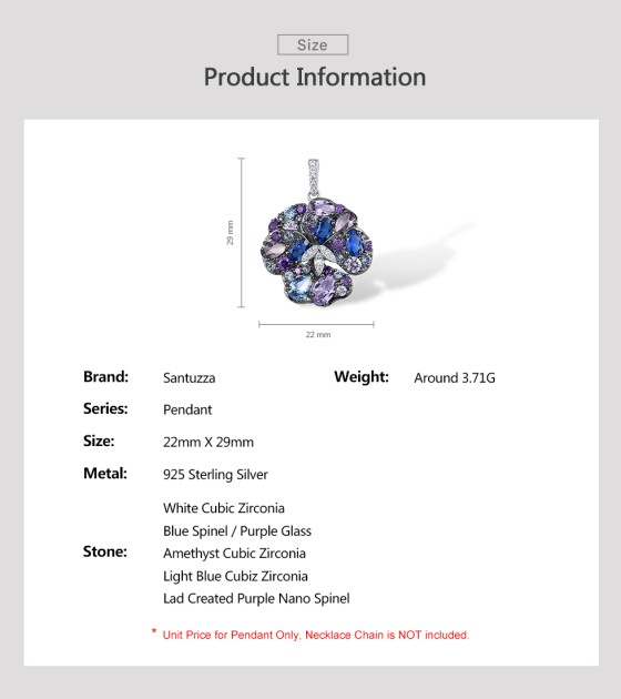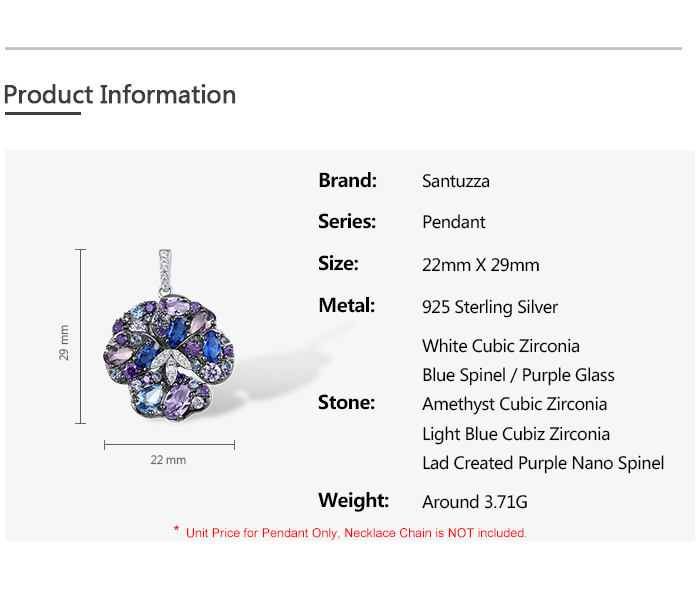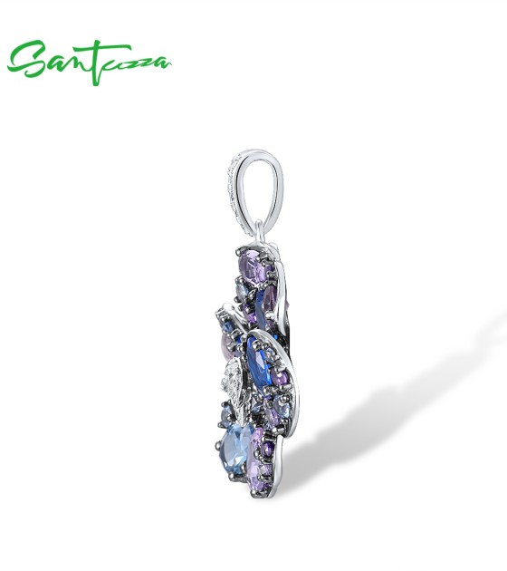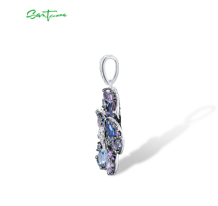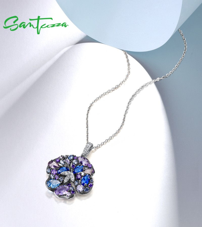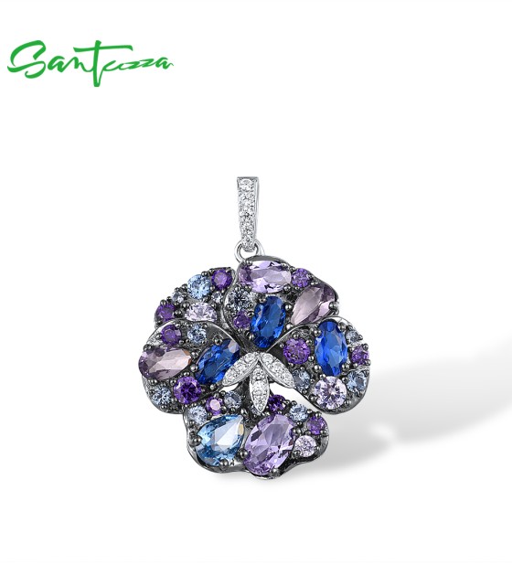 SANTUZZA 925 Sterling Silver Pendant Multi Gems Blue Orchid Flower Jewelry