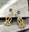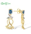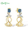 SANTUZZA 925 Sterling Silver Stud Earrings Blue Spinel White CZ Flower Dangling Fine Jewelry
