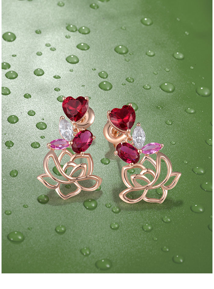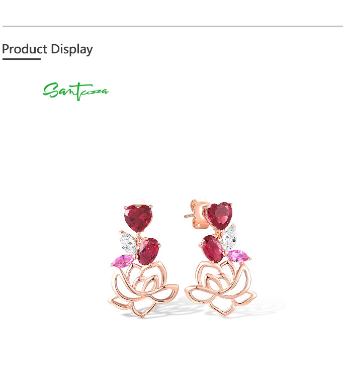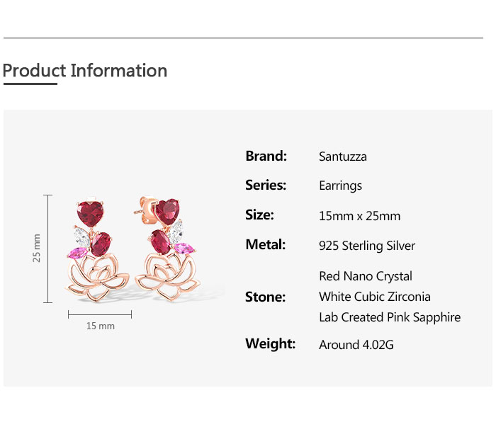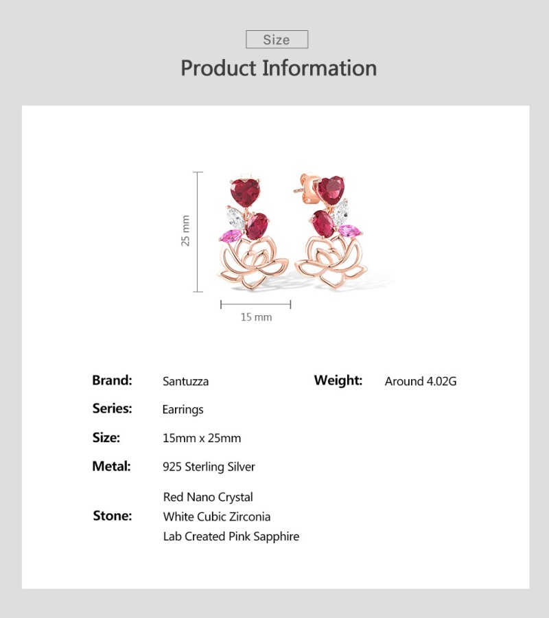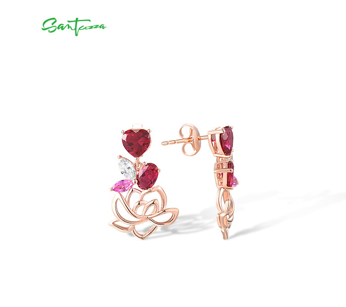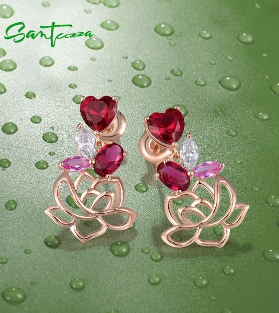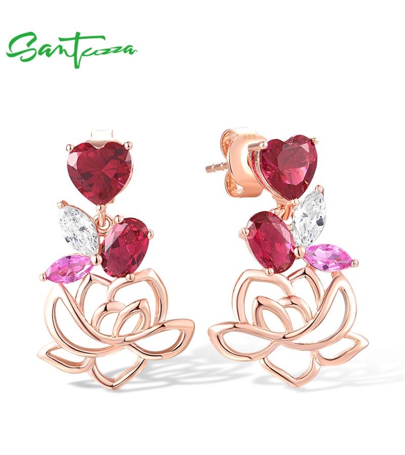 SANTUZZA 925 Sterling Silver Earrings Red Nano Crystal Pink Sapphire White CZ Heart Lotus Fine Jewelry