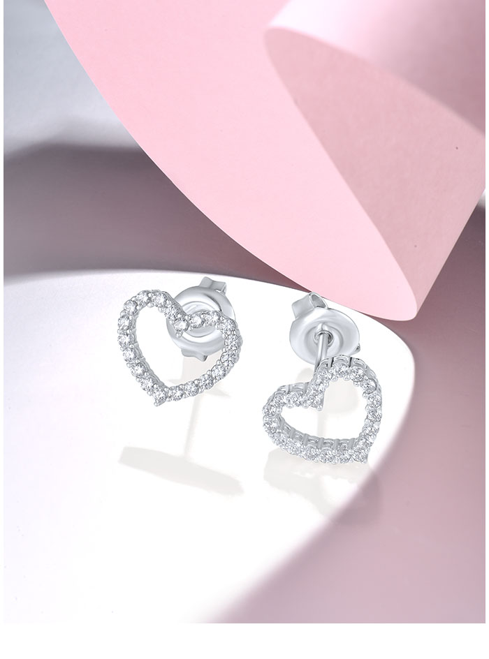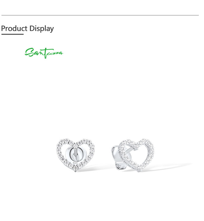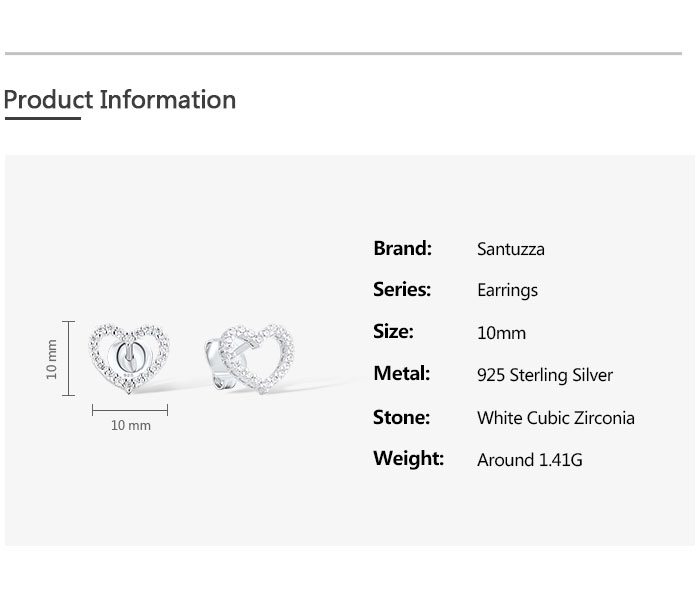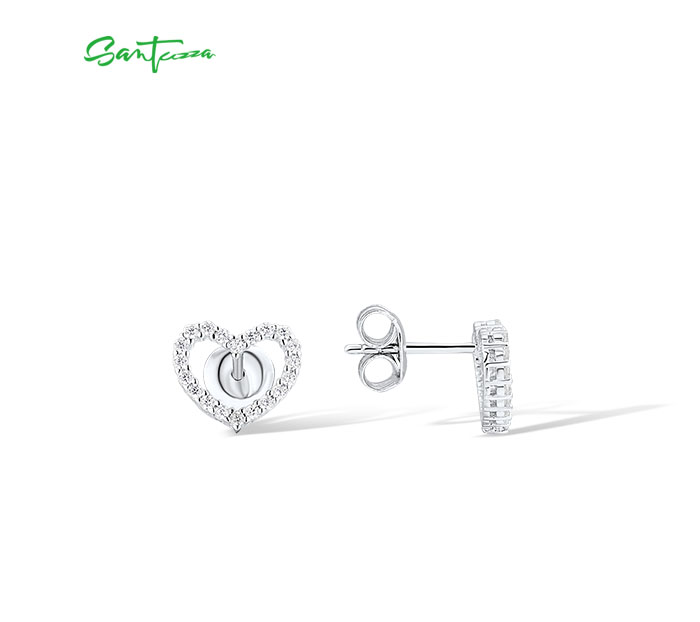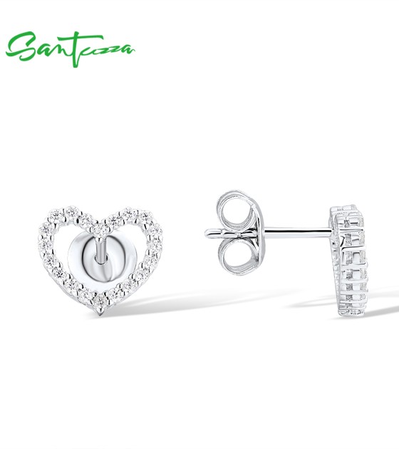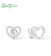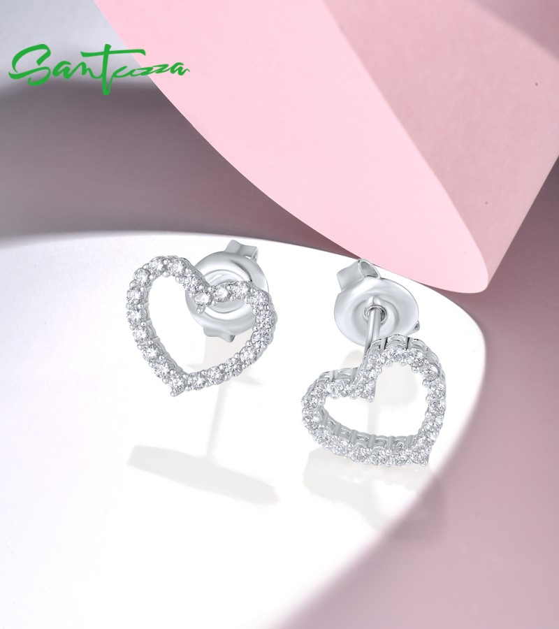 SANTUZZA 925 Sterling Silver Stud Earrings White CZ Open Heart Shaped Fine Jewelry