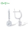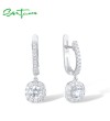 SANTUZZA 925 Sterling Silver Hoop Earrings White Cubic Zirconia Solitaire Fine Jewelry
