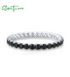 SANTUZZA 925 Sterling Silver Rings Black Spinel Stackable Ring Fine Jewelry