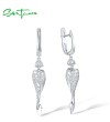 SANTUZZA 925 Sterling Silver Earrings Long Danling White Plating Cubic Zirconia Jewelry