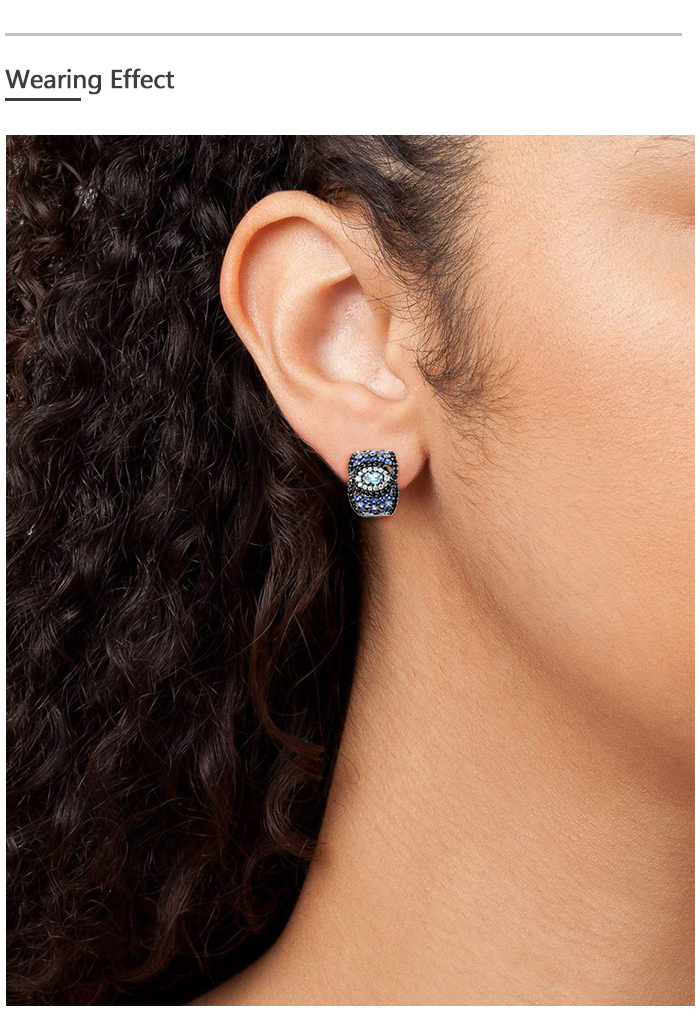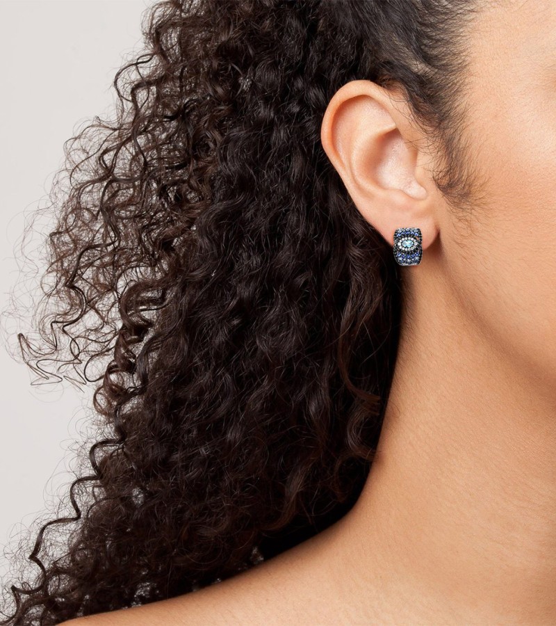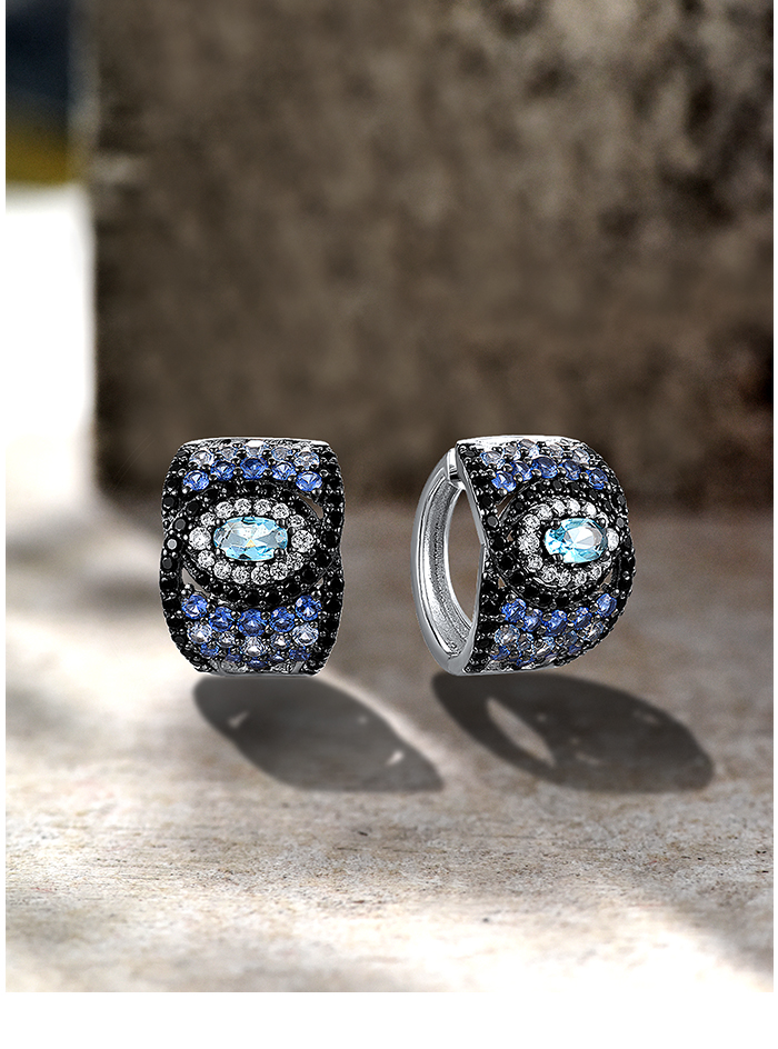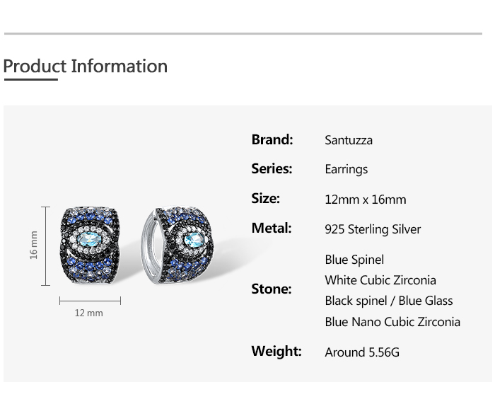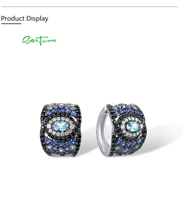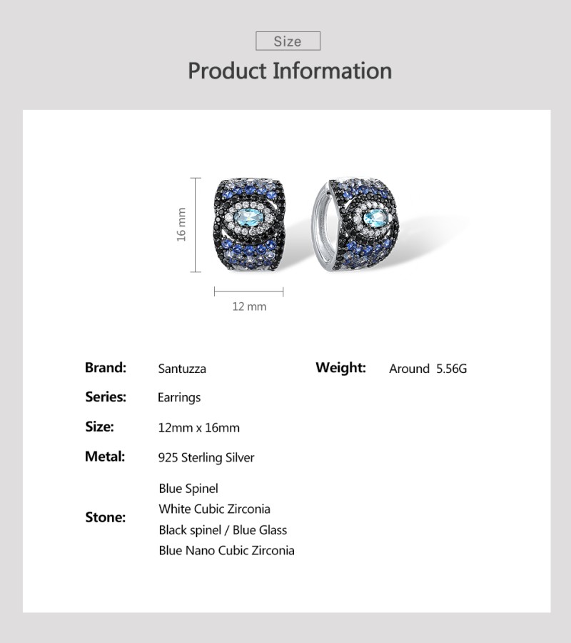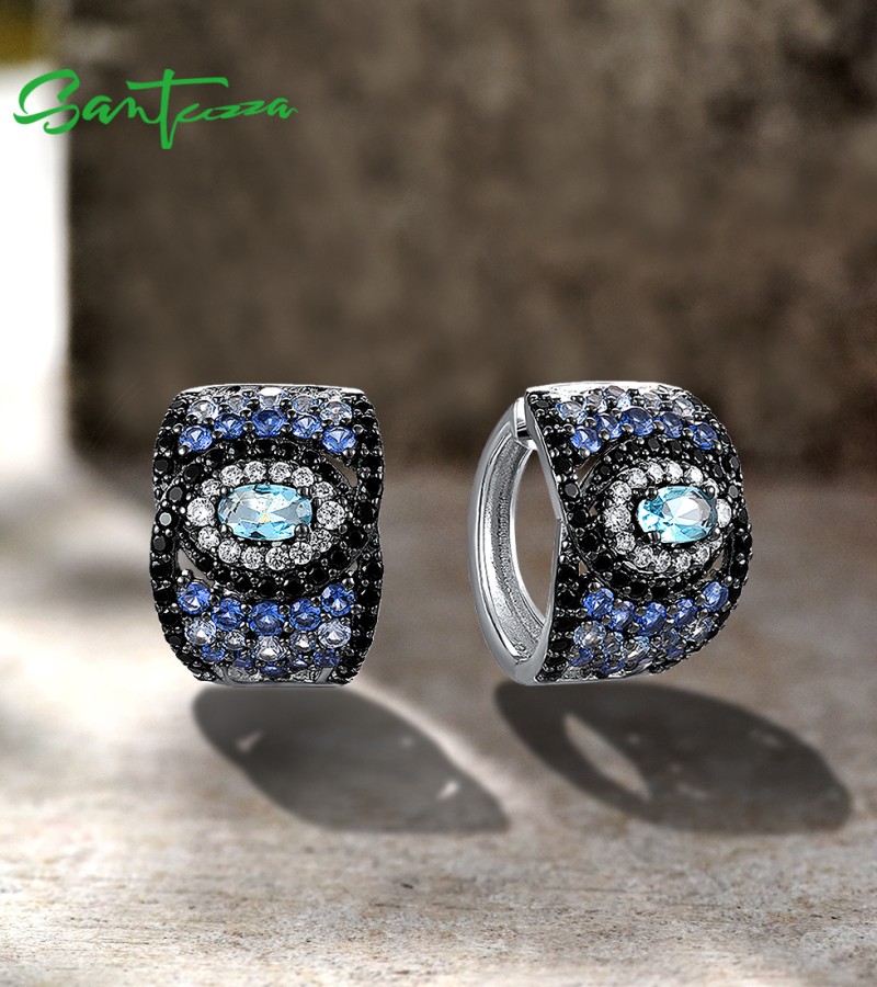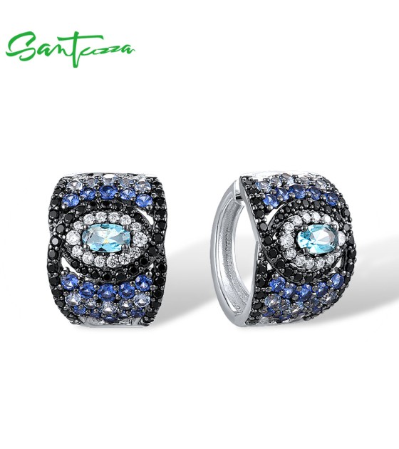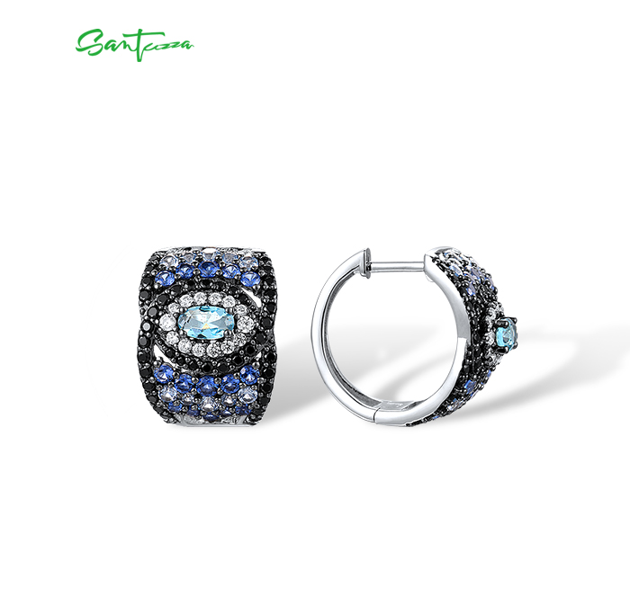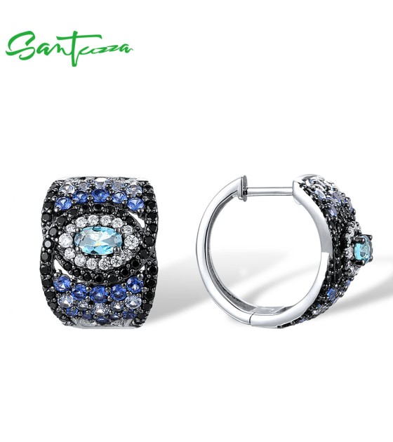 SANTUZZA 925 Sterling Silver Loop Pierce Earrings Blue And Black Spinel White CZ Fine Jewelry