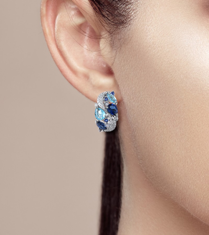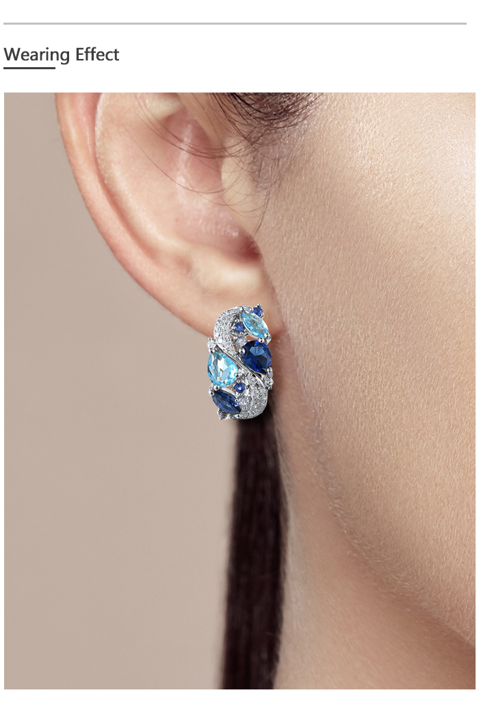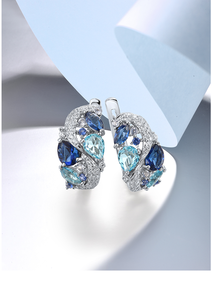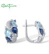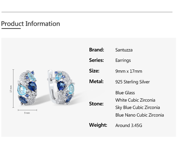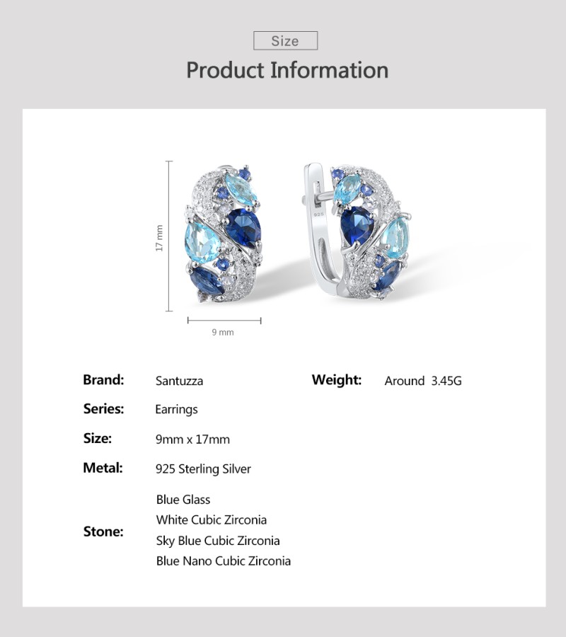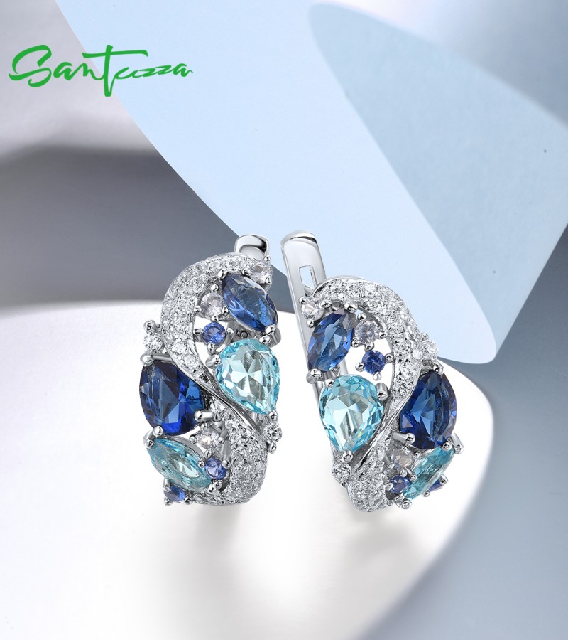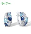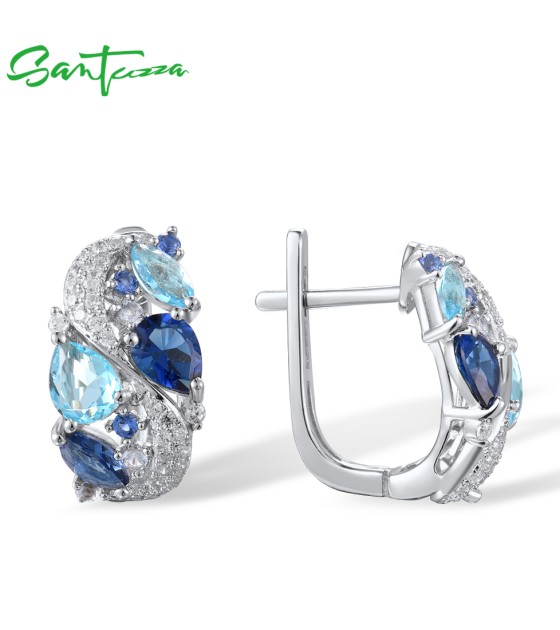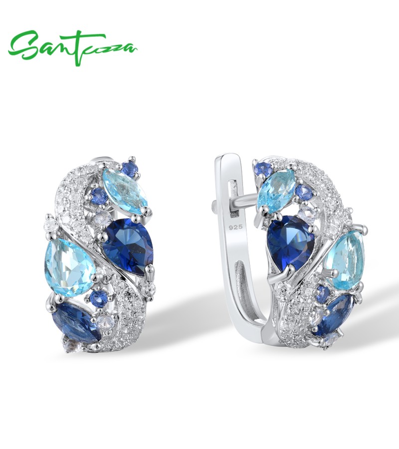 SANTUZZA 925 Sterling Silver Earrings Sparkling Blue Stones White Cubic Zirconia Jewelry