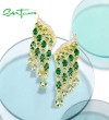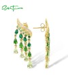 SANTUZZA Silver Earrings 925 Sterling Silver Green Glass Spinel White CZ Ombre Raindrops Jewelry