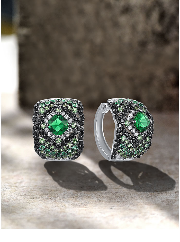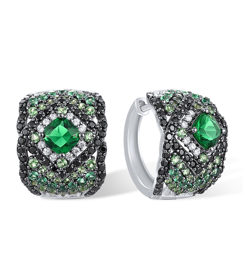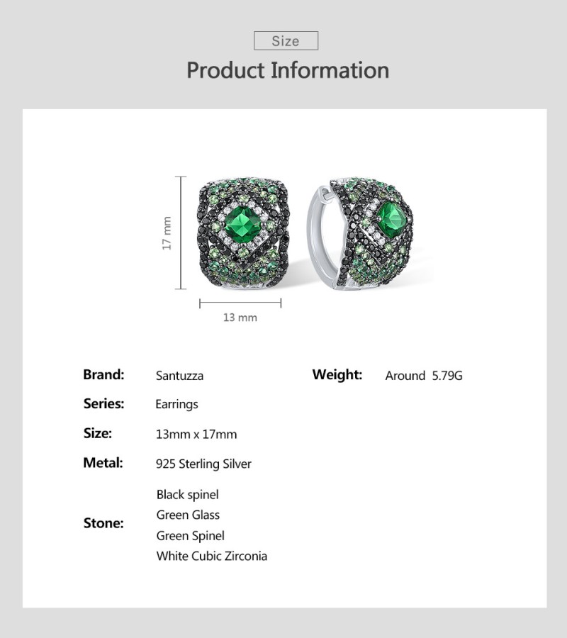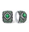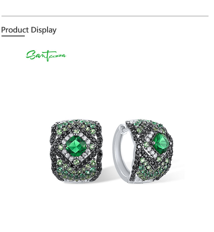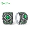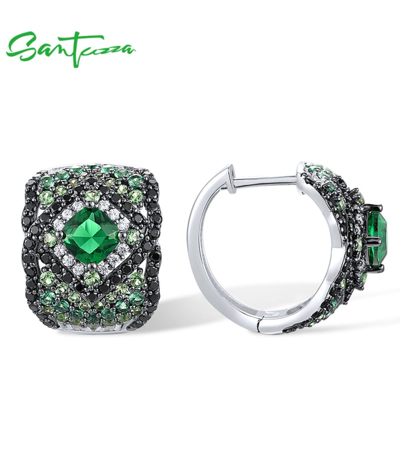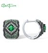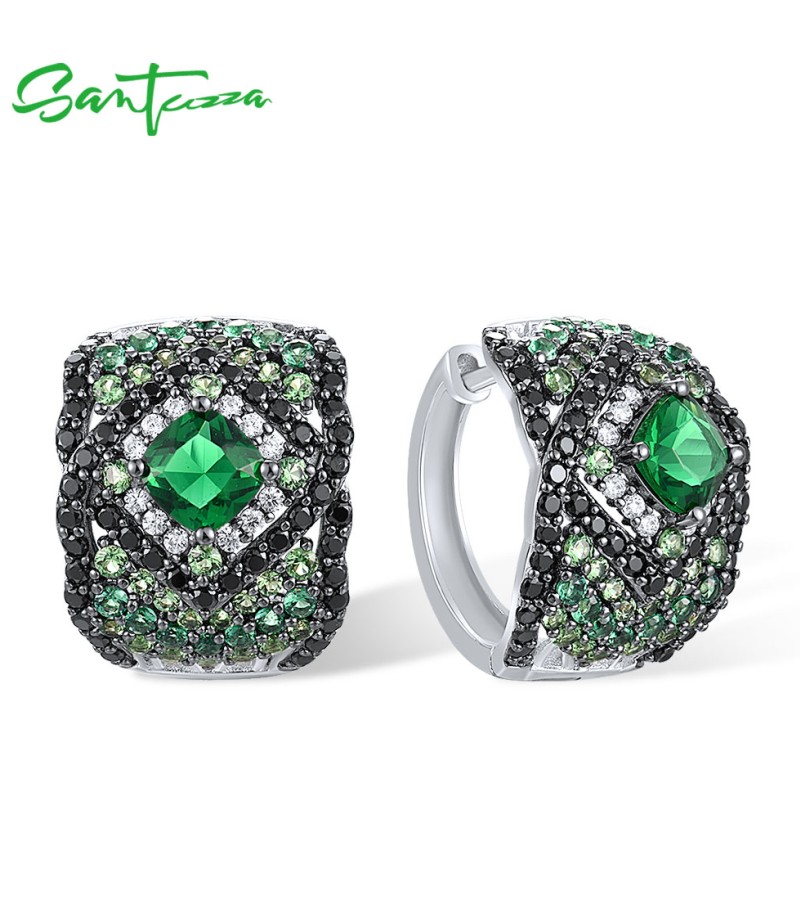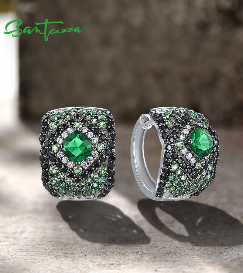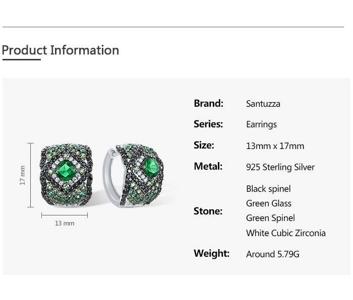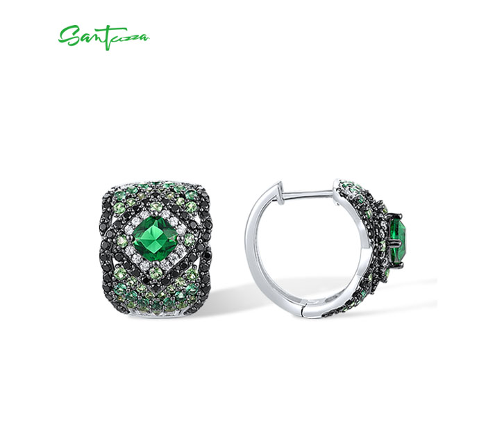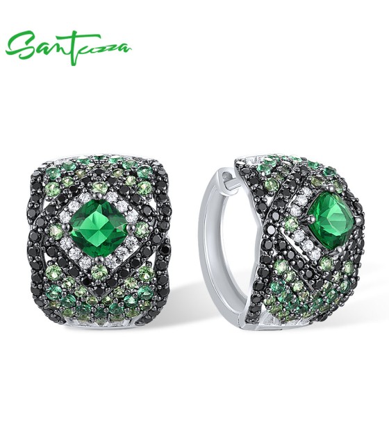 SANTUZZA 925 Sterling Silver Loop Pierce Earrings Black And Green Spinel White CZ Fine Jewelry