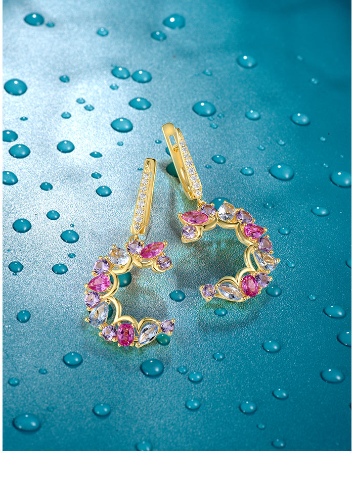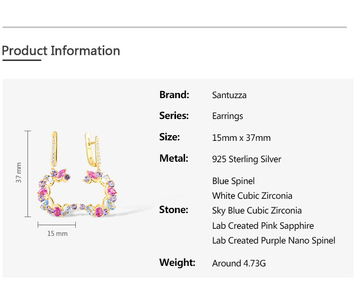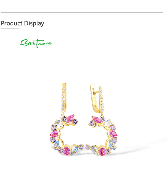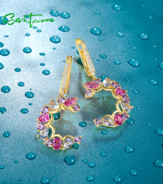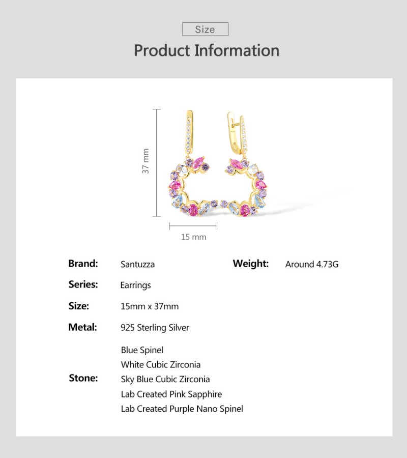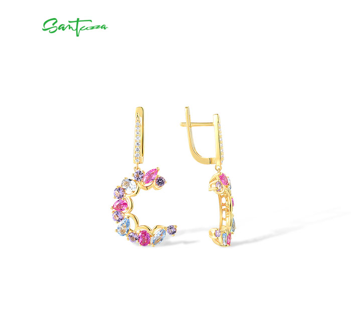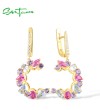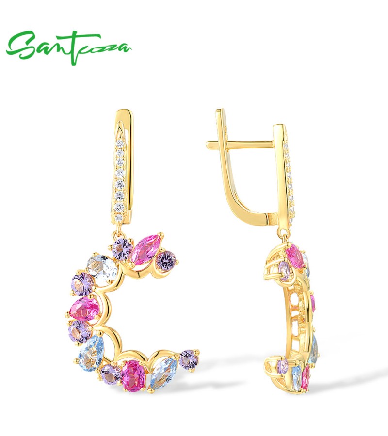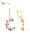 SANTUZZA 925 Sterling Silver Dangling Earrings Multi-Color Gemstones Fine Jewelry