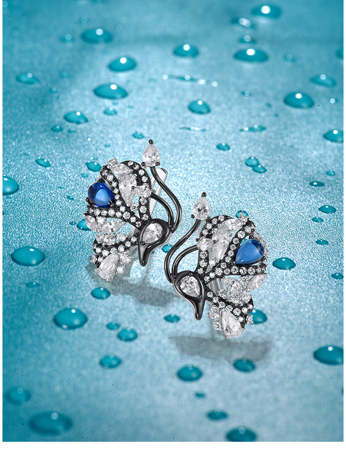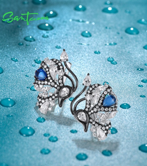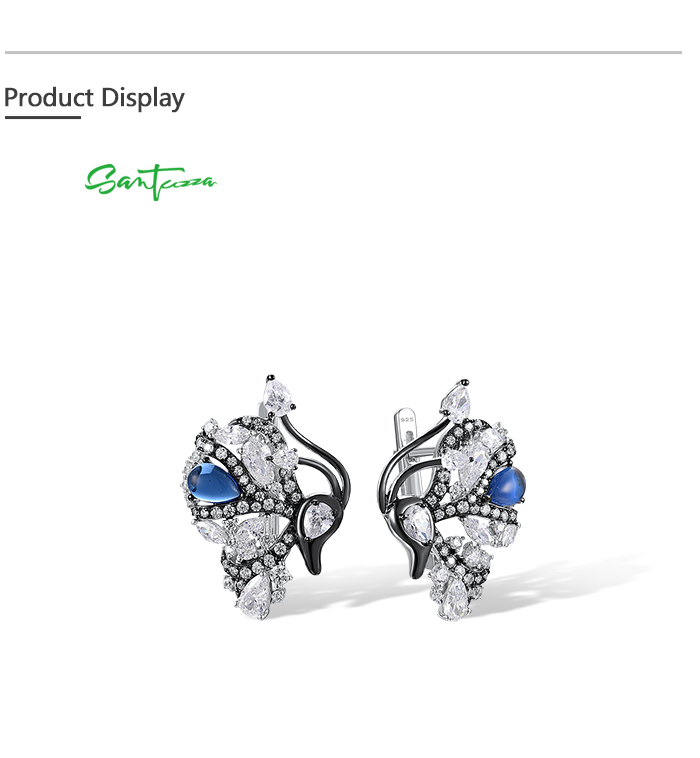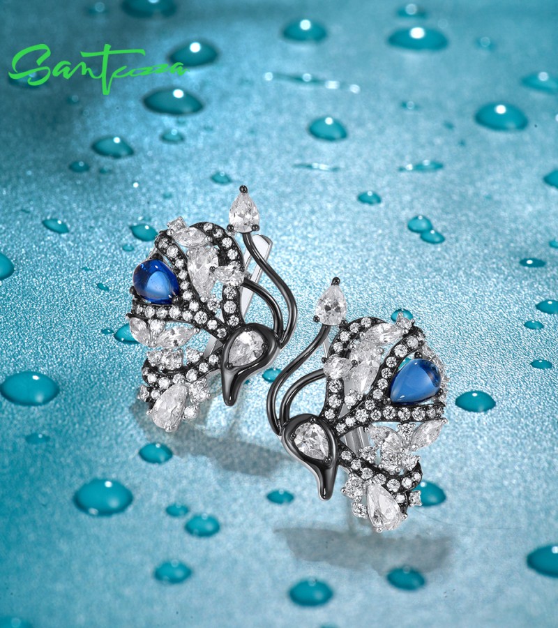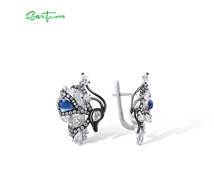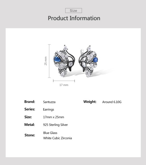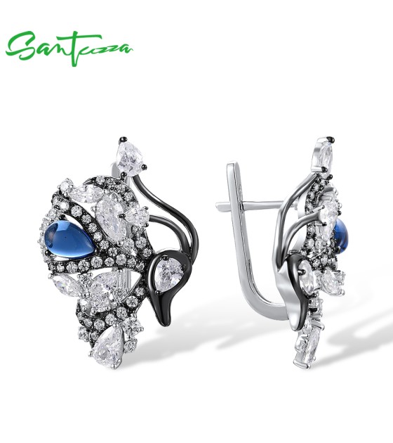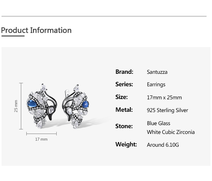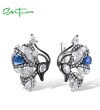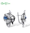 SANTUZZA 925 Sterling Silver Blutterfly Earrings White CZ Blue Glass Latch Back Fine Jewelry