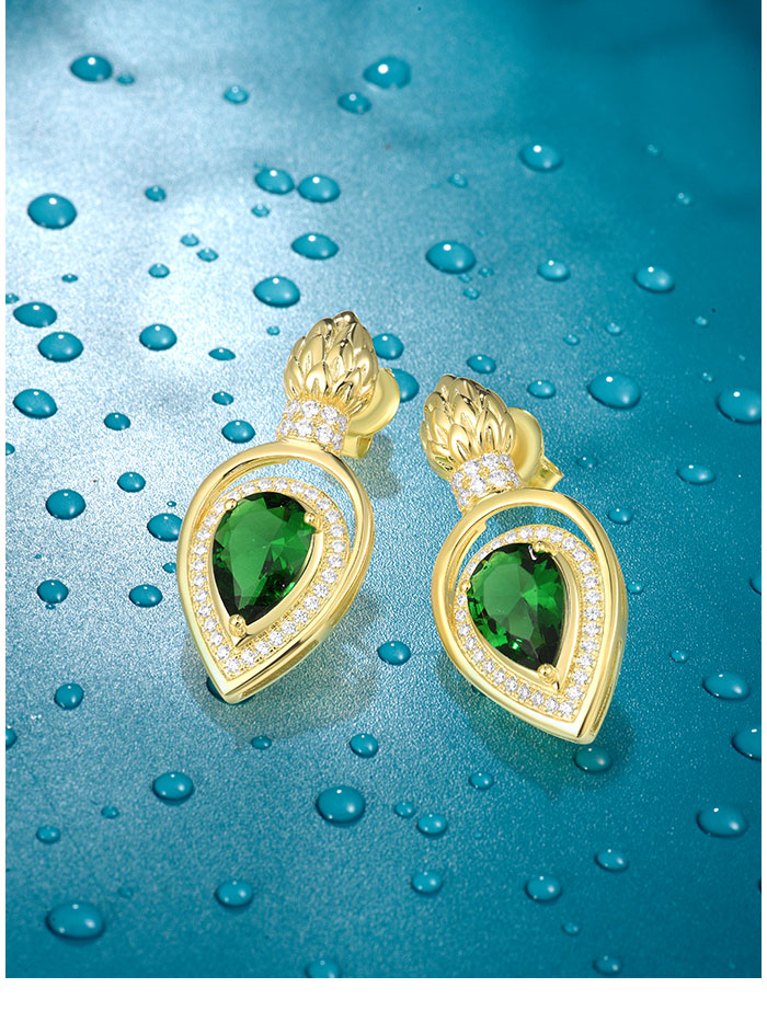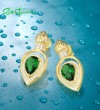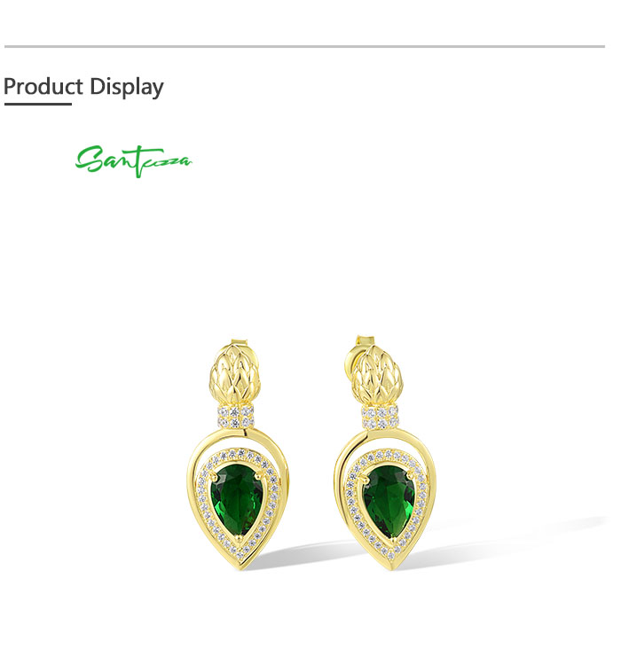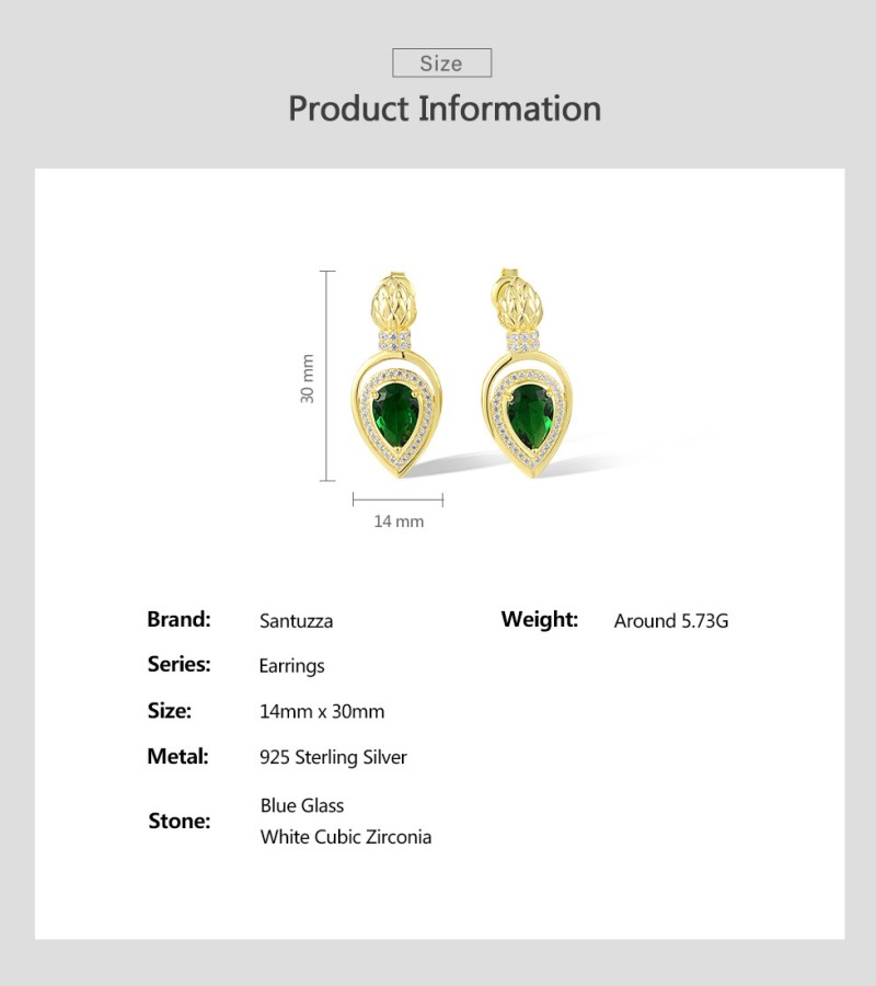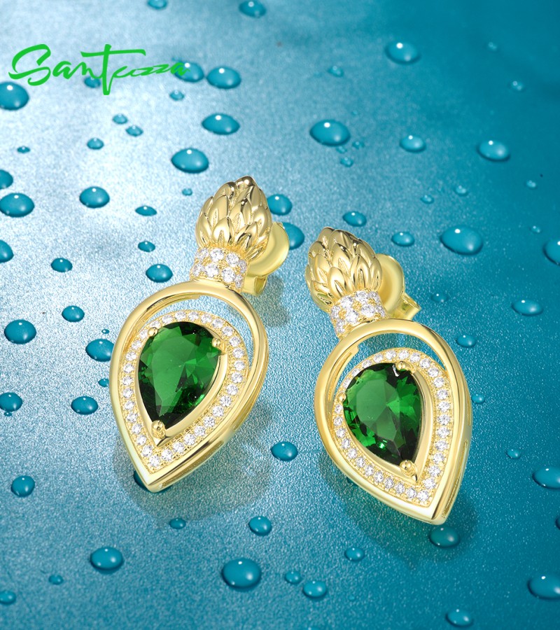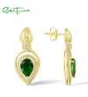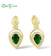 SANTUZZA 925 Sterling Silver Stud Earrings Green Glass White CZ Pear Shaped Fine Jewelry