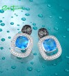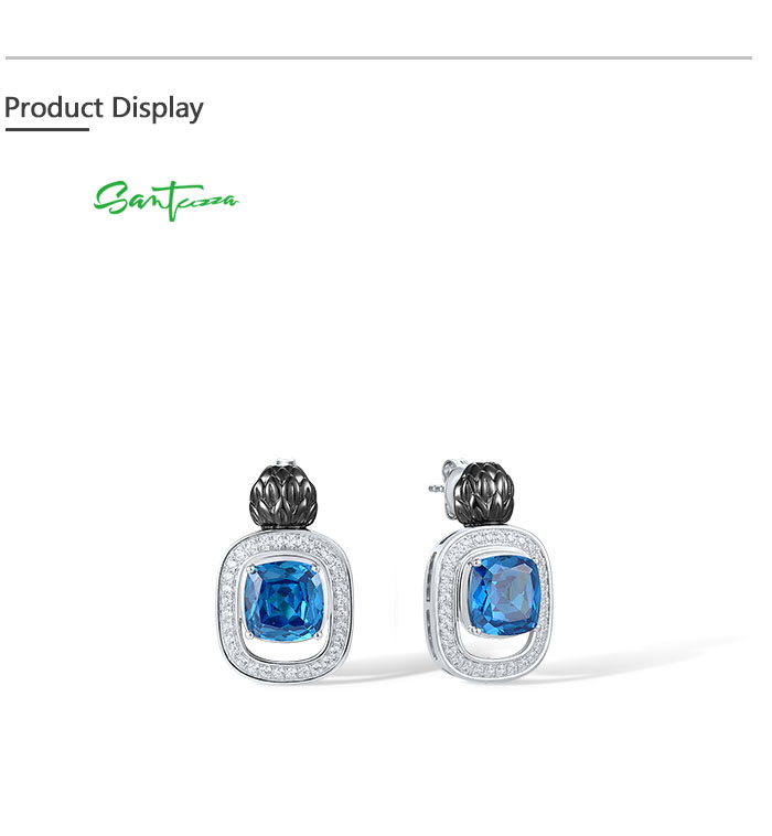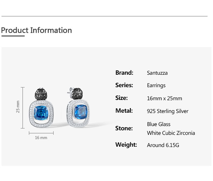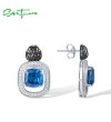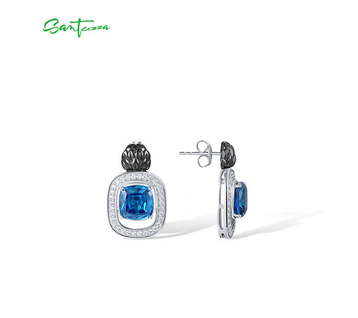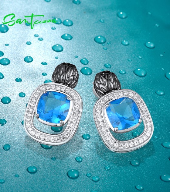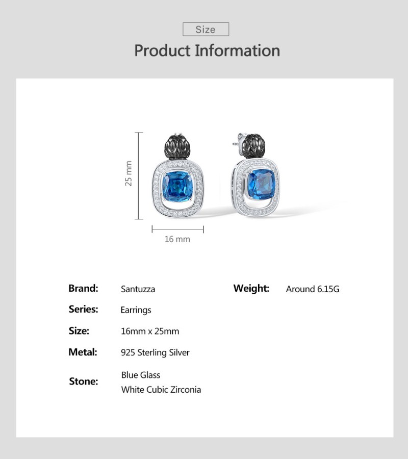 SANTUZZA 925 Sterling Silver Geometric Earrings Blue Glass White CZ Stud Earring Fine Jewelry