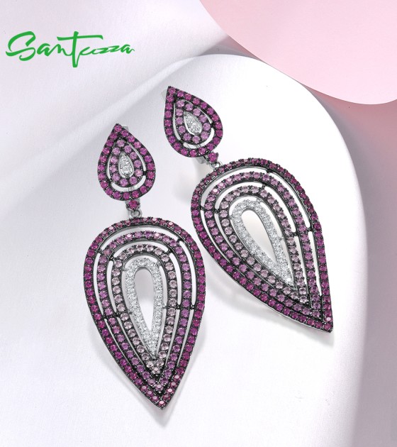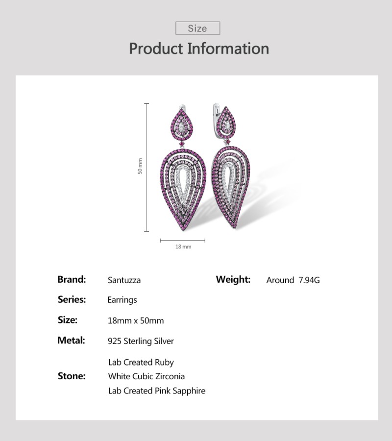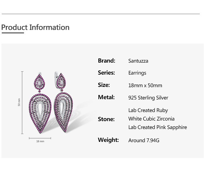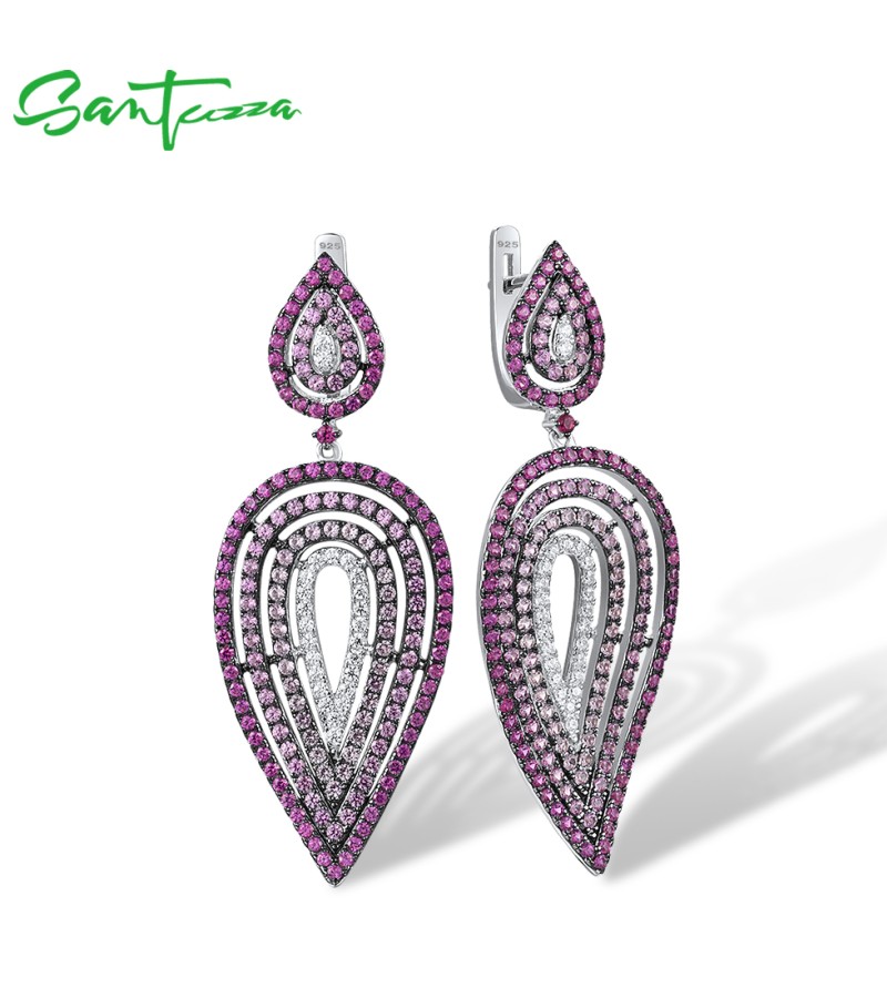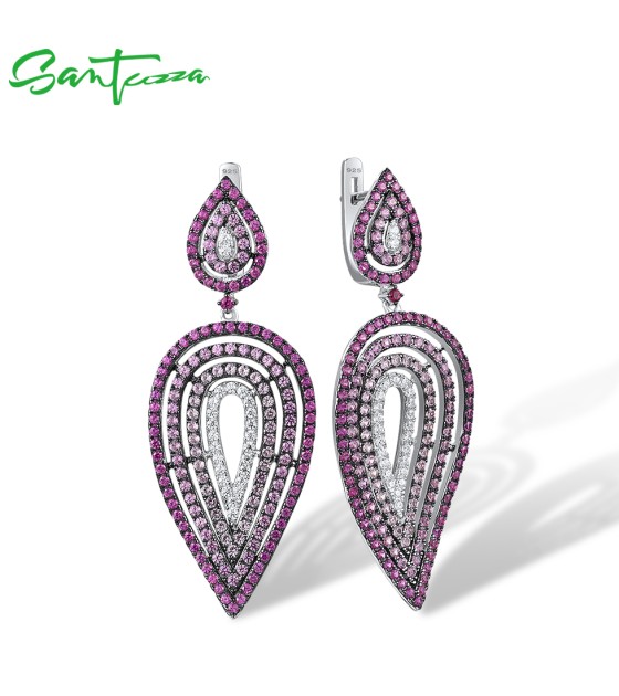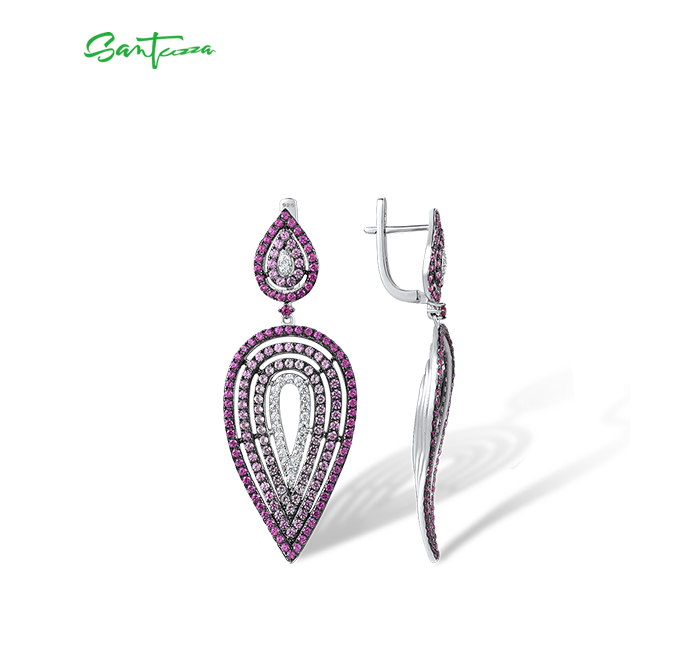 SANTUZZA 925 Silver Dangling Earrings Sterling Silver Created Pink Sapphire Ruby Jewelry