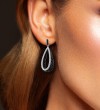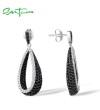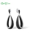 SANTUZZA 925 Sterling Silver Earrings Black Spinel White CZ Drop Shape Eariings Fine Jewelry