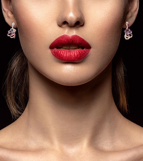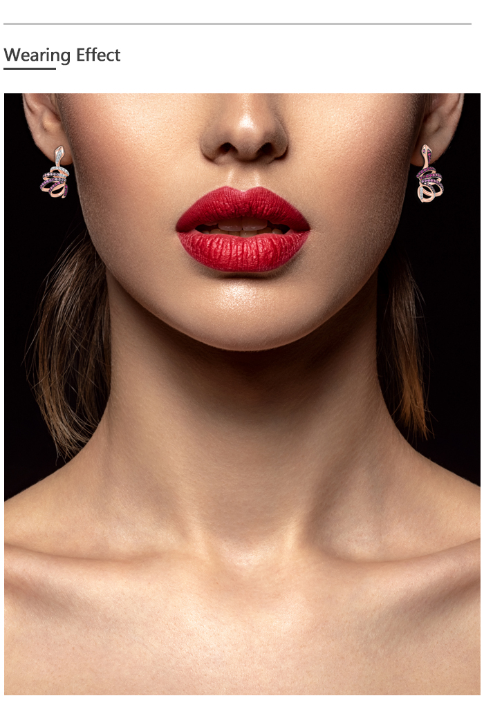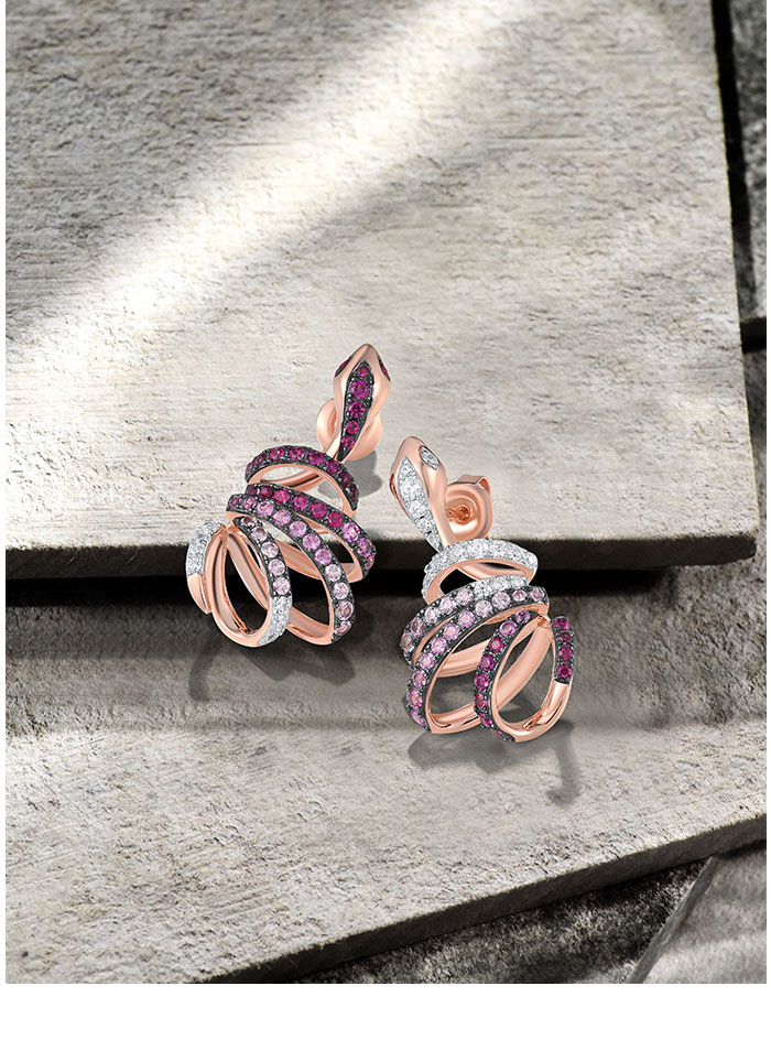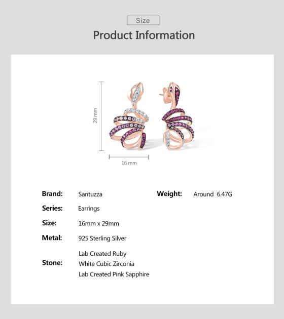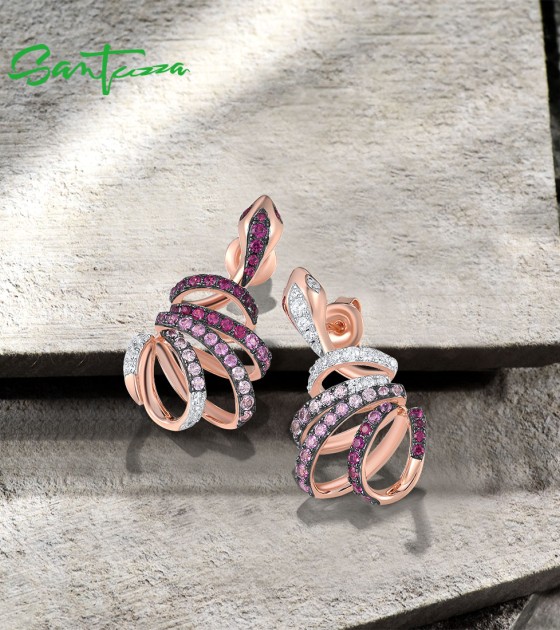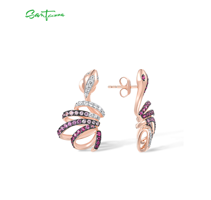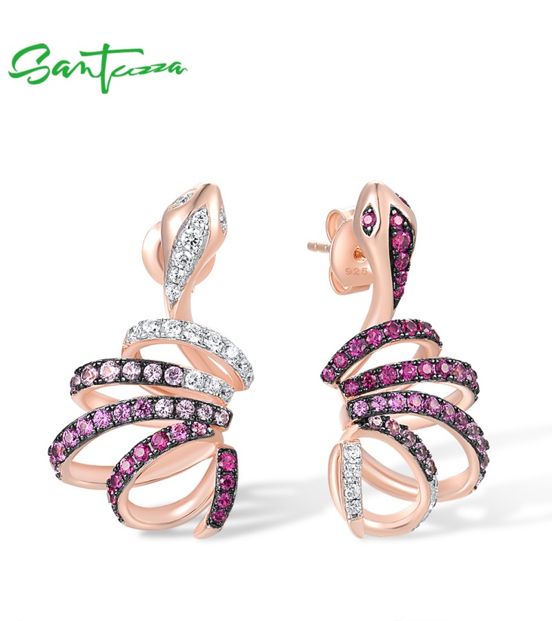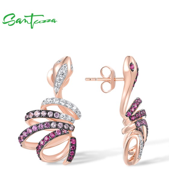 SANTUZZA 925 Sterling Silver Stud Earrings Created Pink Sapphire Ruby Rose Gold Plated Snake Jewelry