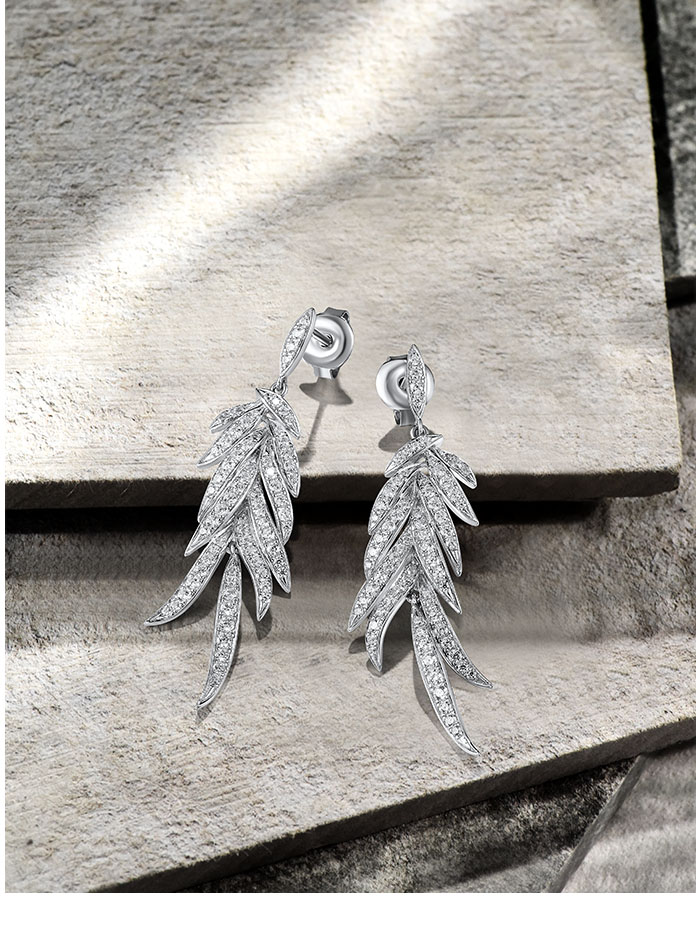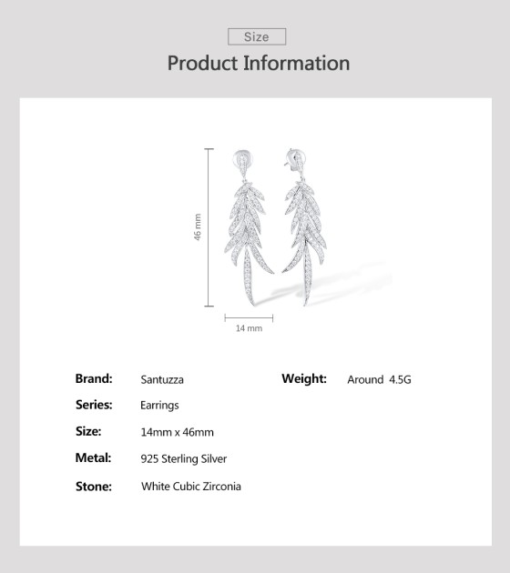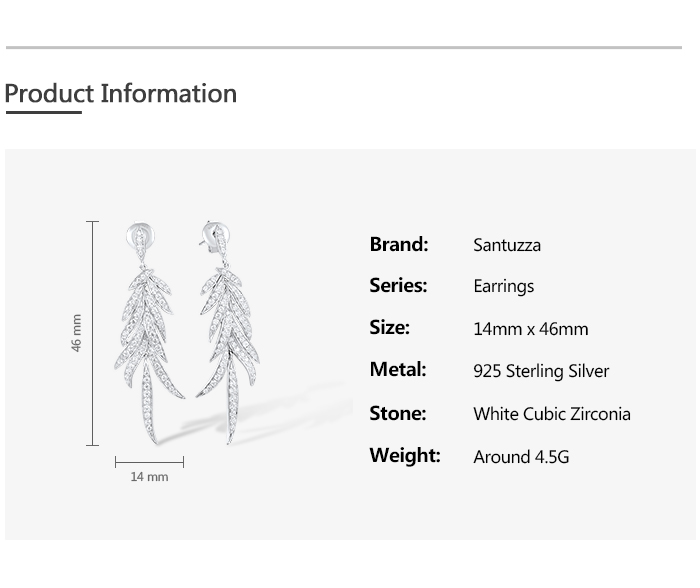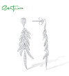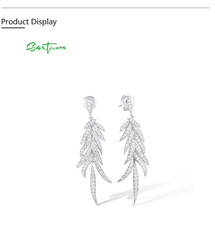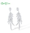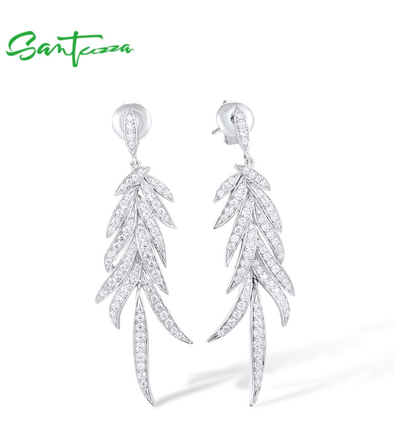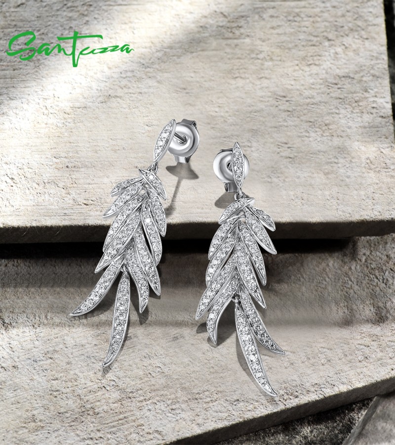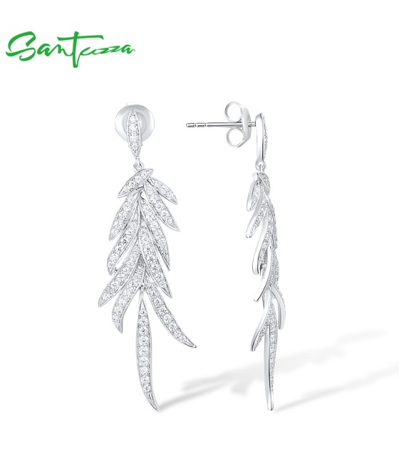SANTUZZA 925 Sterling Silver Stud Earrings White Cubic Zirconia Dangling Leaf Jewelry