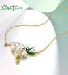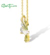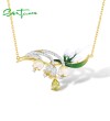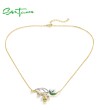 SANTUZZA 925 Sterling Silver Enamel Necklace Green Stones White CZ Flower Necklace Fine Jewelry