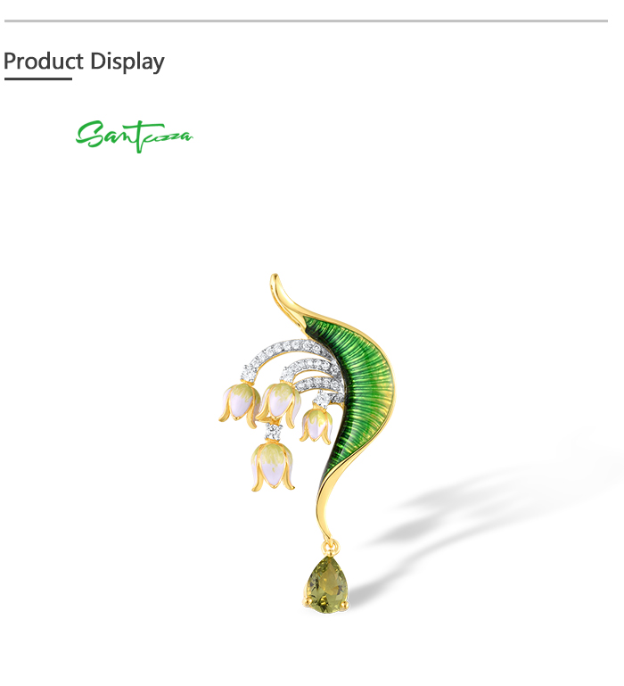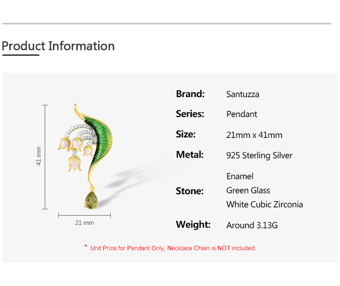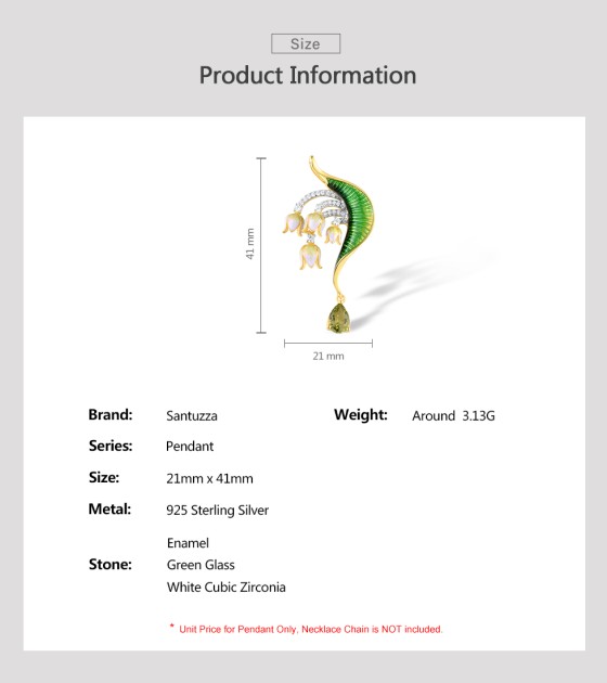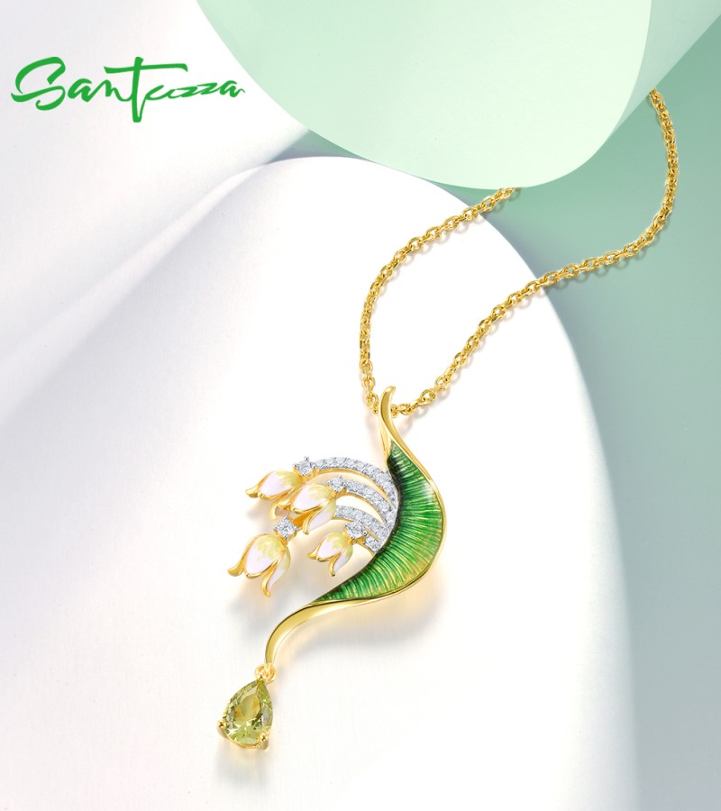 SANTUZZA 925 Sterling Silver Pendant Green Stones White CZ Enamel Flower Pendant Fine Jewelry