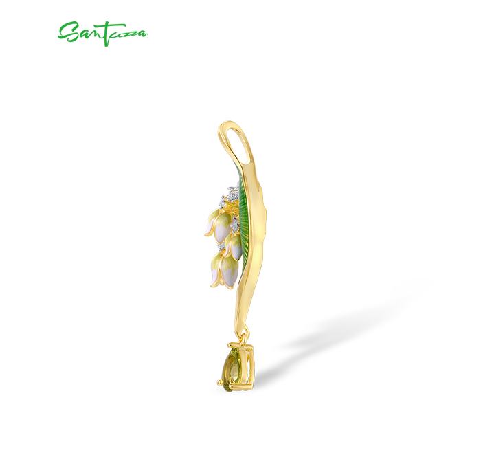 SANTUZZA 925 Sterling Silver Drop Earrings Green Stones White CZ Enamel Flower Fine Jewelry