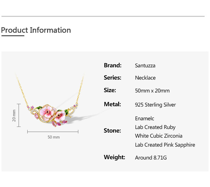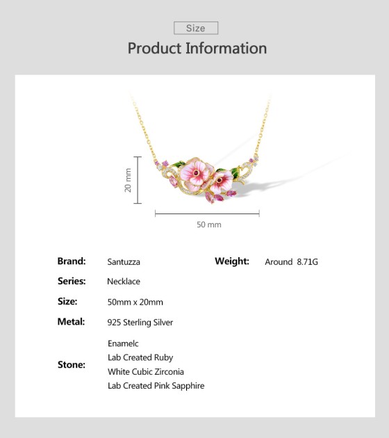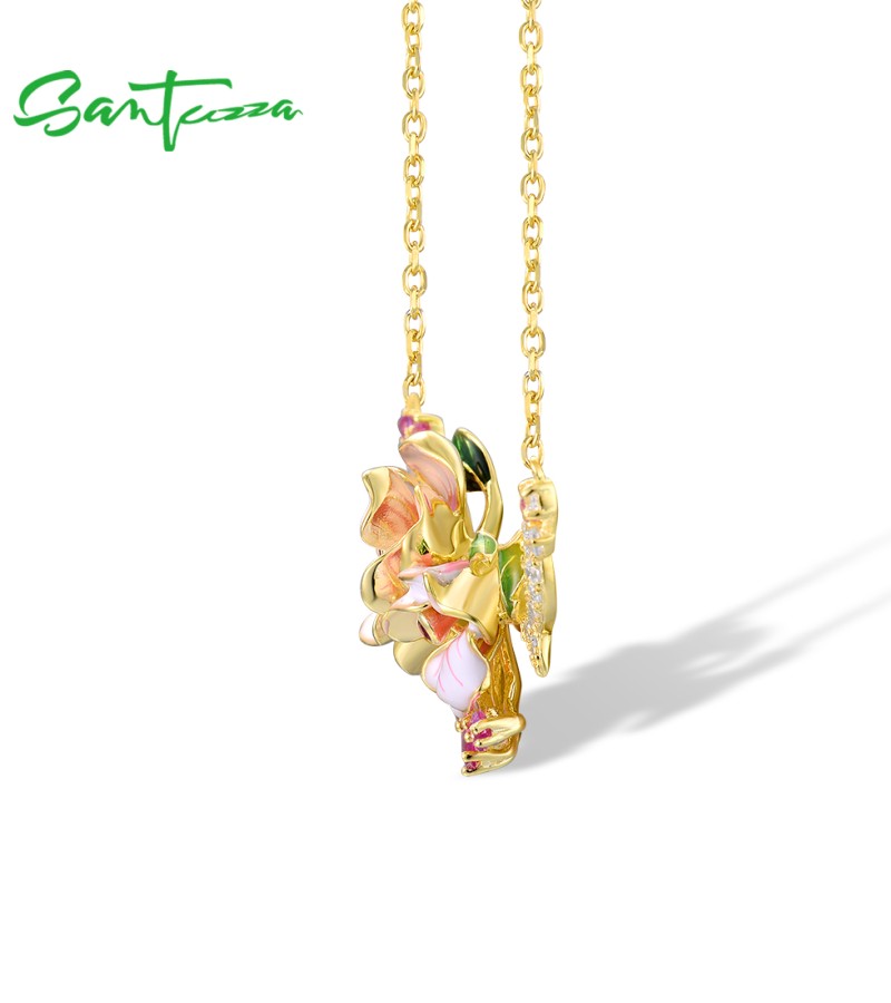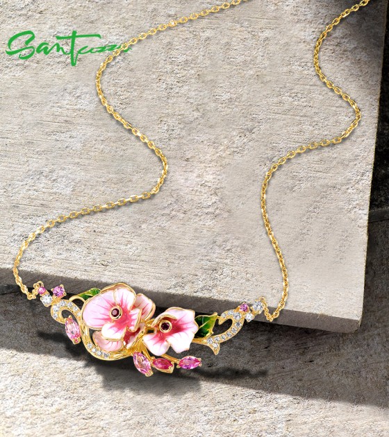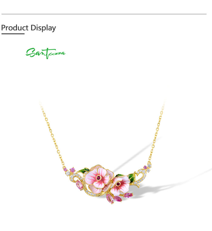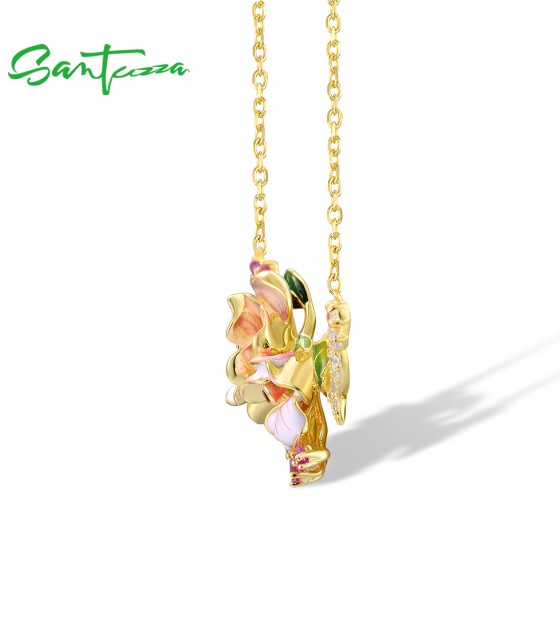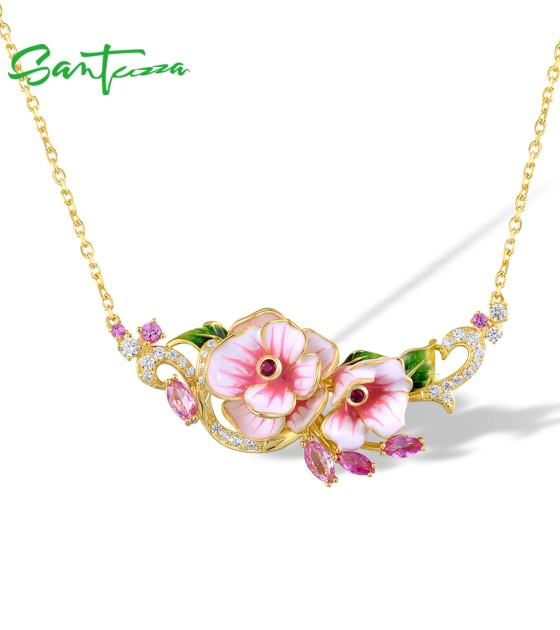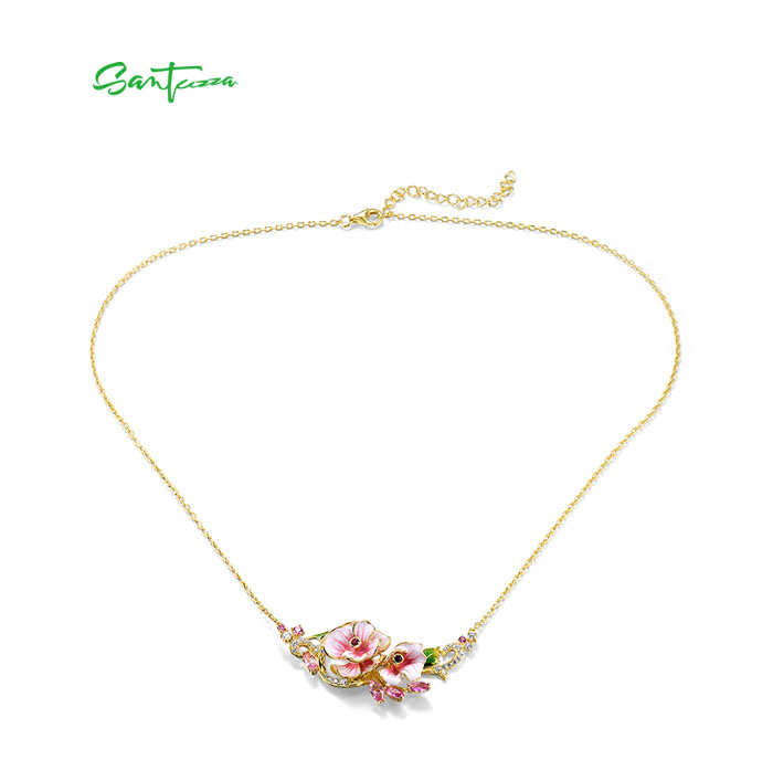 SANTUZZA 925 Sterling Silver Enamel Necklace Red Pink Stones White CZ Flower Fine Jewelry