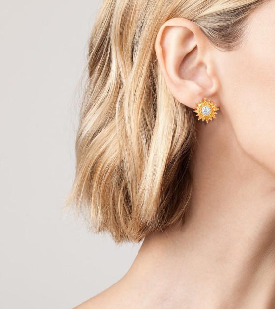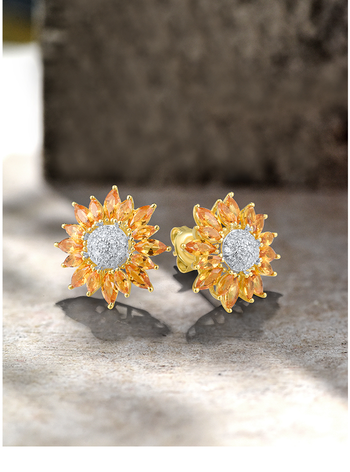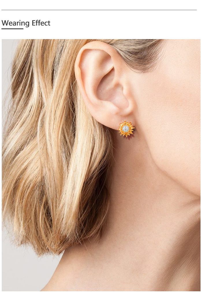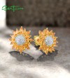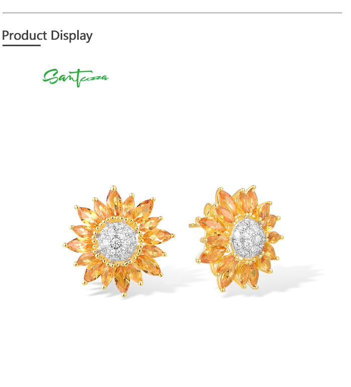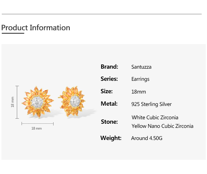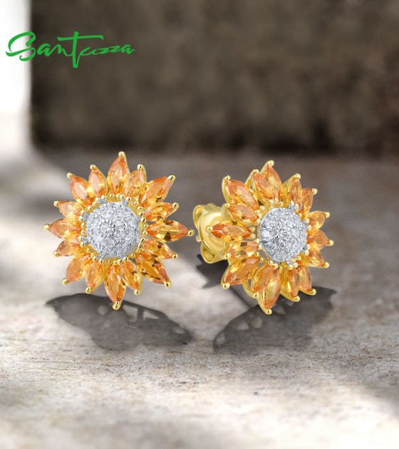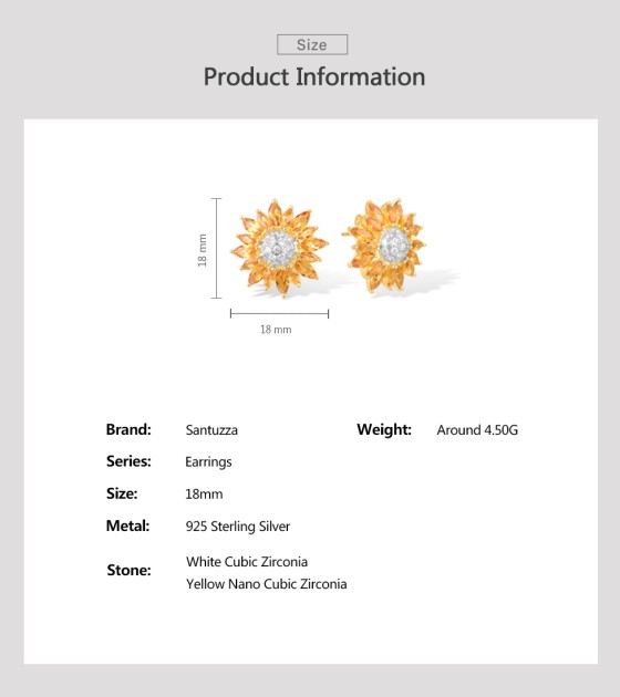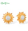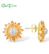 SANTUZZA 925 Sterling Silver Stud Earrings Yellow Nano /White CZ Gold Color Sun Flower Jewelry