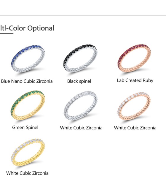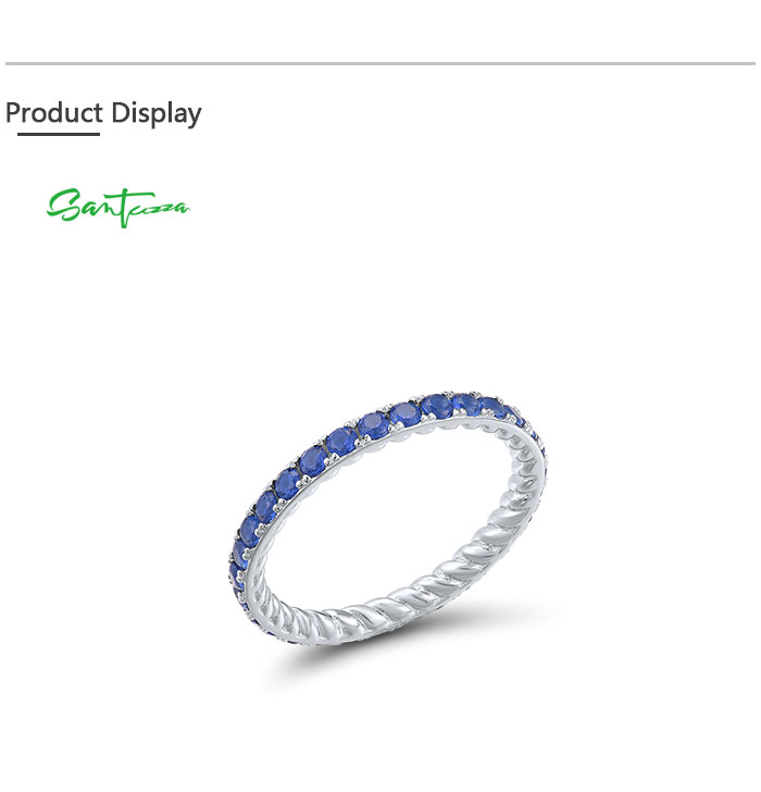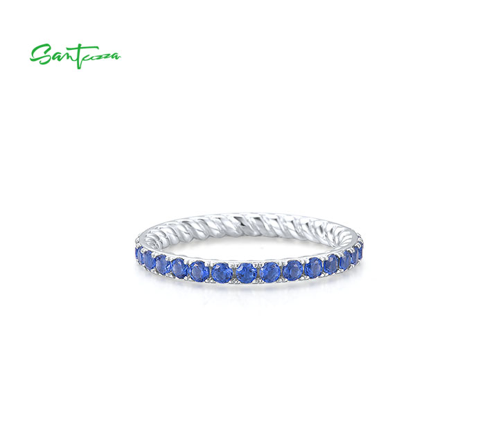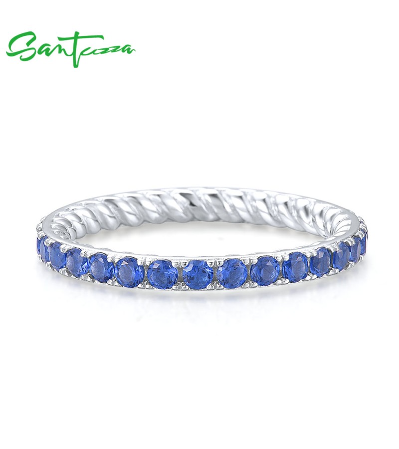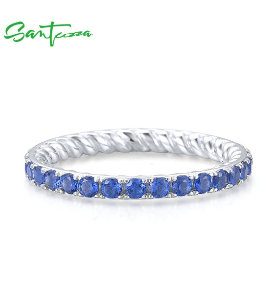 SANTUZZA 925 Sterling Silver Rings Blue Nano Cubic Zirconia Stackable Ring Fine Jewelry