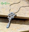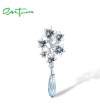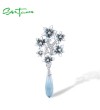 SANTUZZA 925 Sterling Silver Pendant Blue Stones White CZ Enamel Flower Pendant Fine Jewelry