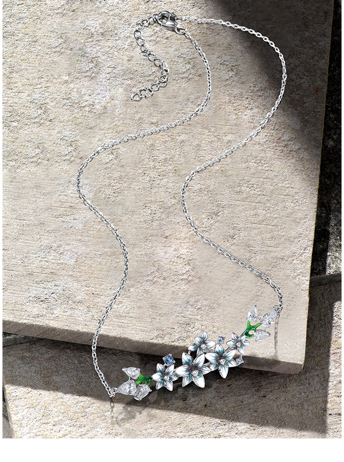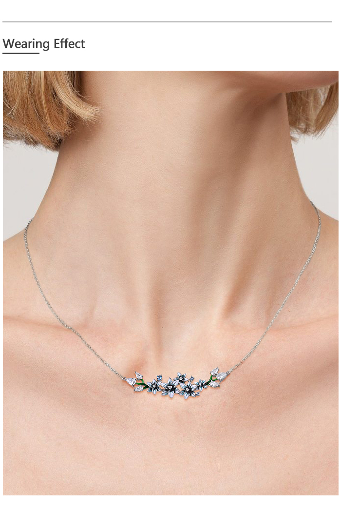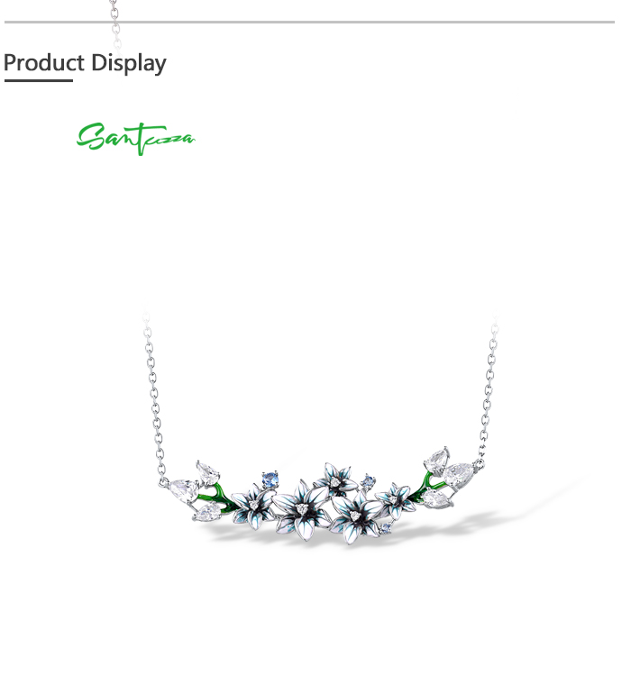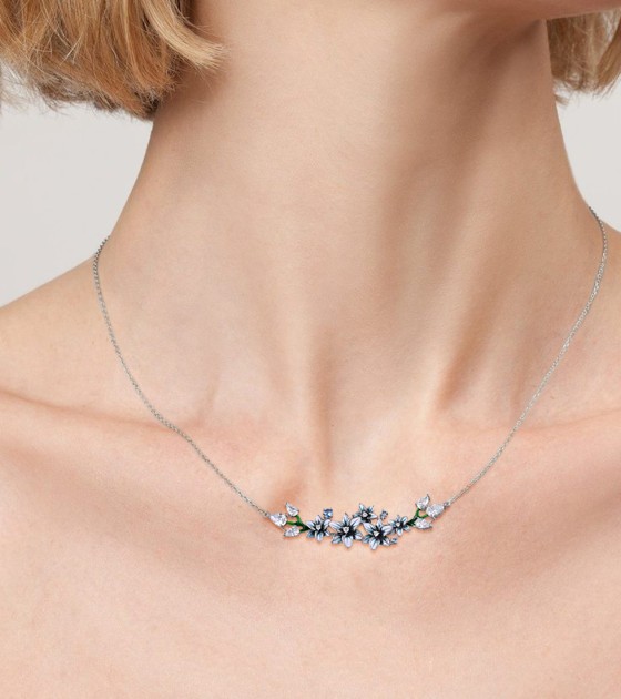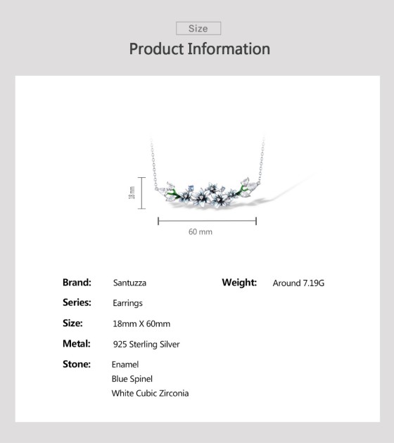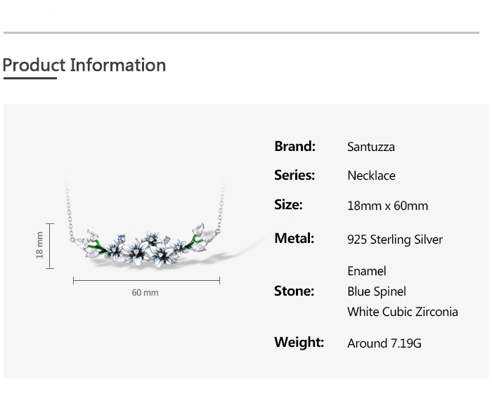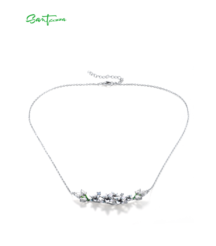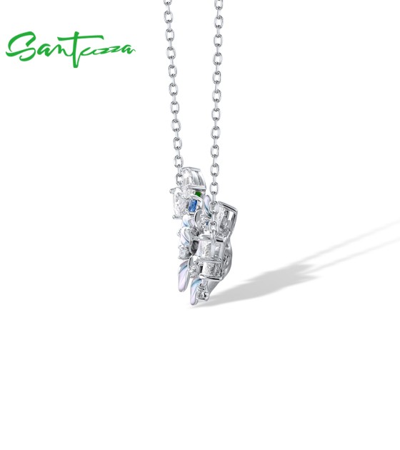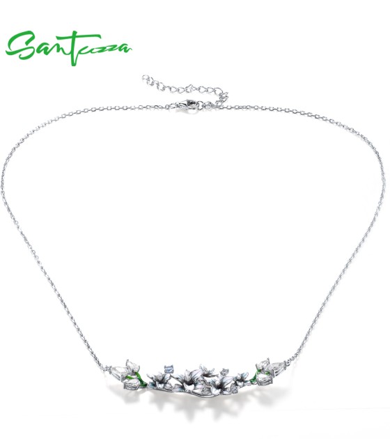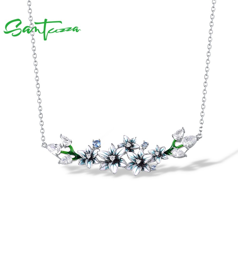 SANTUZZA 925 Sterling Silver Enamel Necklace Blue Spinel White CZ Flowers Necklace Fine Jewelry