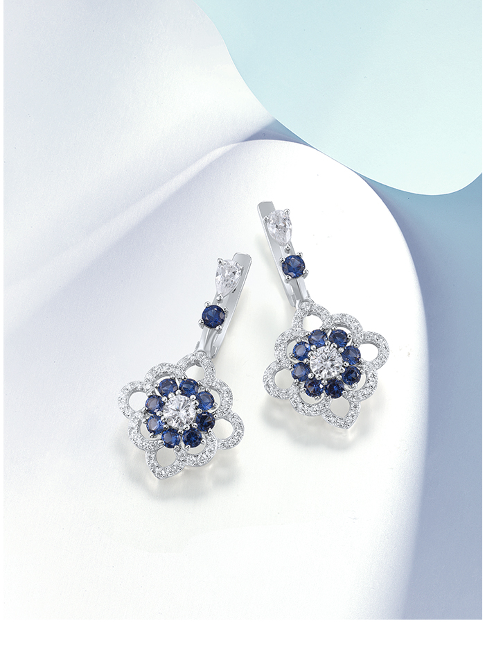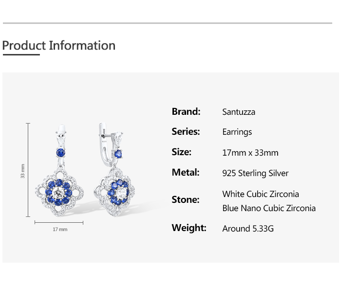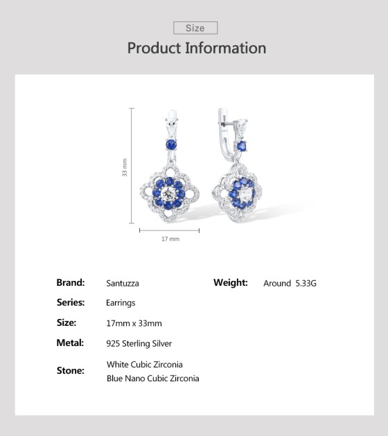 SANTUZZA 925 Silver Dangling Earrings Sterling Silver Sparkling Blue White Cubic Zirconia Flower Jewelry