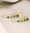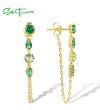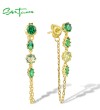 SANTUZZA 925 Sterling Silver Earrings Green Stones Gold Color Long Thread Earrings Fine Jewelry