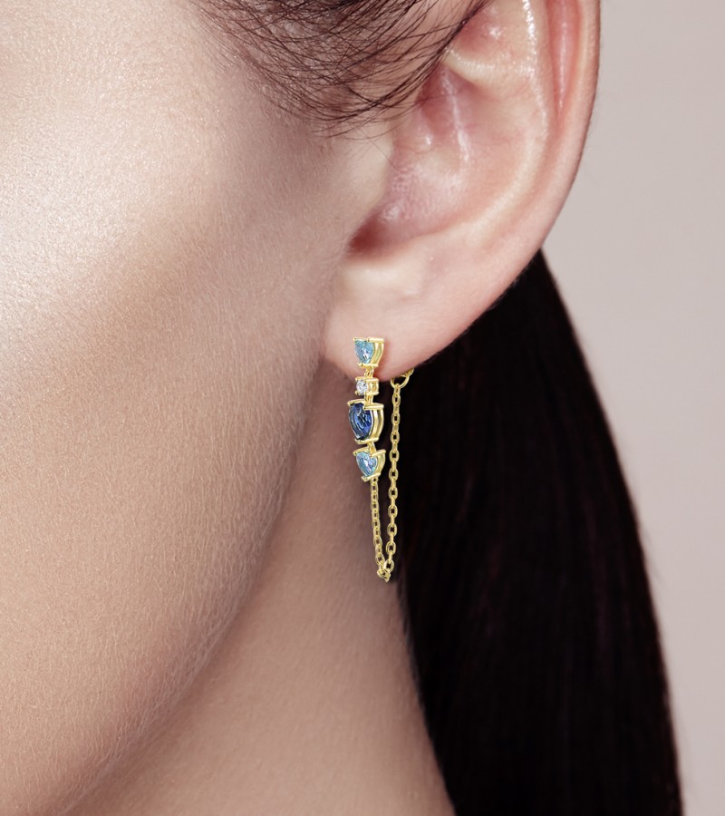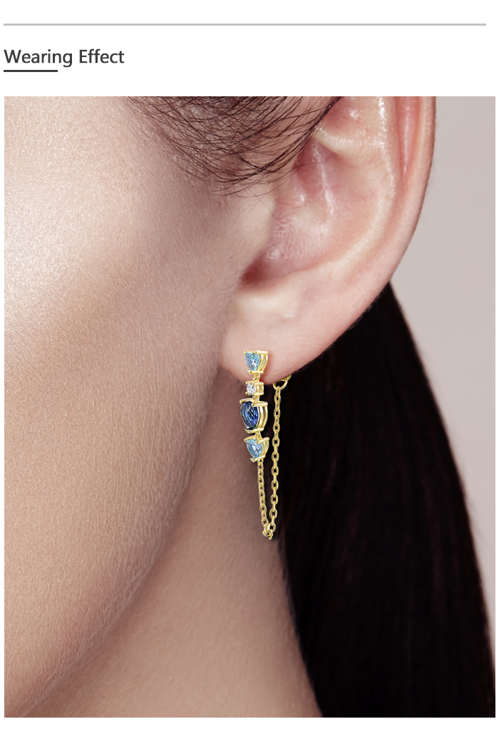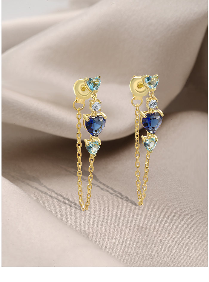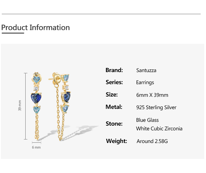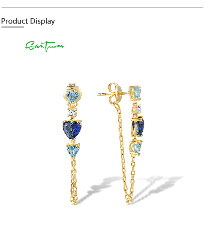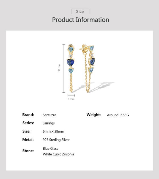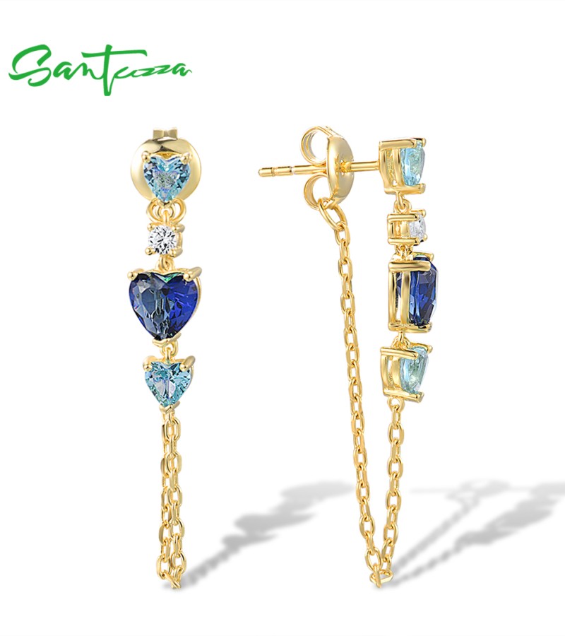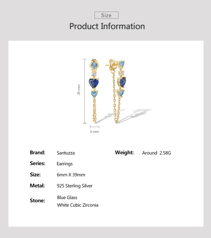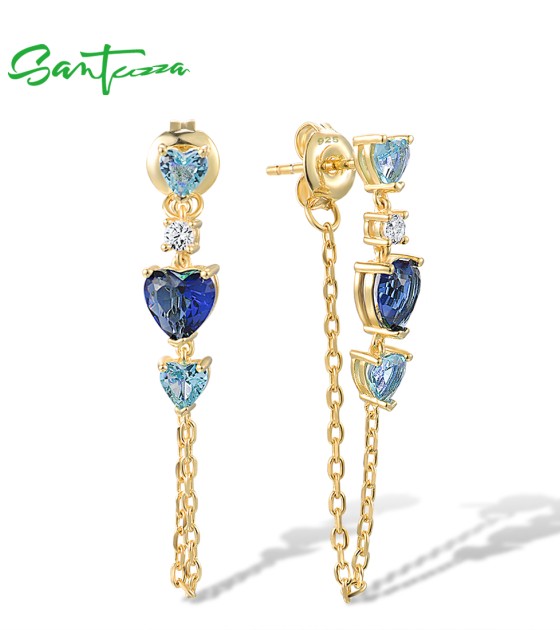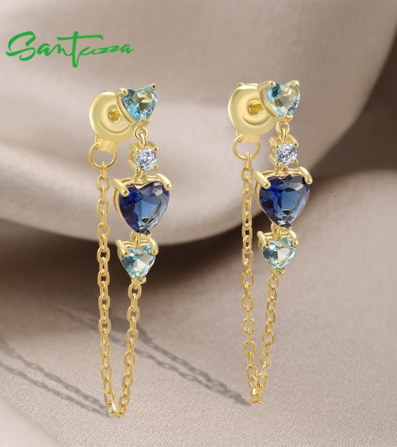 SANTUZZA 925 Sterling Silver Earrings Blue Heart Stones Long Thread Dangling Earrings Fine Jewelry